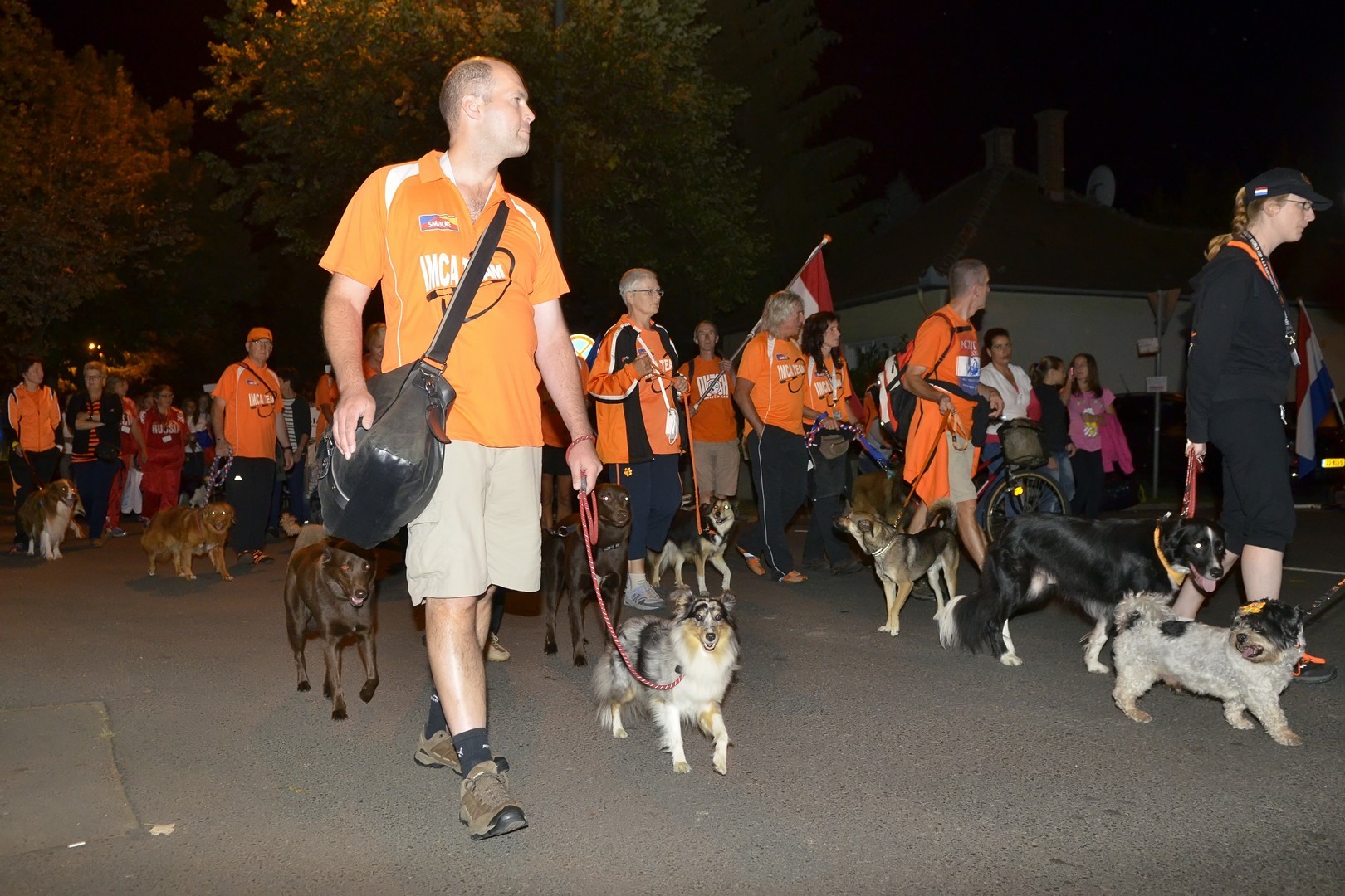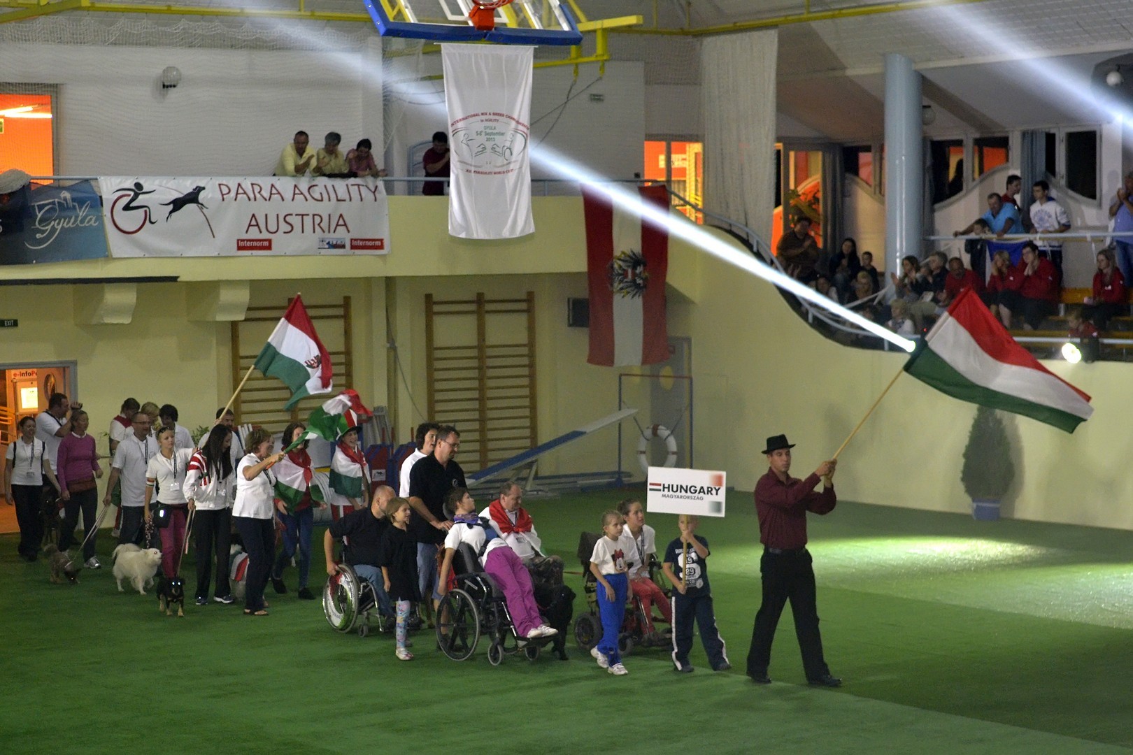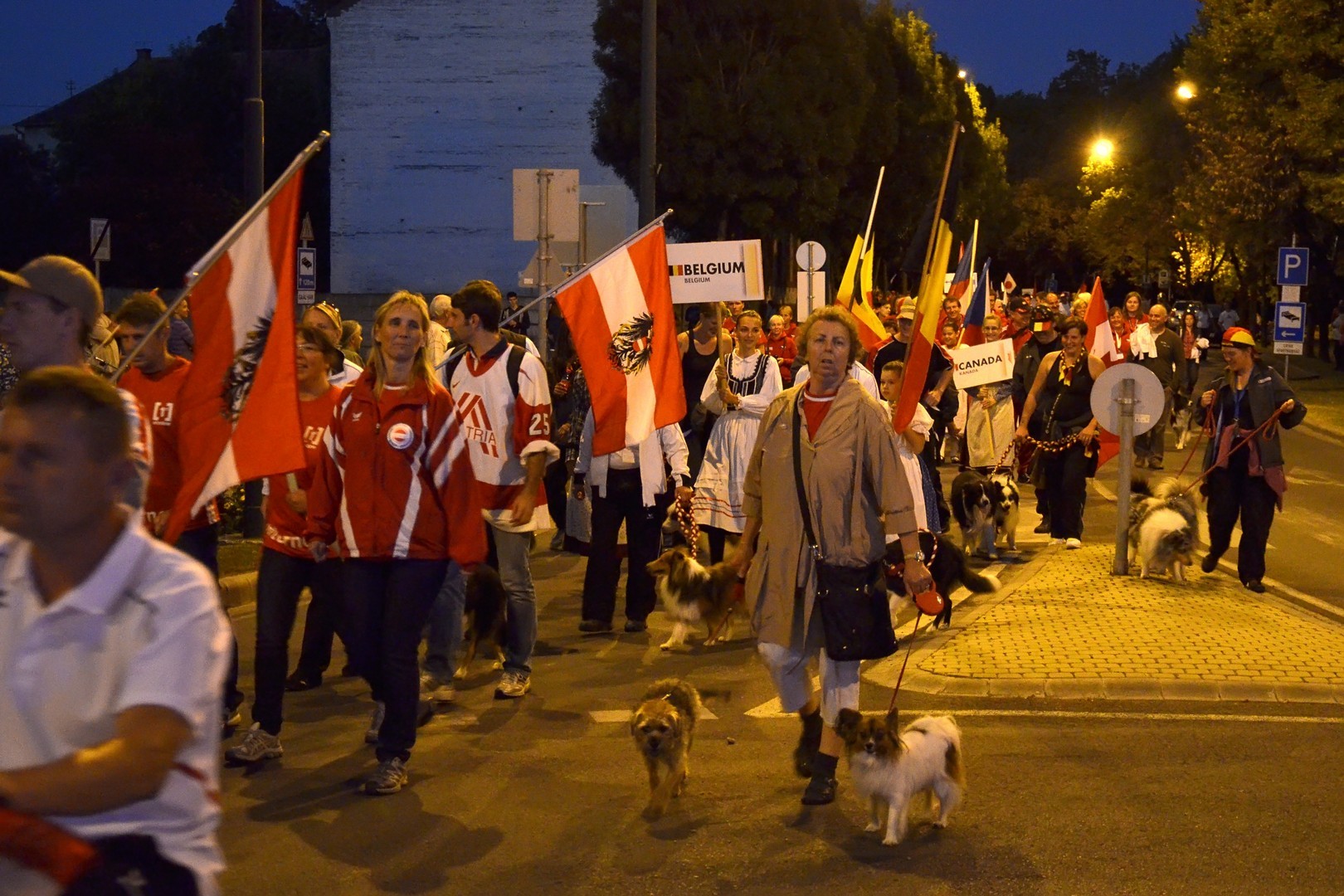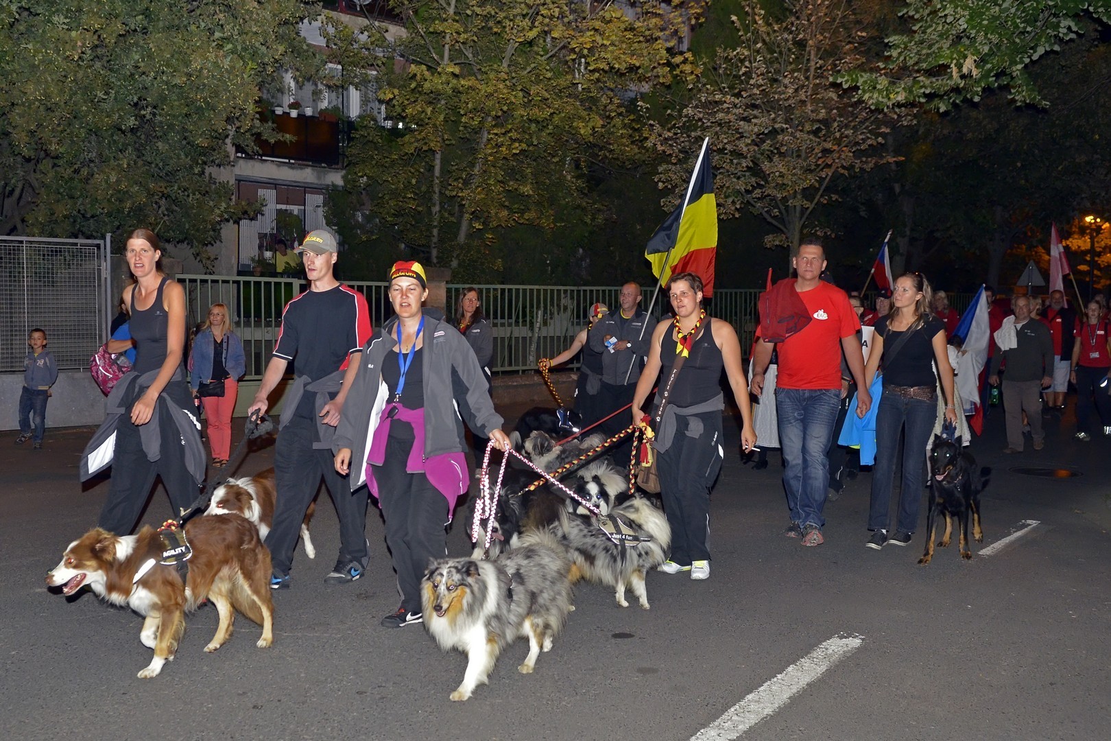 A kutyák és gazdáik az esti órákban vonultak át a vártól a négy napig tartó rendezvény helyszínére, ahol az ünnepi műsor után dr. Görgényi Ernő polgármester mondott köszöntő beszédet. A városvezető, egyben a program házigazdája kiemelte: hatalmas megtiszteltetés, hogy a versenyen személyesen is tiszteletét tette az agility atyjaként számon tartott John Gilbert, aki továbbfolytatva az első kutyás bemutatót megálmodó Peter Meanwell munkáját, Peter Lewisszal karöltve sporttá fejlesztette az agilityt.