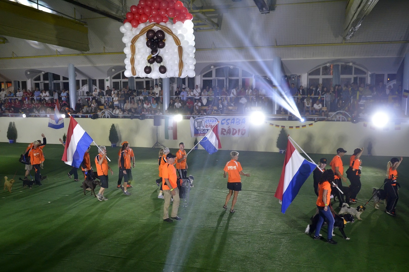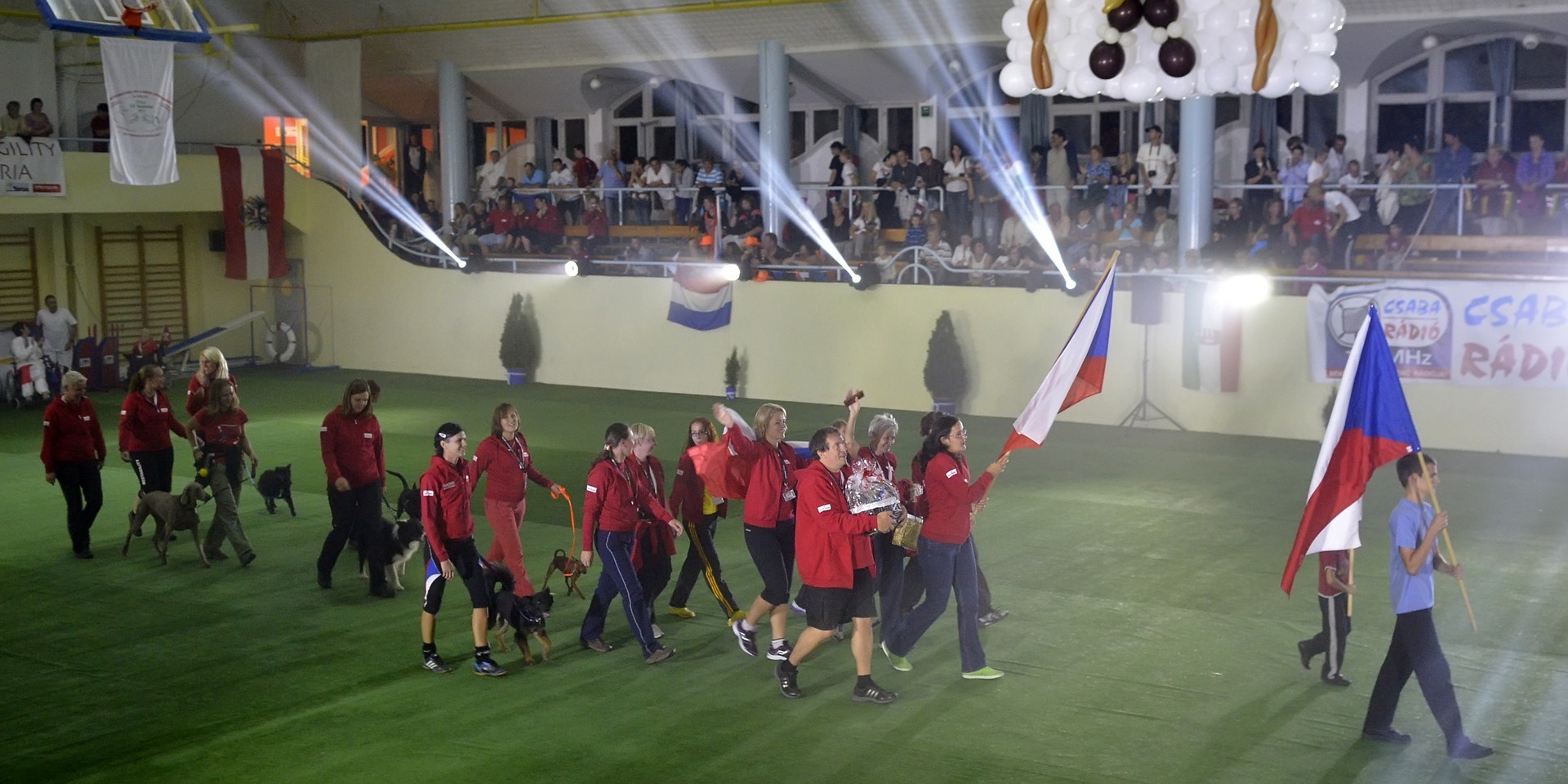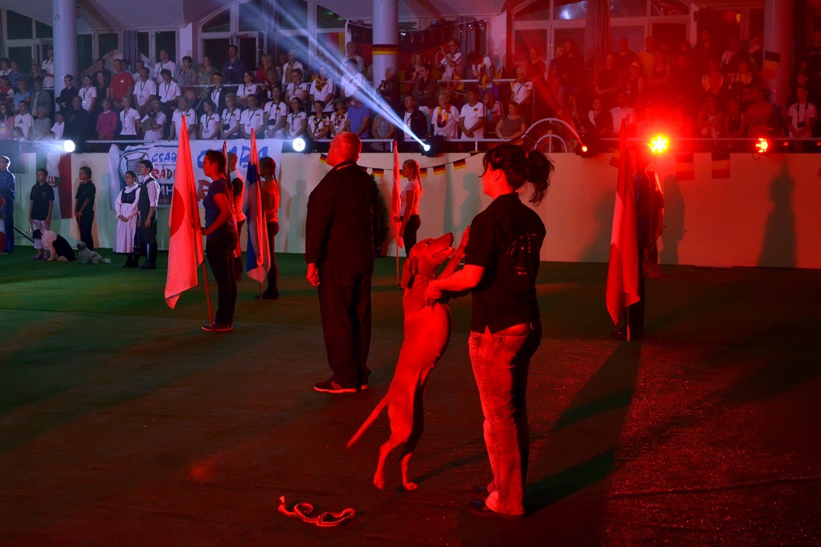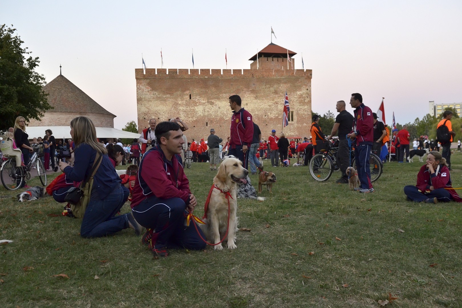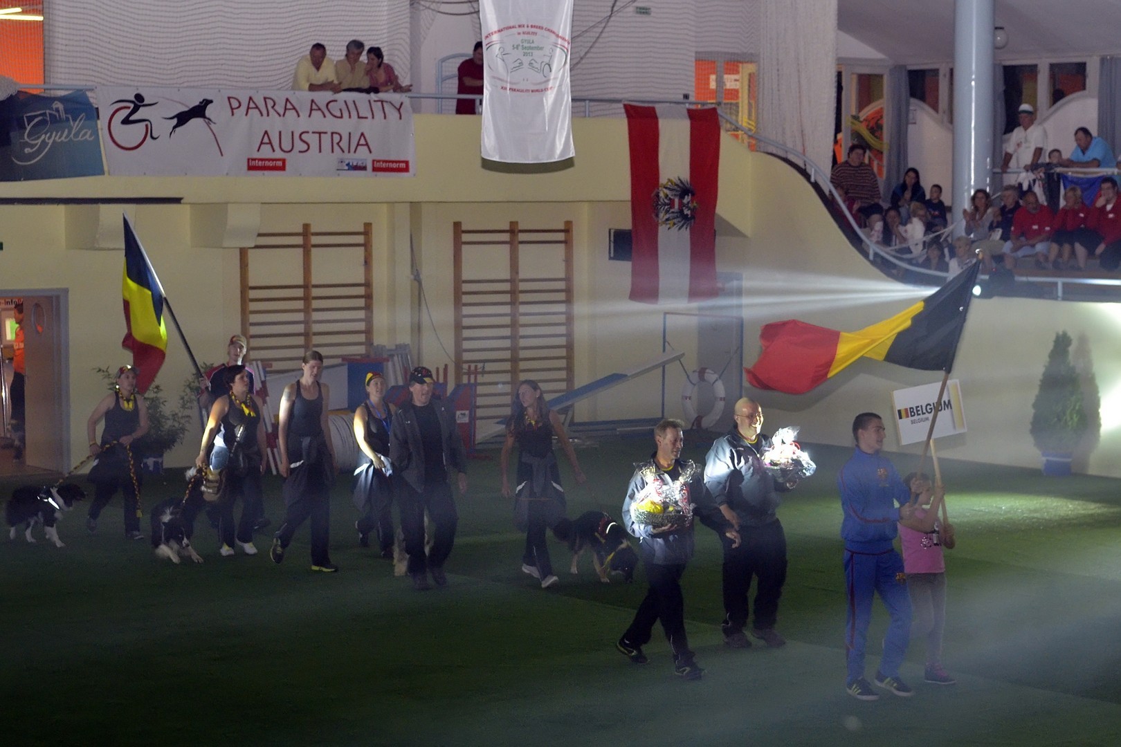 A kutyák és gazdáik az esti órákban vonultak át a vártól a négy napig tartó rendezvény helyszínére, ahol az ünnepi műsor után dr. Görgényi Ernő polgármester mondott köszöntő beszédet. A városvezető, egyben a program házigazdája kiemelte: hatalmas megtiszteltetés, hogy a versenyen személyesen is tiszteletét tette az agility atyjaként számon tartott John Gilbert, aki továbbfolytatva az első kutyás bemutatót megálmodó Peter Meanwell munkáját, Peter Lewisszal karöltve sporttá fejlesztette az agilityt.