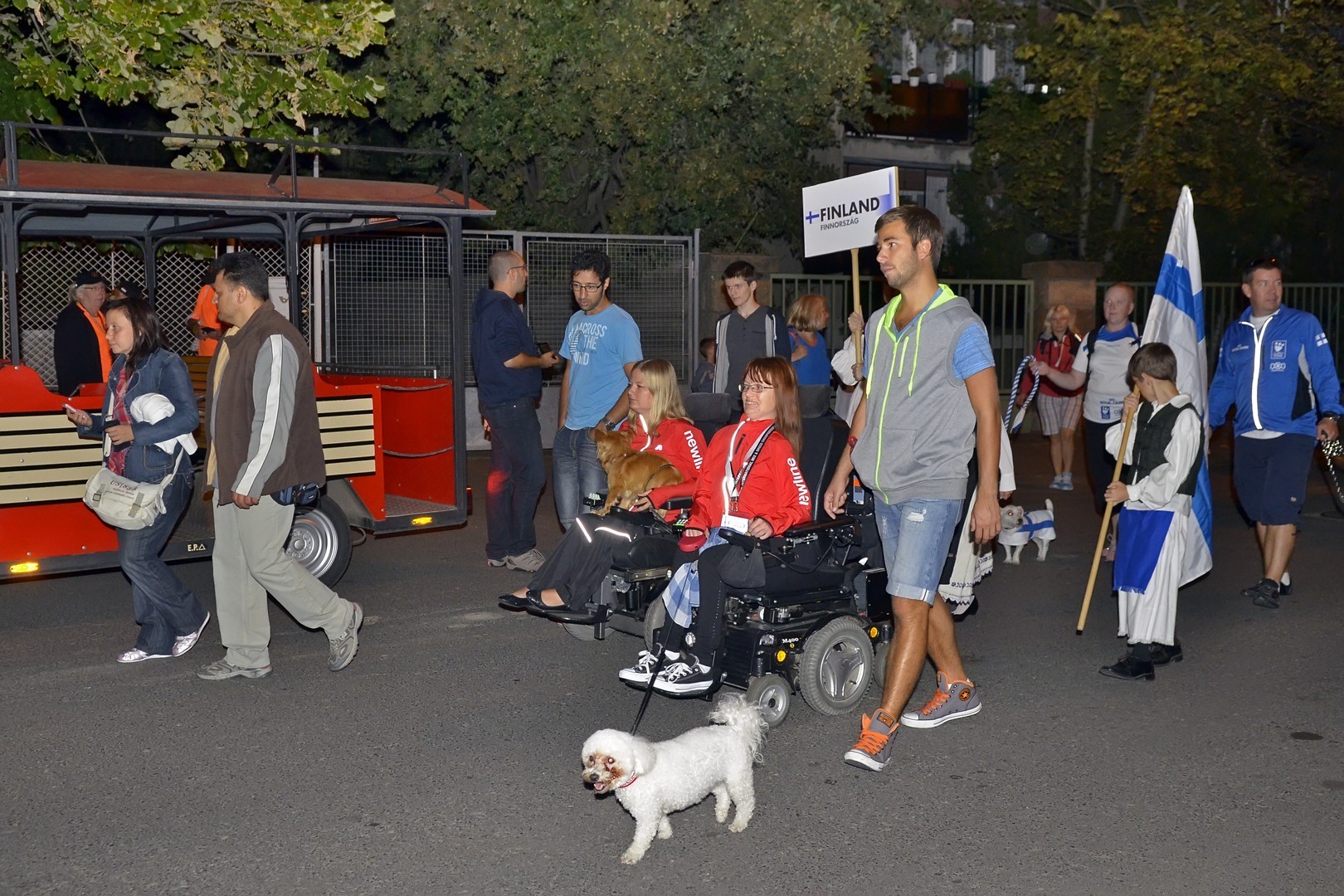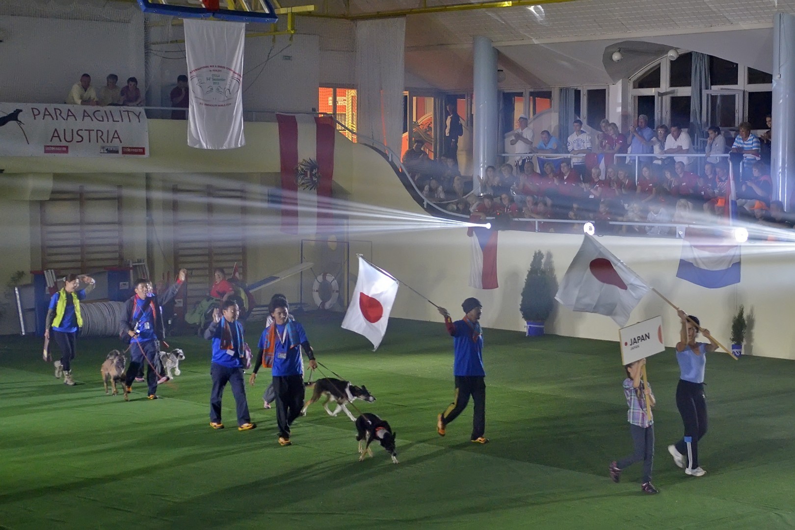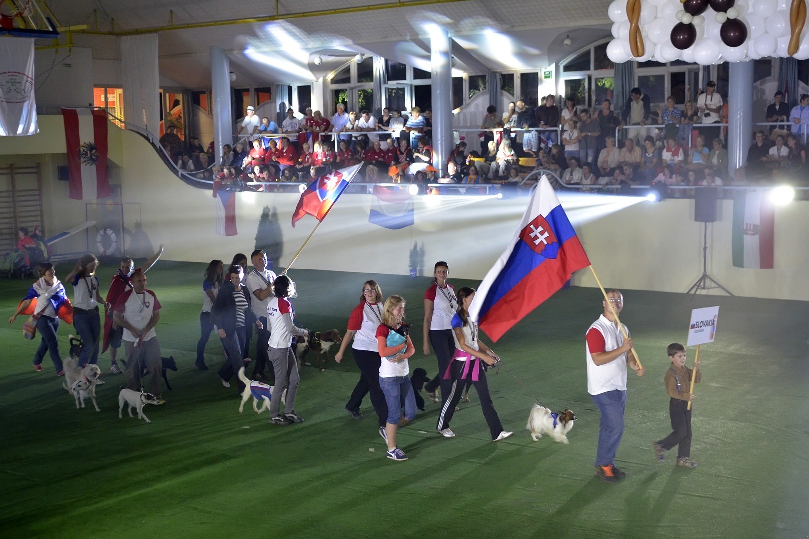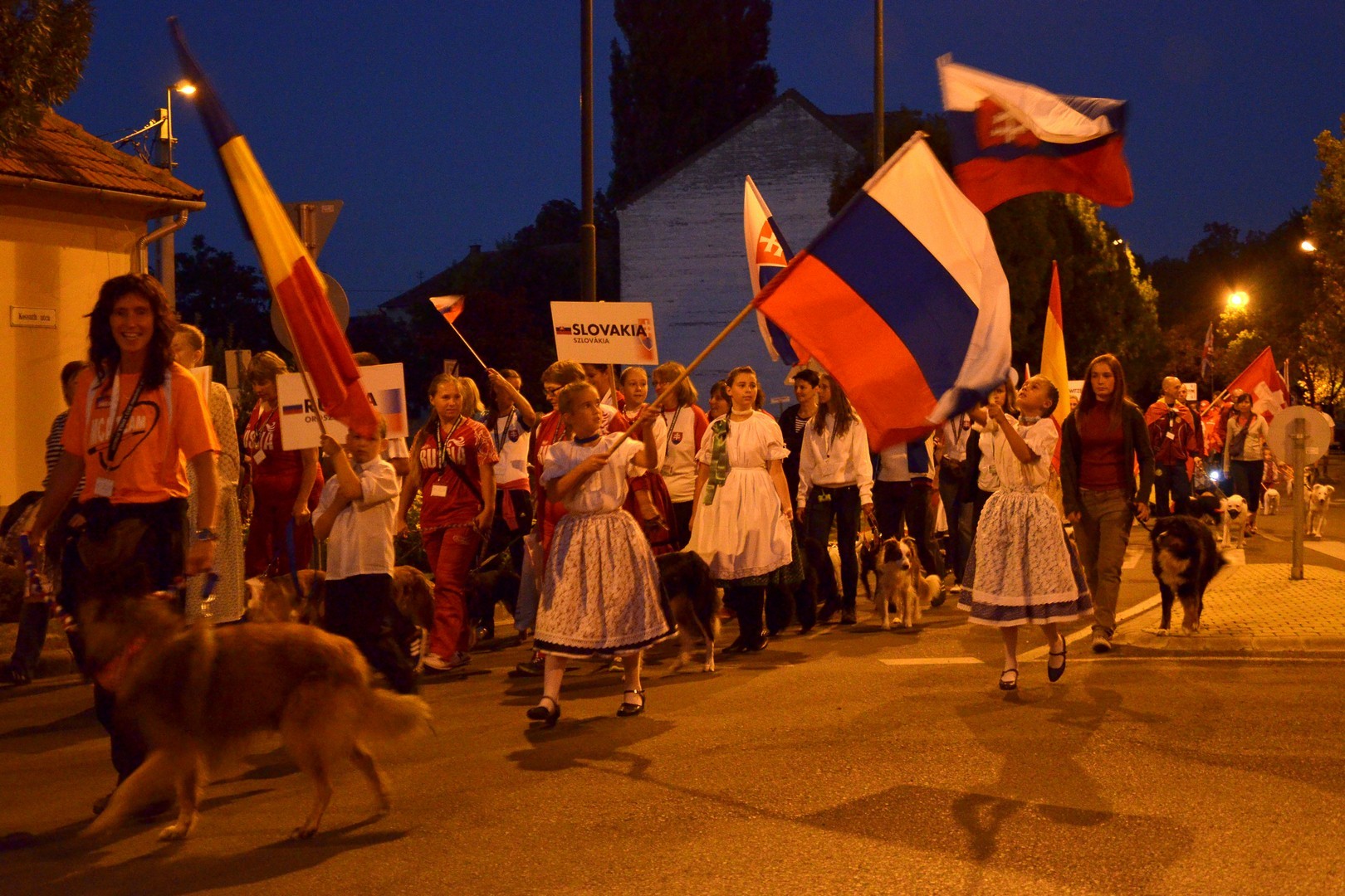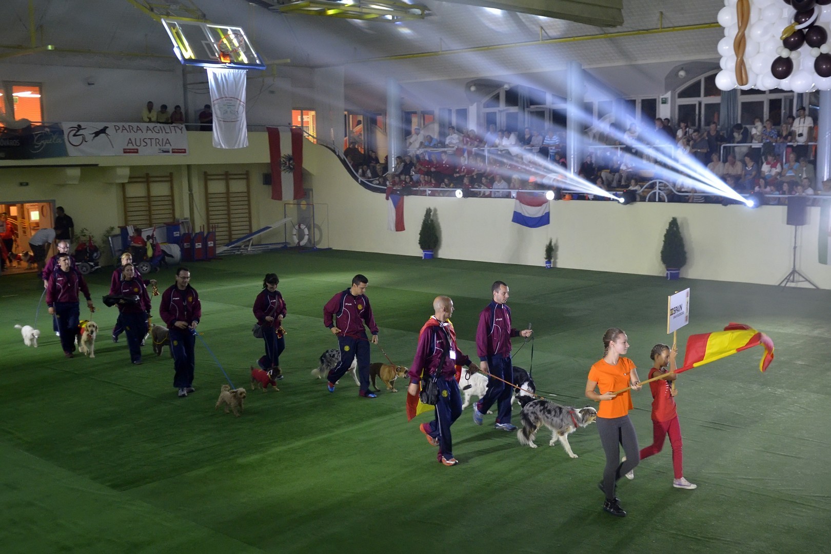 A kutyák és gazdáik az esti órákban vonultak át a vártól a négy napig tartó rendezvény helyszínére, ahol az ünnepi műsor után dr. Görgényi Ernő polgármester mondott köszöntő beszédet. A városvezető, egyben a program házigazdája kiemelte: hatalmas megtiszteltetés, hogy a versenyen személyesen is tiszteletét tette az agility atyjaként számon tartott John Gilbert, aki továbbfolytatva az első kutyás bemutatót megálmodó Peter Meanwell munkáját, Peter Lewisszal karöltve sporttá fejlesztette az agilityt.