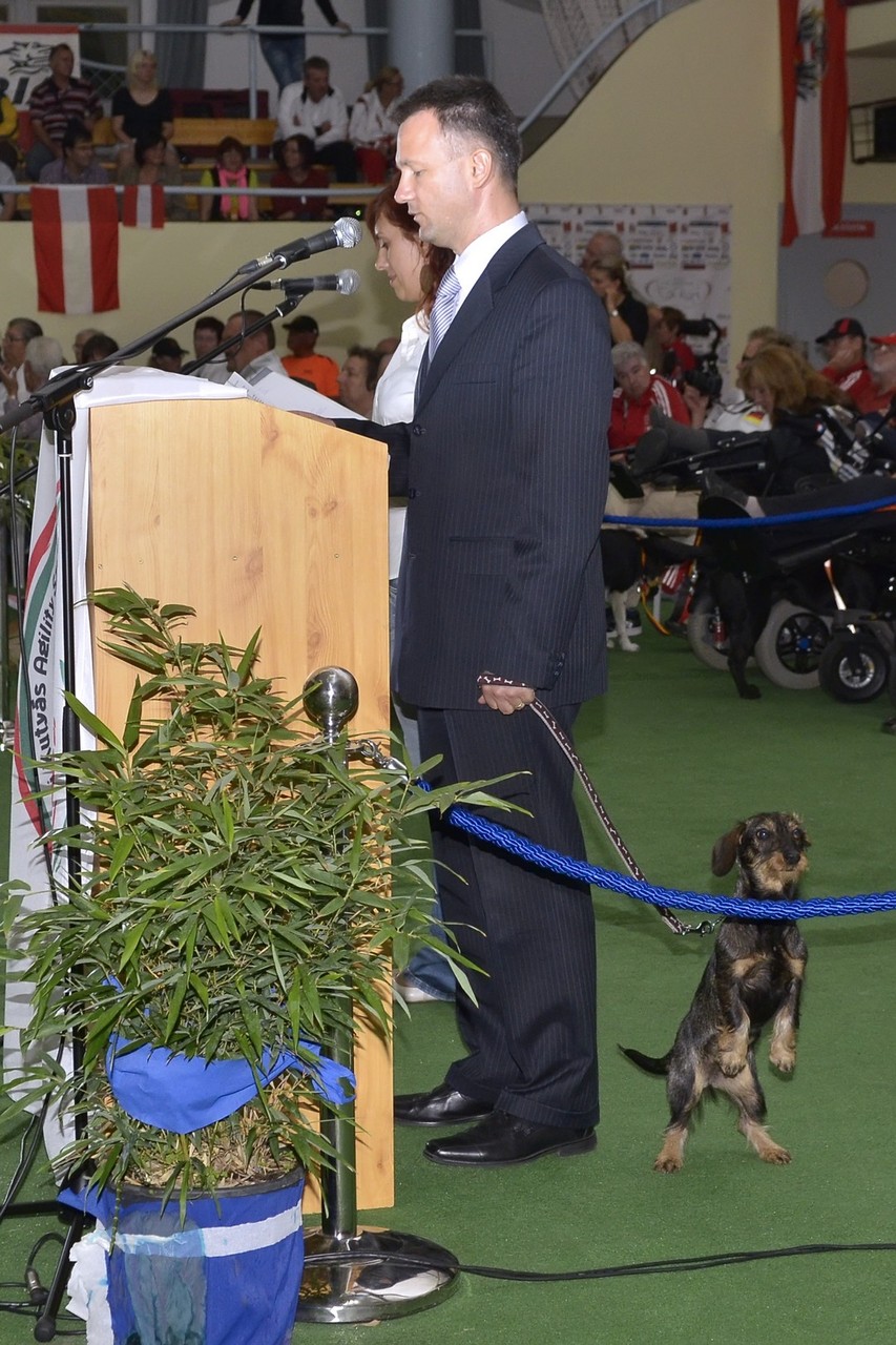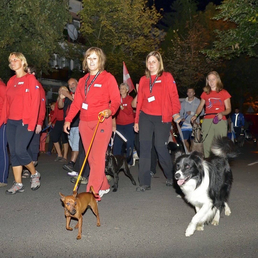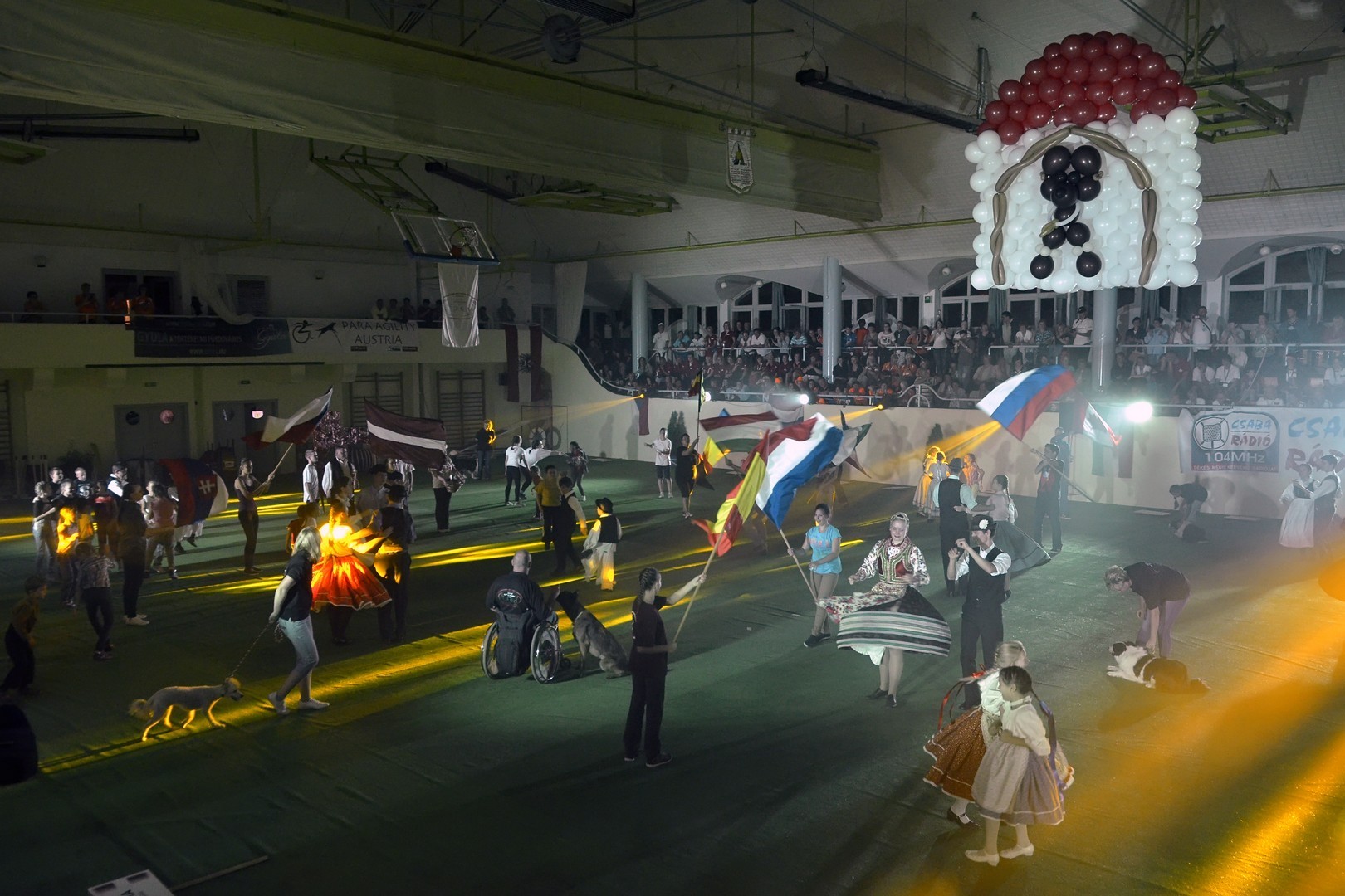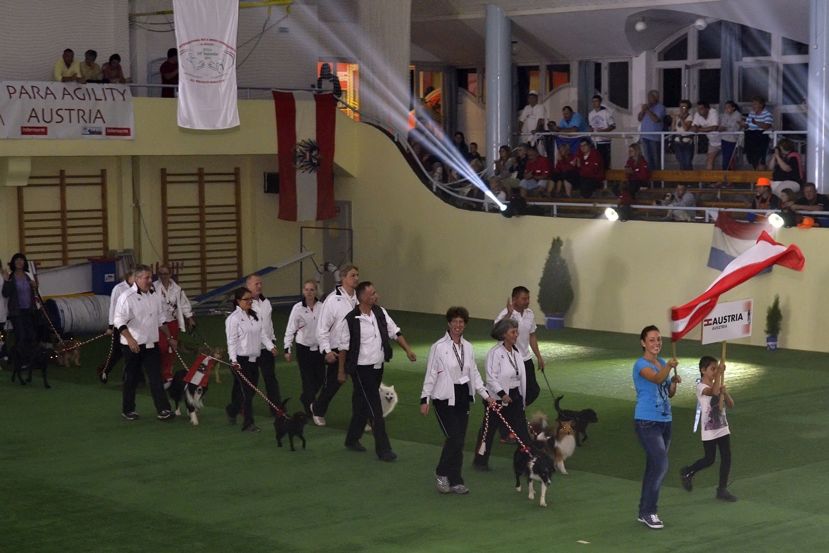 A kutyák és gazdáik az esti órákban vonultak át a vártól a négy napig tartó rendezvény helyszínére, ahol az ünnepi műsor után dr. Görgényi Ernő polgármester mondott köszöntő beszédet. A városvezető, egyben a program házigazdája kiemelte: hatalmas megtiszteltetés, hogy a versenyen személyesen is tiszteletét tette az agility atyjaként számon tartott John Gilbert, aki továbbfolytatva az első kutyás bemutatót megálmodó Peter Meanwell munkáját, Peter Lewisszal karöltve sporttá fejlesztette az agilityt.