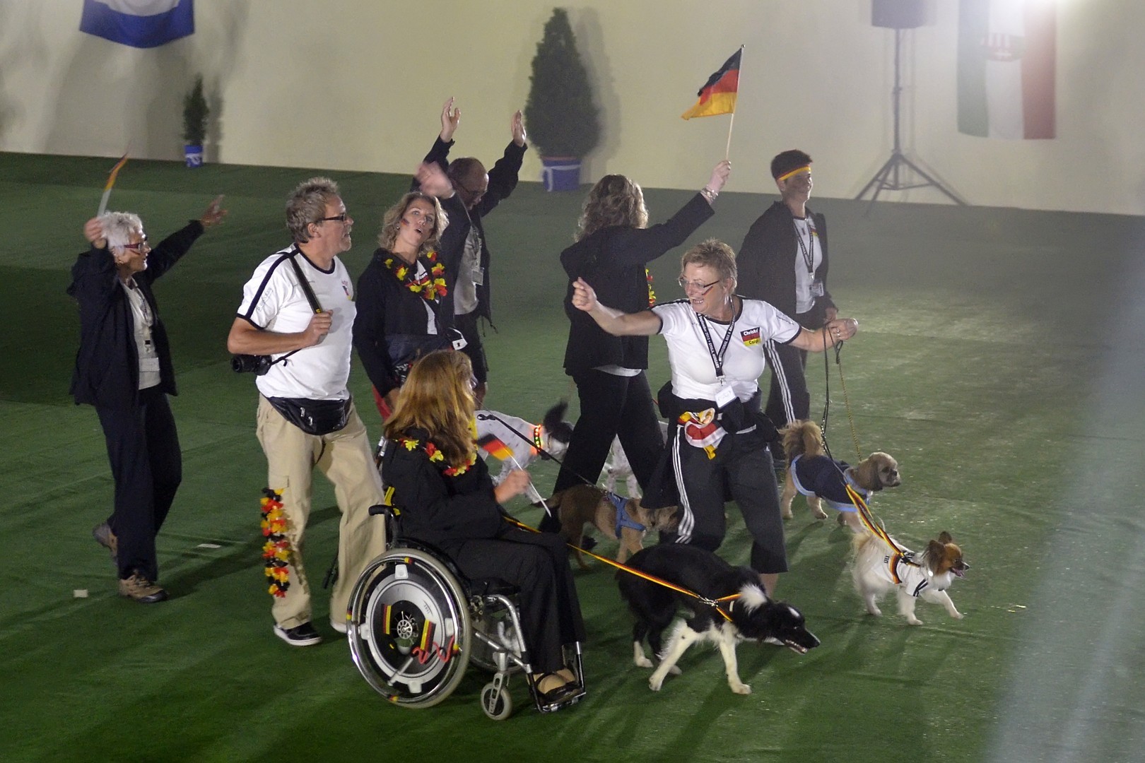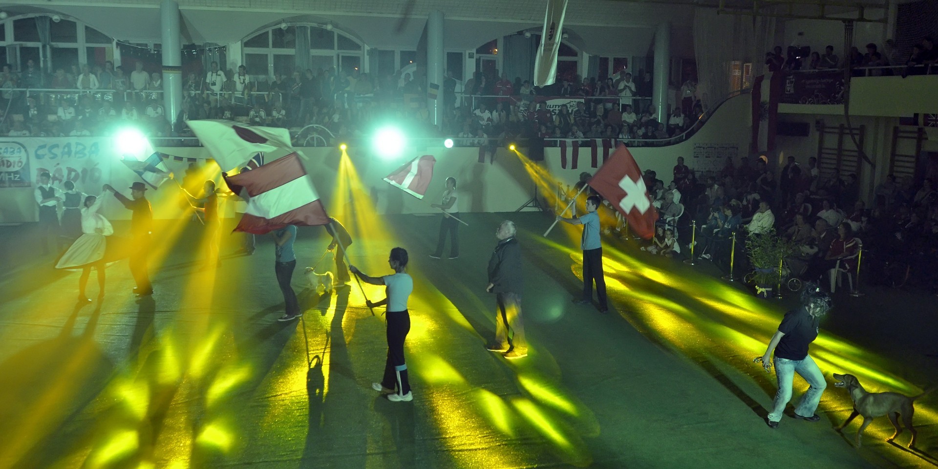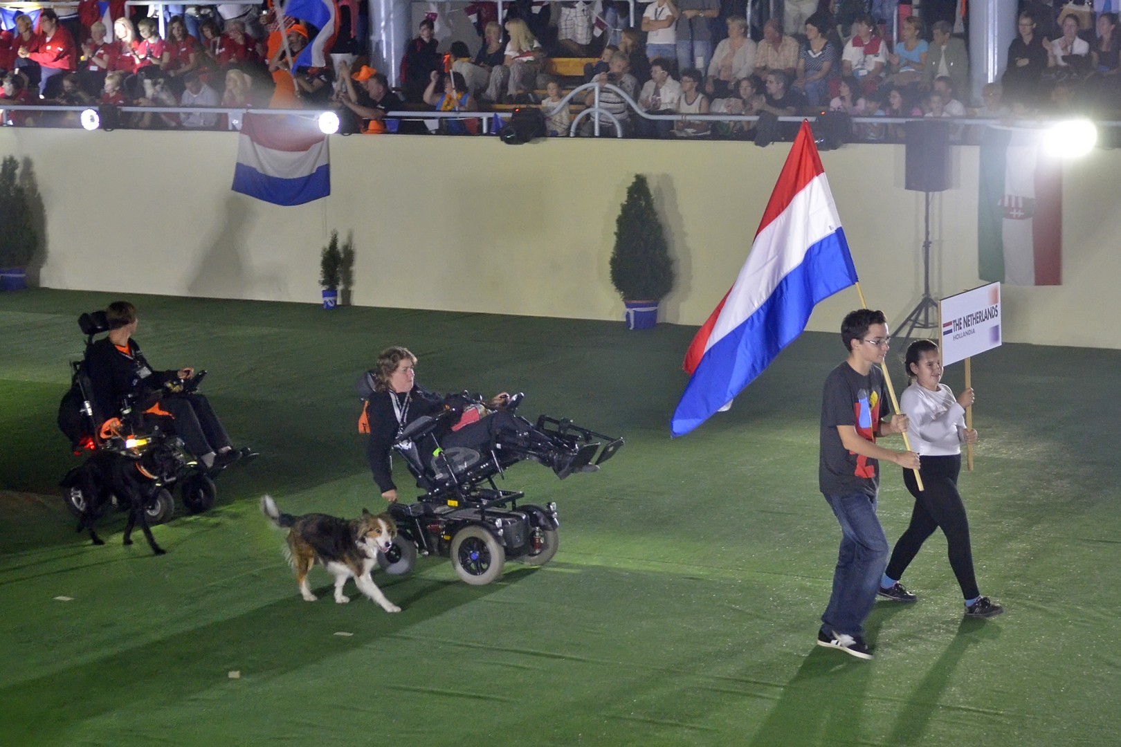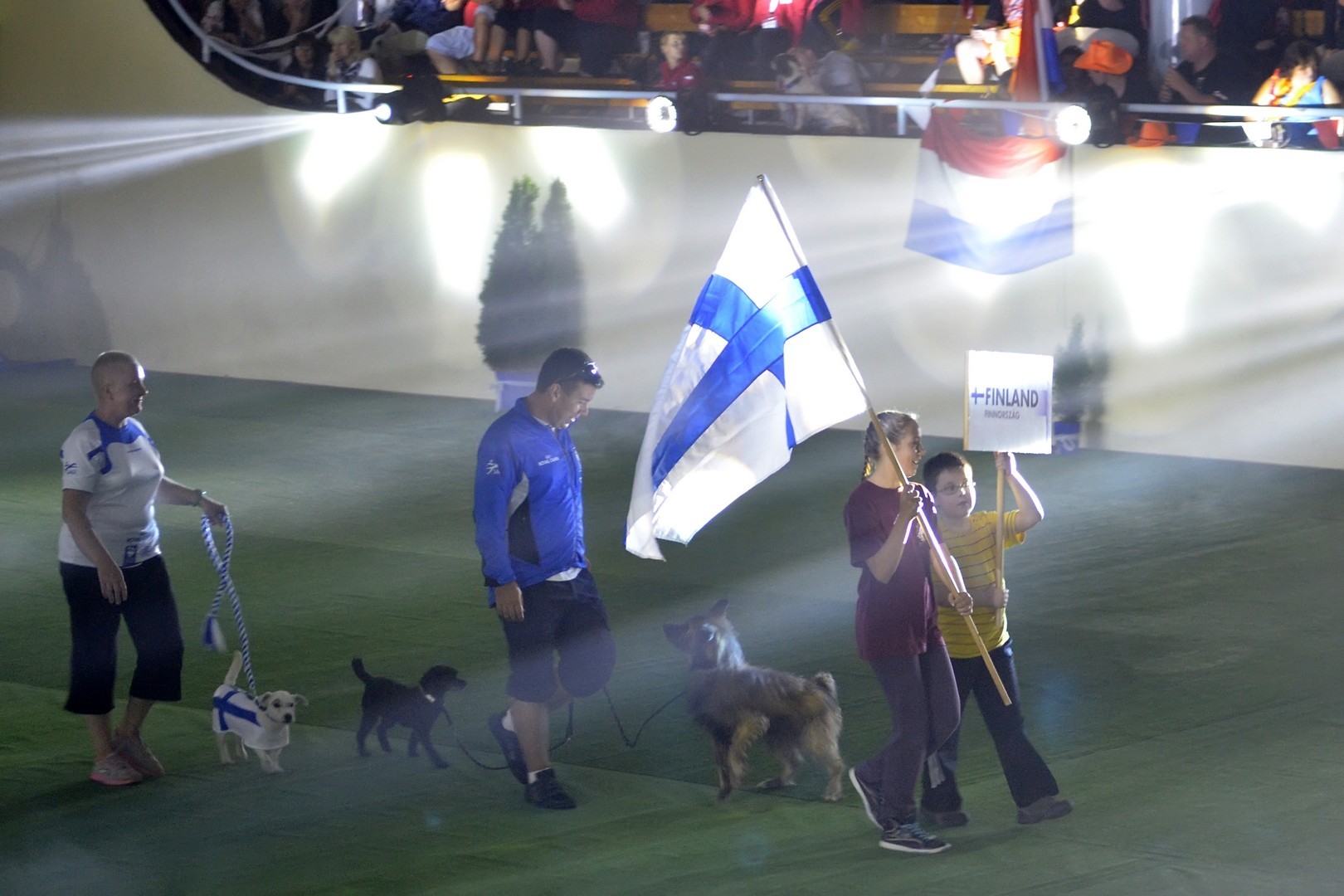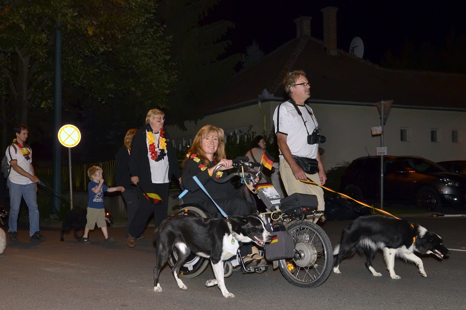 A kutyák és gazdáik az esti órákban vonultak át a vártól a négy napig tartó rendezvény helyszínére, ahol az ünnepi műsor után dr. Görgényi Ernő polgármester mondott köszöntő beszédet. A városvezető, egyben a program házigazdája kiemelte: hatalmas megtiszteltetés, hogy a versenyen személyesen is tiszteletét tette az agility atyjaként számon tartott John Gilbert, aki továbbfolytatva az első kutyás bemutatót megálmodó Peter Meanwell munkáját, Peter Lewisszal karöltve sporttá fejlesztette az agilityt.