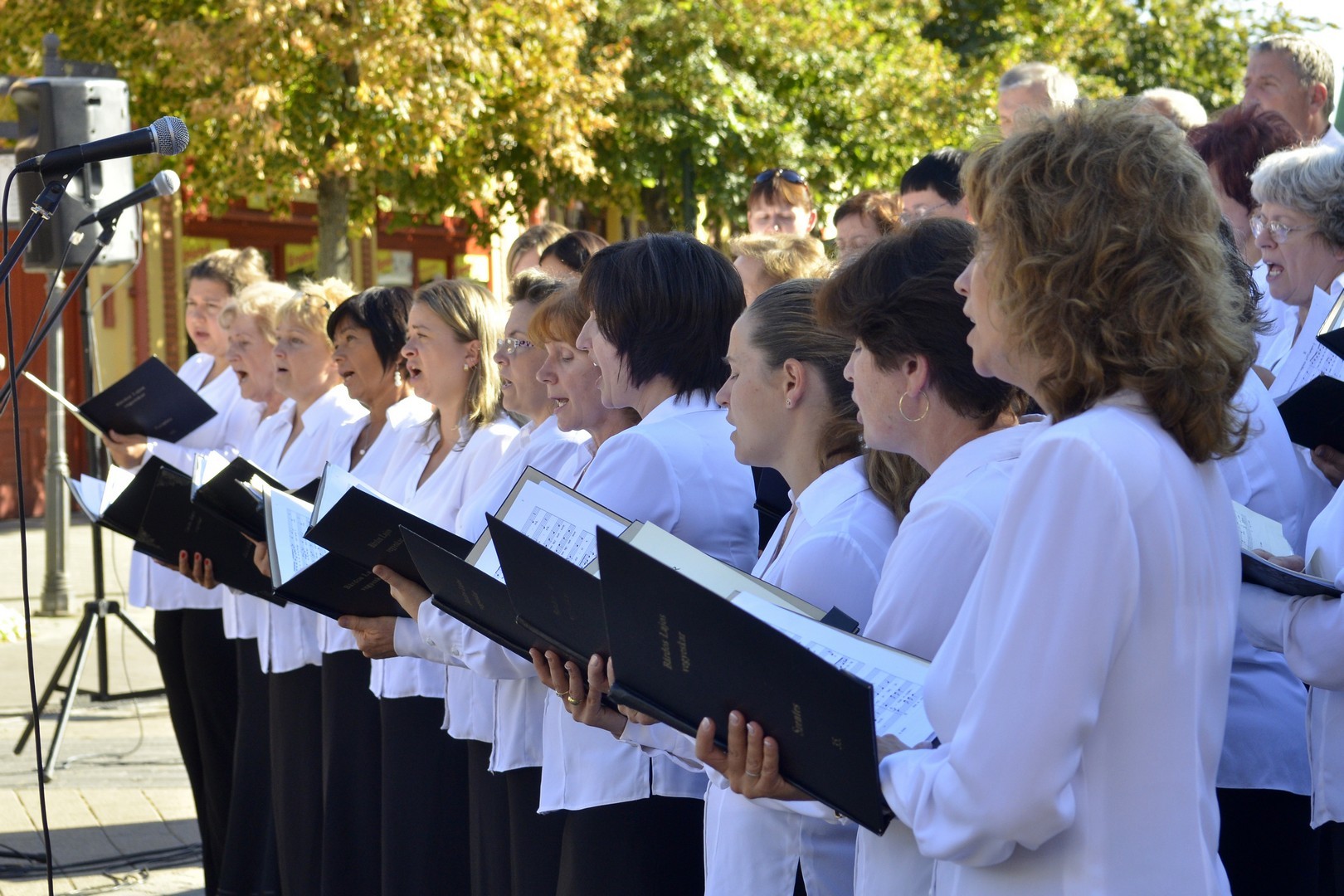 Perlaki Attilától, az Erkel Ferenc Vegyes Kar karnagyától megtudtuk: a magyar vokális zene ünnepére főként vidám énekekkel készültek. A kisvonaton ismert népdalokkal, a Világóránál népdalfeldolgozásokkal és spirituálékkal, a templomban pedig komolyabb hangvételű zeneművekkel, egyebek mellett Verdi és Kodály kompozícióival szórakoztatták a nagyérdeműt.
