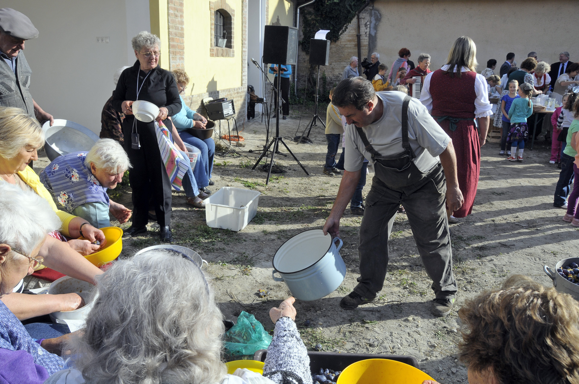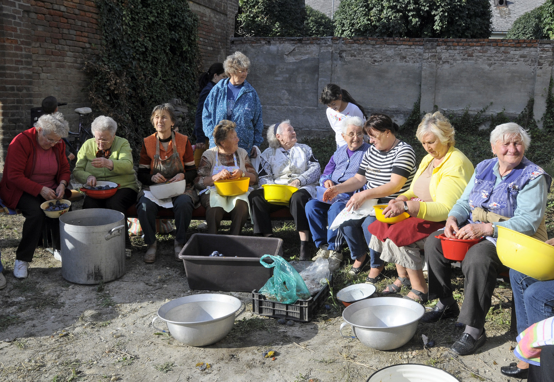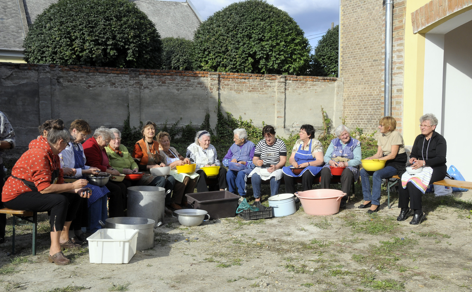 Ma délután összegyűltek a németvárosi asszonyok a megújult „Máriás” ház udvarán, hogy előkészítsék a gyümölcsöt a holnapi szilvalekvárfőzéshez. A gyönyörű szeptemberi napsütésben nem lehetett panasz az időjárásra. Az érkező népeket harmonikamuzsika fogadta, és paprikás zsíroskenyér, valamint fröccs marasztalta. A hölgyek keze járt mint a motolla, úgyhogy a férfiak nem győzték egybegyűjteni a kimagvalt gyümölcsöt. Egy-kettőre el is készült a három mázsa szilva, így holnap időben alágyújthatnak a rézüstöknek. A szilvalekvár sokáig fő, úgyhogy nem csoda, hogy elődeink évről évre közösségi eseményként élték meg az őszi munkát.