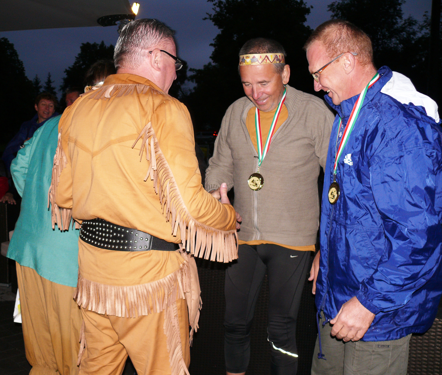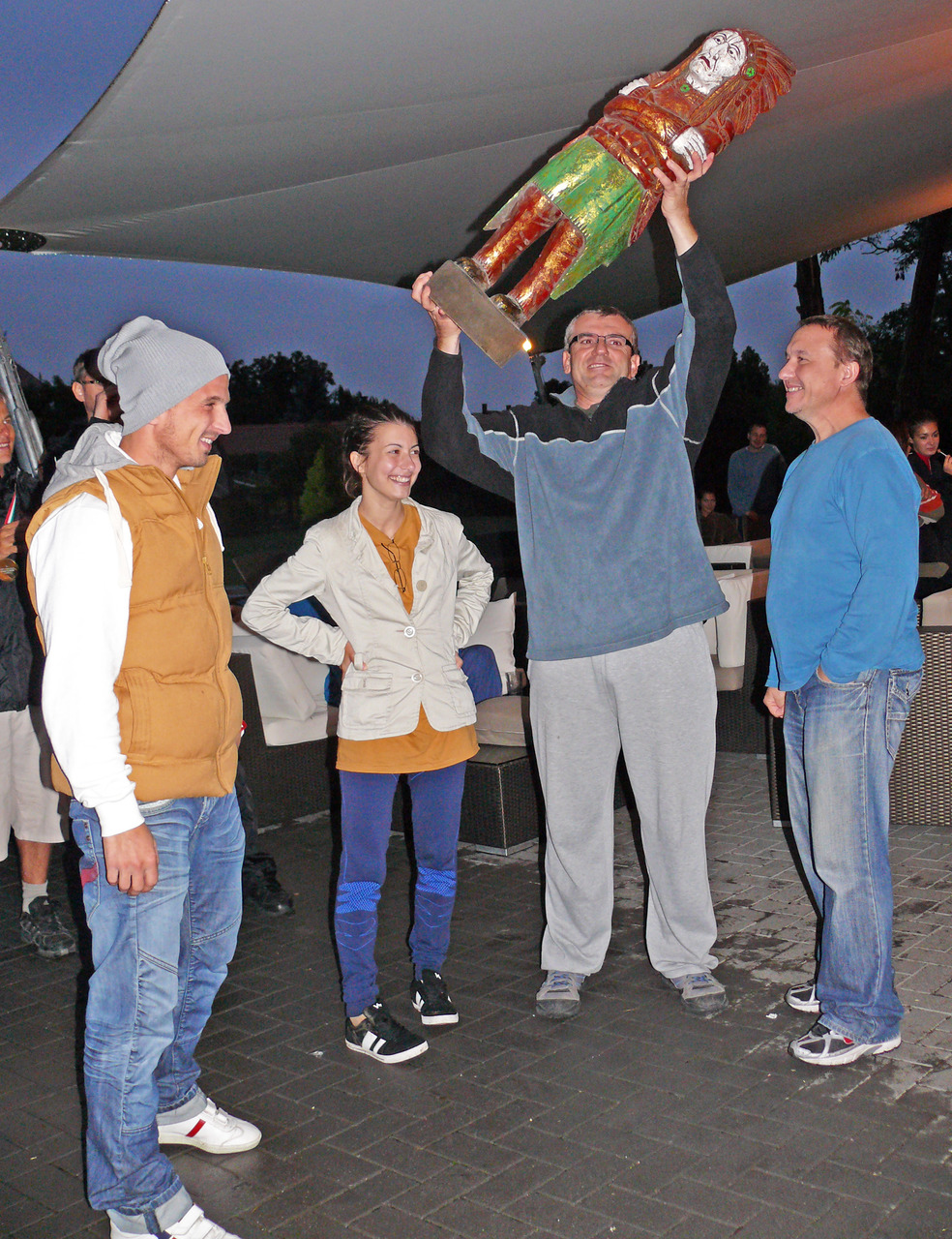 A kenuverseny első helyezettjei: Pataki András (Kockás pocak), Polgár Ferenc (Karikás szem), Koppányi László (Sebesen suhanó nyílvessző) és Juhász Andrea (Fonott haj).