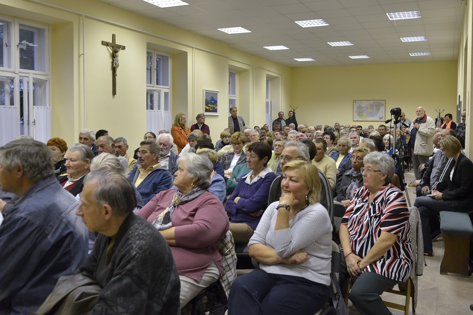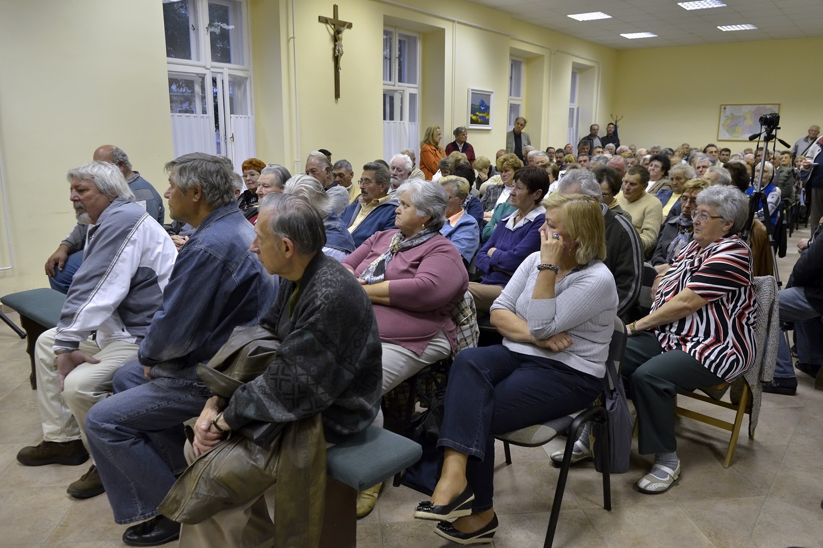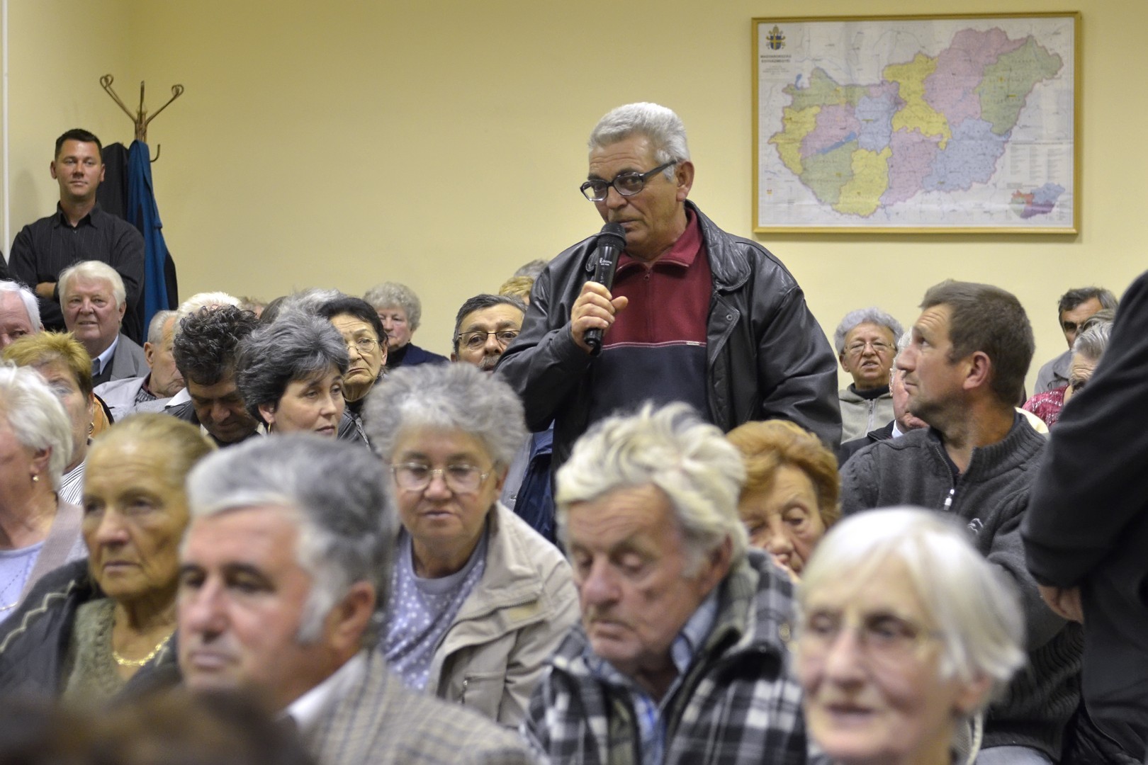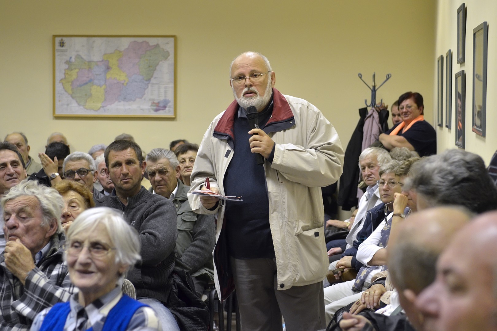 Dr. Völner Pál, a Nemzeti Fejlesztési Minisztérium infrastruktúráért felelős államtitkára Védjük meg a rezsicsökkentést! címmel tartott lakossági fórumot ma este a Katolikus Közösségi Házban. A rendezvényt hat órára hirdették meg a szervezők, akik maguk is meglepődhettek, hogy idejekorán zsúfolásig megtelt - és kezdésre bizony kicsinek bizonyult - a terem.