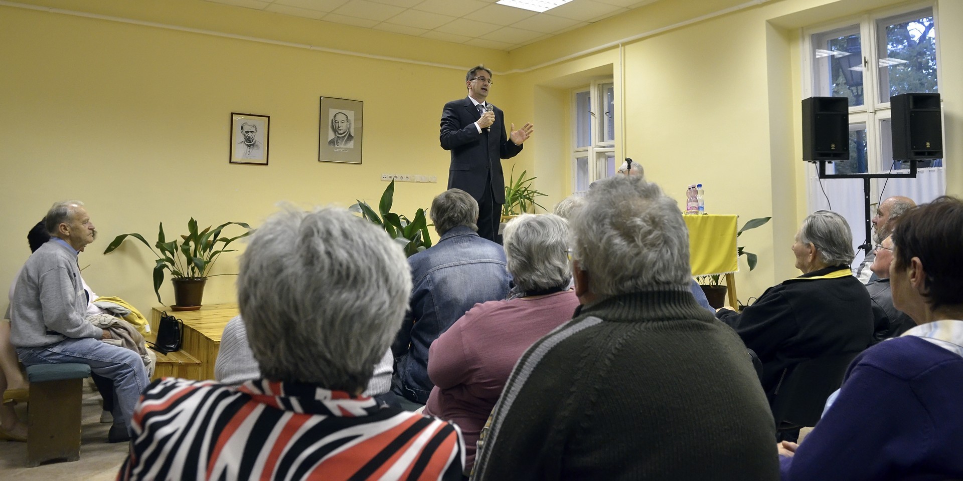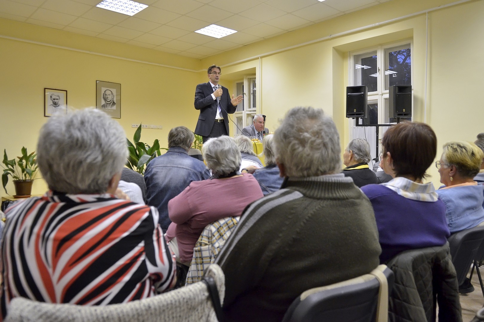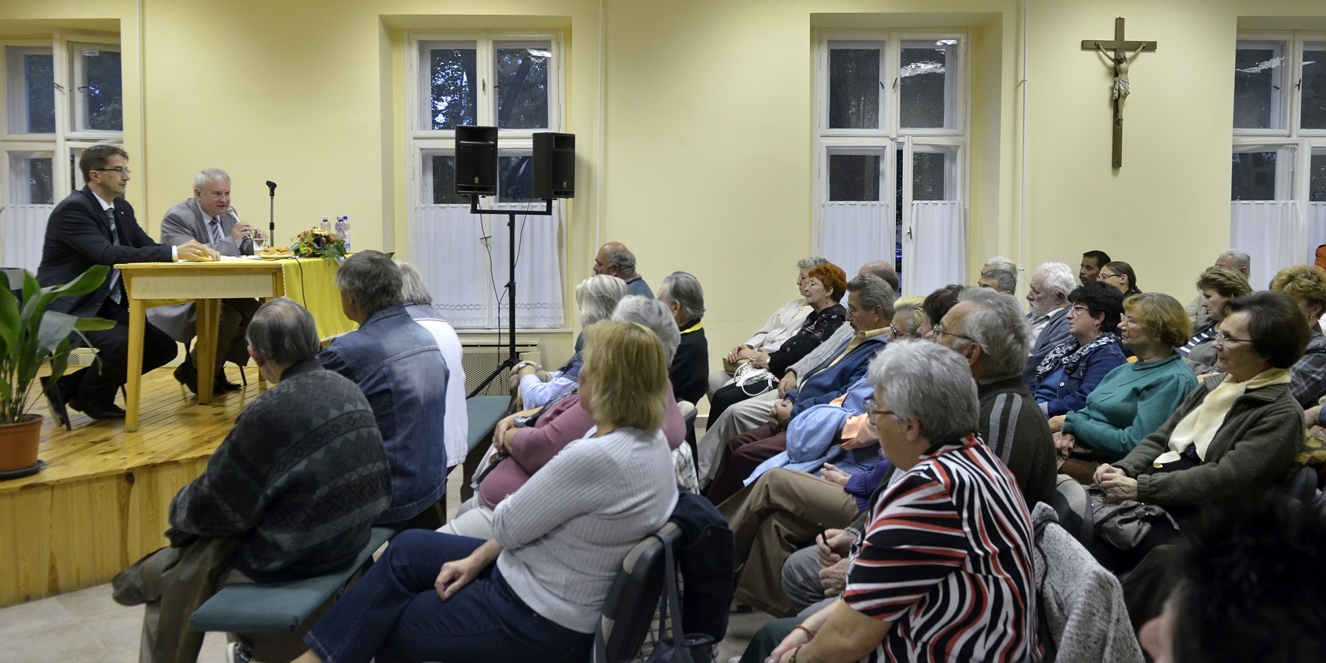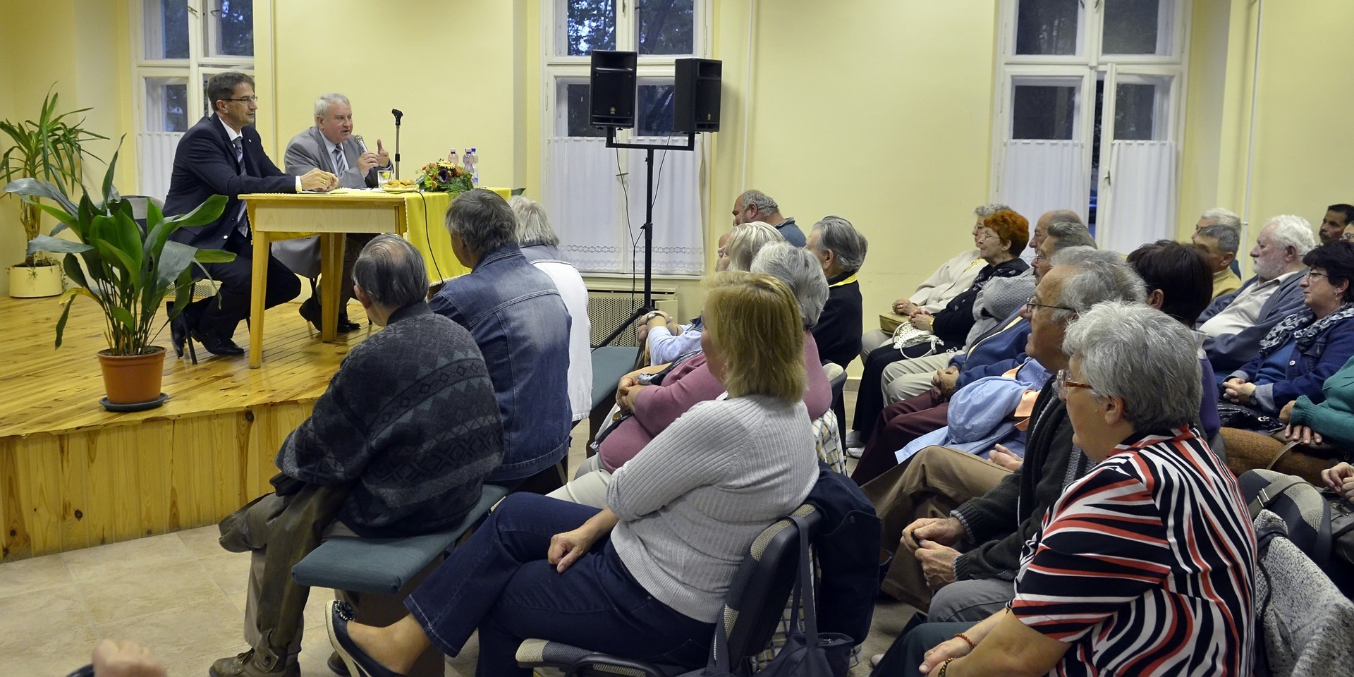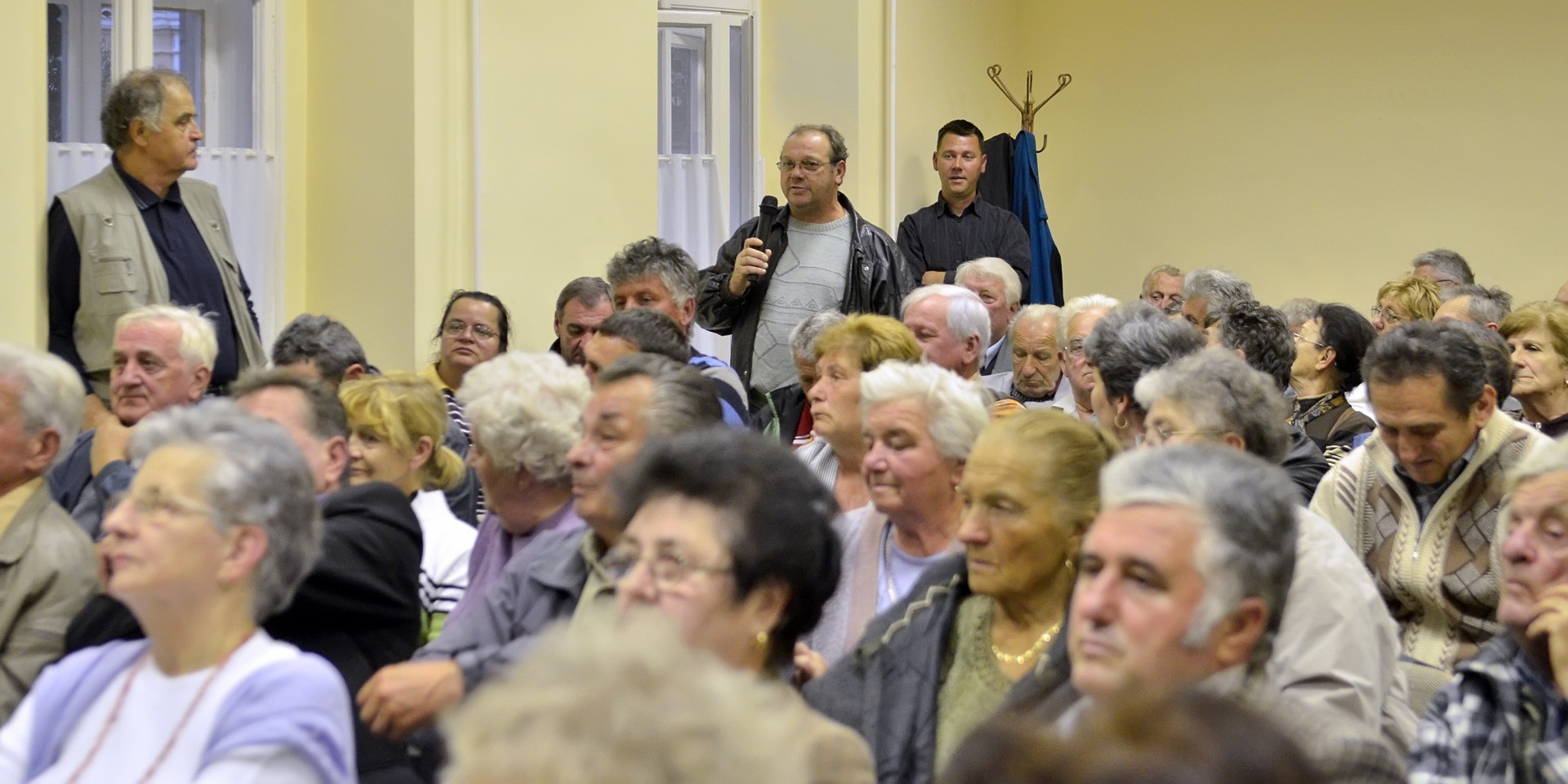 Dr. Völner Pál, a Nemzeti Fejlesztési Minisztérium infrastruktúráért felelős államtitkára Védjük meg a rezsicsökkentést! címmel tartott lakossági fórumot ma este a Katolikus Közösségi Házban. A rendezvényt hat órára hirdették meg a szervezők, akik maguk is meglepődhettek, hogy idejekorán zsúfolásig megtelt - és kezdésre bizony kicsinek bizonyult - a terem.