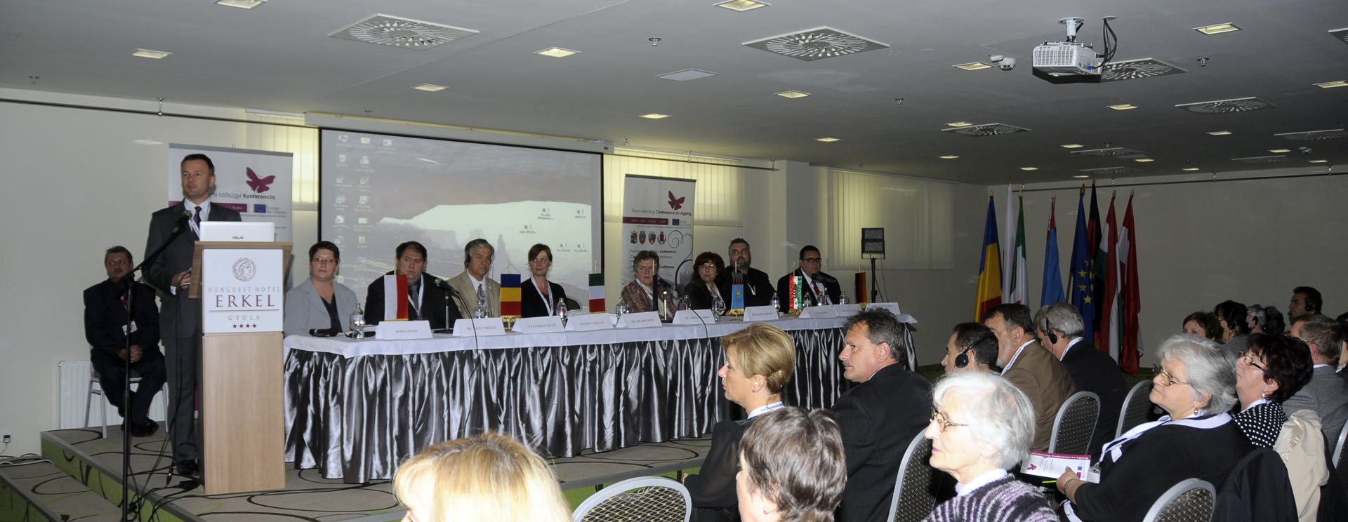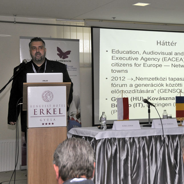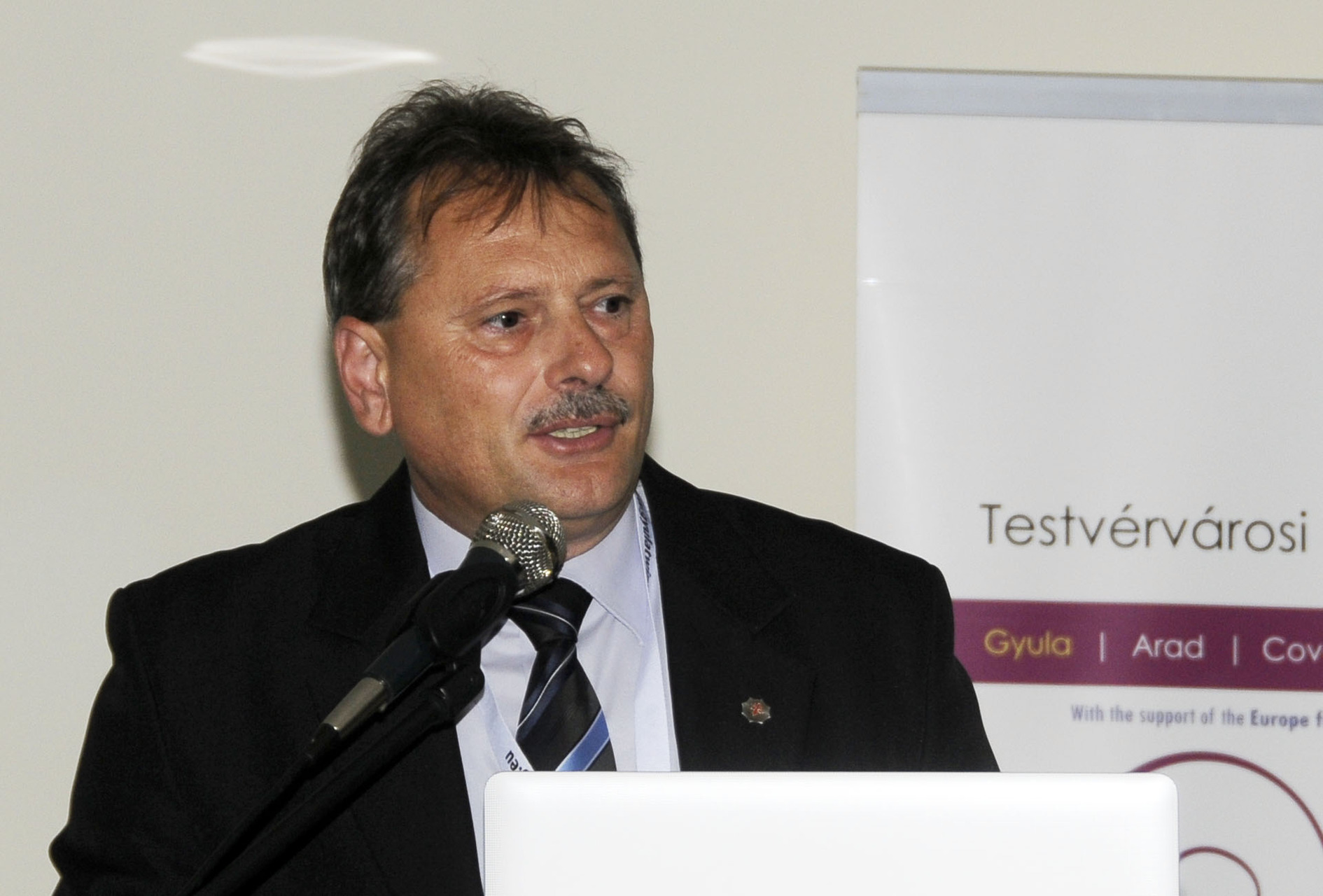 Dr. Görgényi Ernő, Gyula város polgármestere köszöntőjében elsőként a testvérvárosi delegációkat, majd az előadókat üdvözölte.