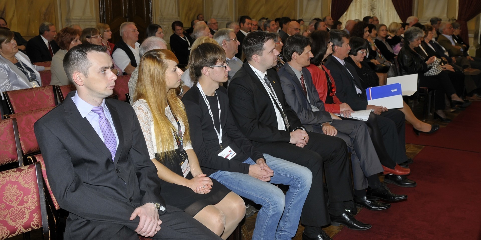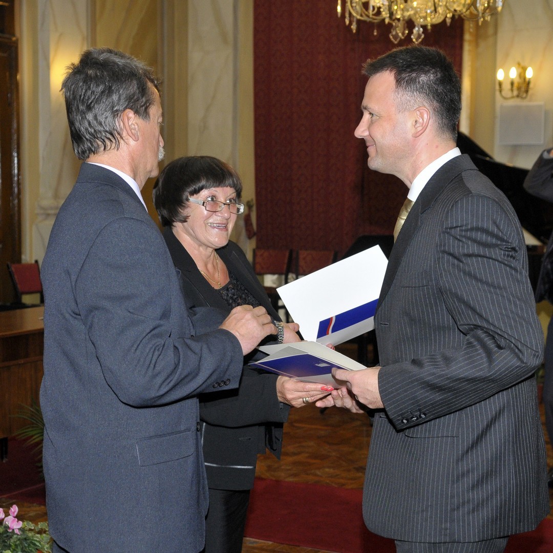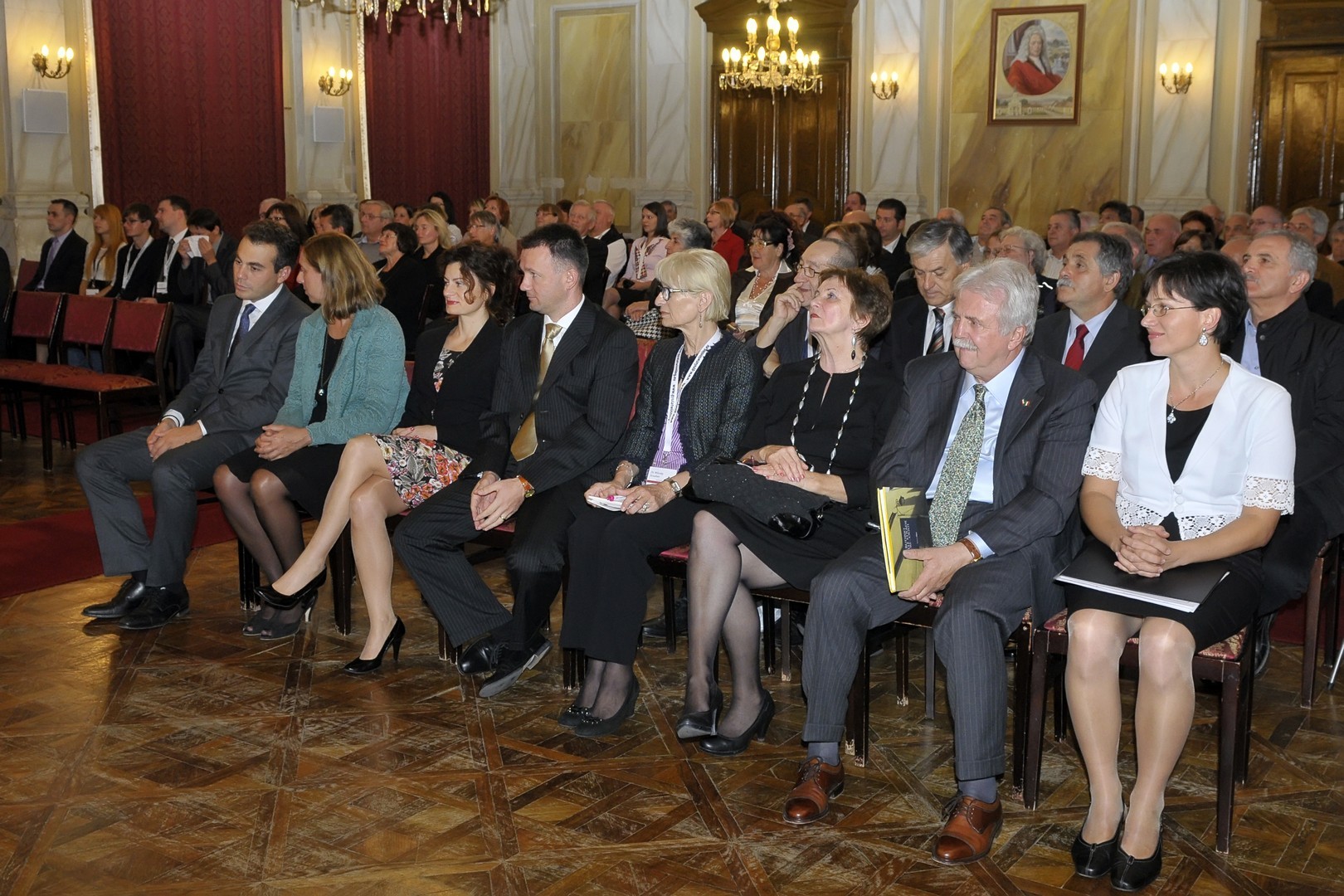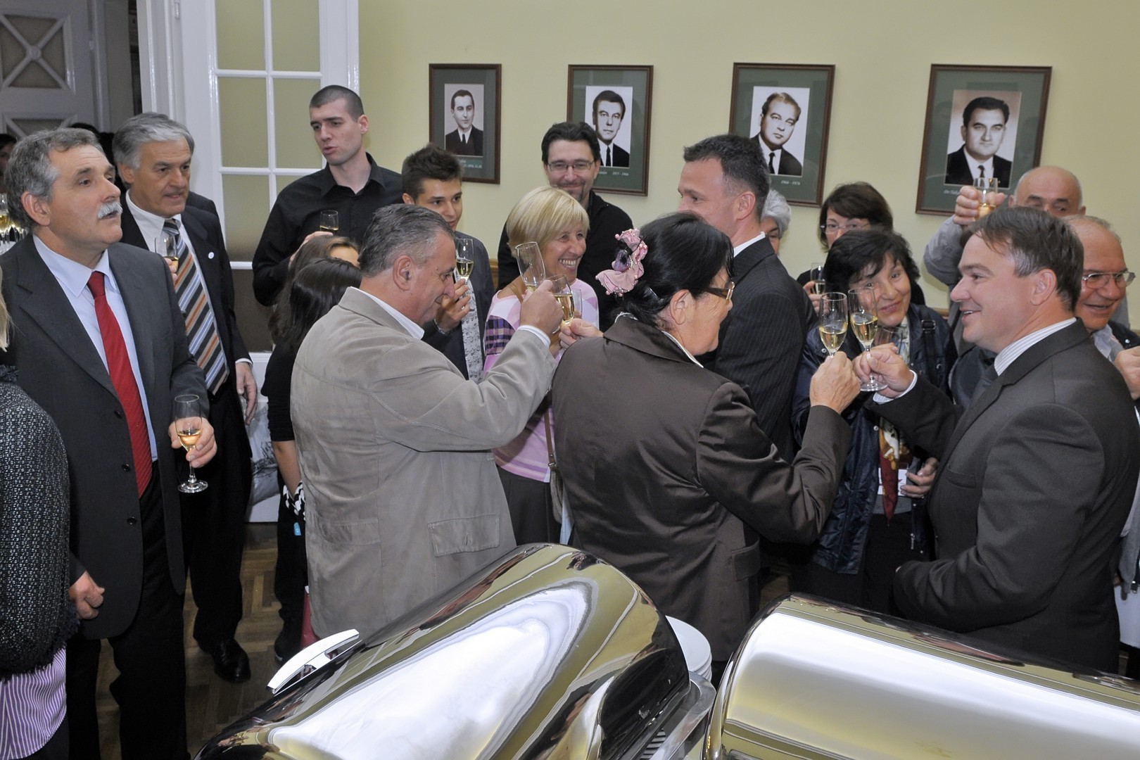 A budriói Ifjúsági Okarina Zenekar műsora után a házigazda, dr. Görgényi Ernő egy aranylakodalomról szóló székely viccel köszöntötte a díszterem közönségét, majd név szerint üdvözölte a küldöttségek vezetőit és a jelenlévő városvezetőket.