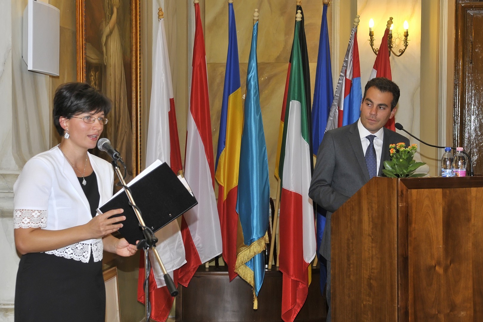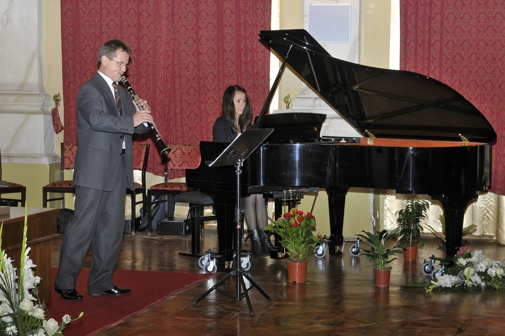 Fekete Katalin és Kepenyes Pál zongora-klarinét duettje után Becsyné dr. Szabó Márta, Gyula város címzetes főjegyzője a két város kapcsolatának történéseire emlékezett. A történeti áttekintésben szó esett a kezdetekről, amely egy vízumkérés igénylése kapcsán indult el Budrio és Gyula között, s amely szálat Enyedi G. Sándor, Gyula akkori tanácselnöke erősítette meg.