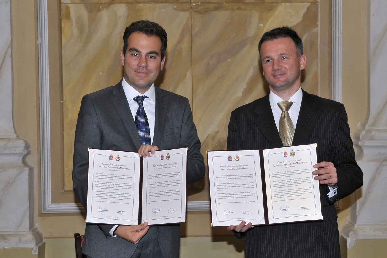 A beszédek után a két város képviselői aláírásukkal erősítették meg az immáron fél évszázados múltra visszatekintő partnerségi megállapodást, majd a polgármesterek ajándékokkal tisztelték meg egymást. Dr. Görgényi Ernő elsőként Kukár István, helyi festőművész olajképét adta át a budriói városvezetőnek.
