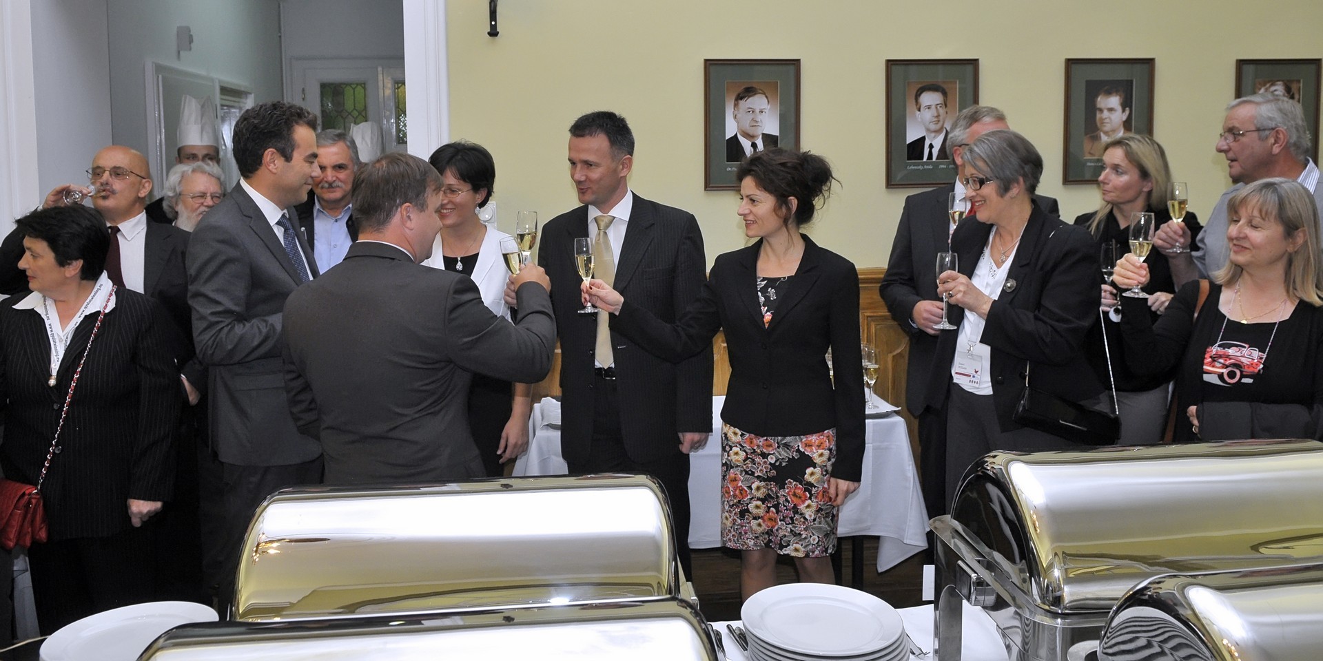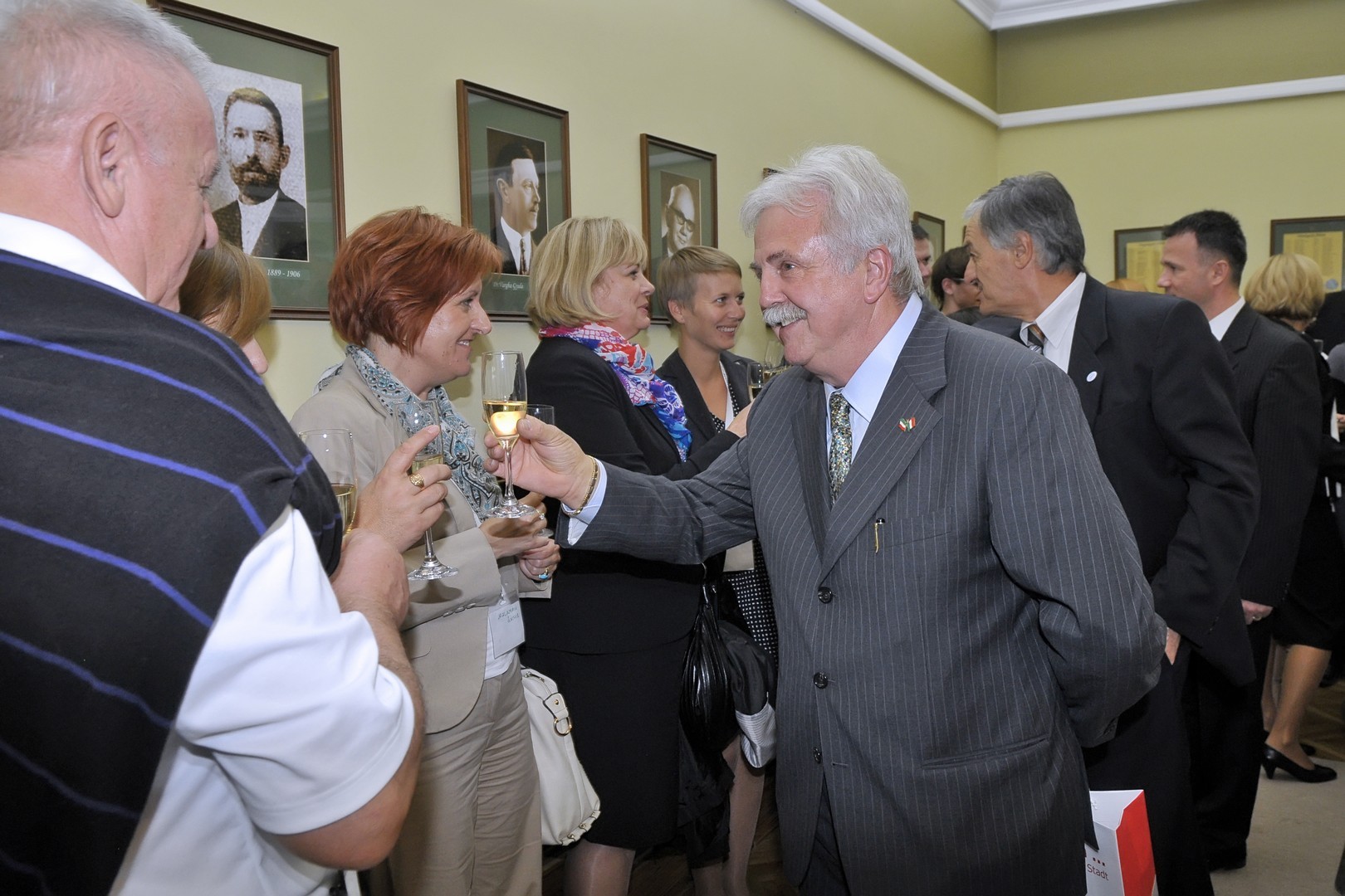 Az est ünnepi állófogadással zárult, amelyen Kónya István, a Békés Megyei Közgyűlés alelnöke mondott tósztot. A gyulai Budrió lakótelep önkormányzati képviselőjének pohárköszöntőjében a hatvanas évekre emlékezett, amikor a gyulai városvezetők az olasz testvérvárosról nevezték el a város új szegletét, végül az önkormányzat képviselőinek nevében ígéretet tett a jelenlévőknek, hogy tovább építik Gyula és Budrio város közös történelmét.