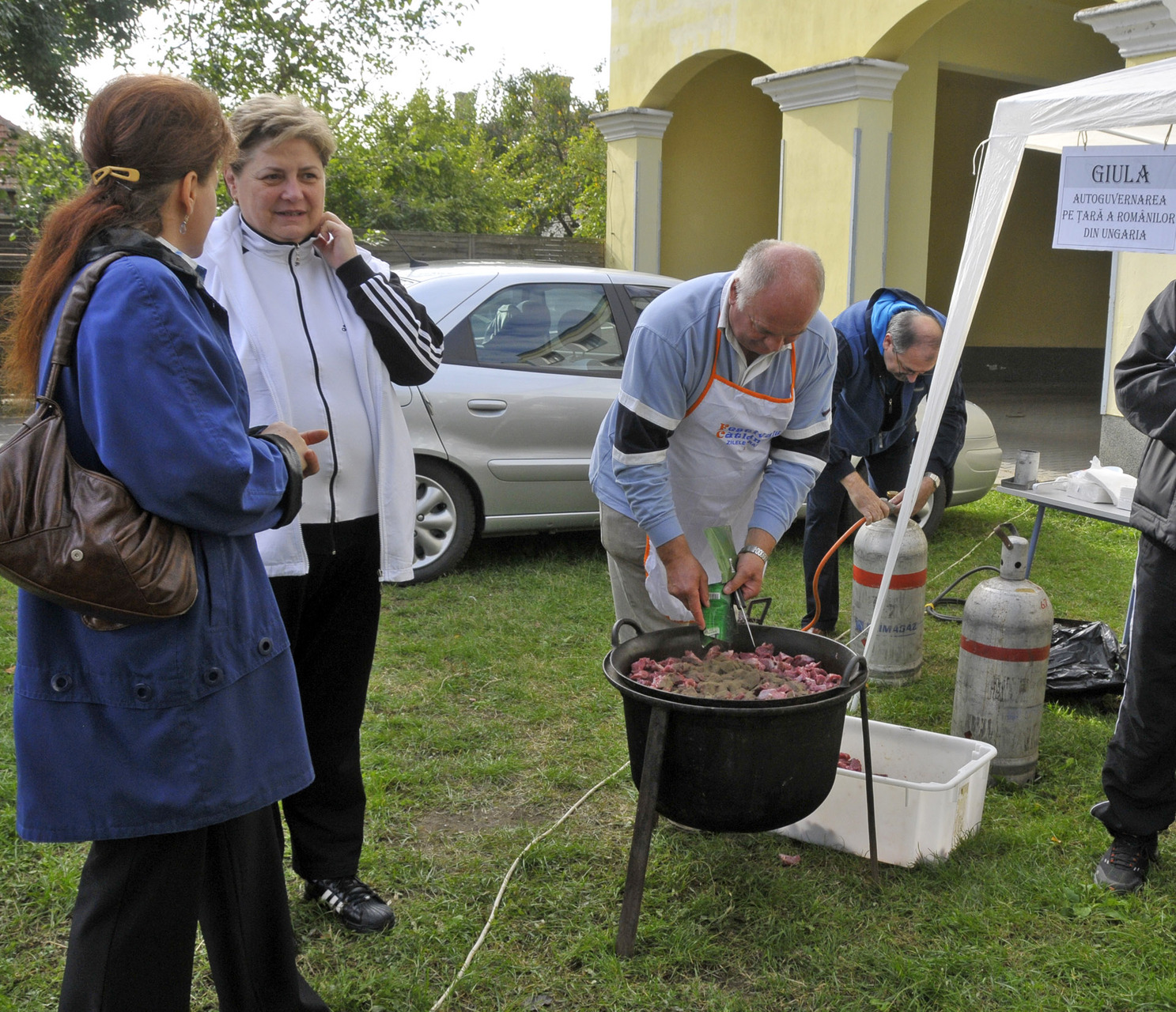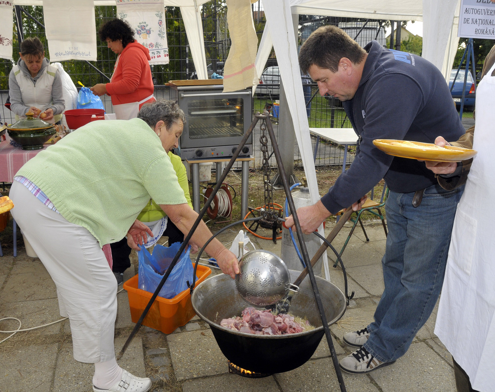 Készült itt mindenféle étel, de természetesen nem hiányozhattak a jellegzetes romániai étkek sem, úgymint a háromféle húsból készült miccs, a szőlőlevélbe tekert tőtike, vagy a pacalleves. A versenyen nagy számban vettek részt csapatok a magyarországi román településekről, román oktatási intézményekből. Városunk legtávolabbi vendégei Moldáviából jöttek, de érkeztek Tomesdről, Budurászáról, Lippáról és más romániai településekről is.