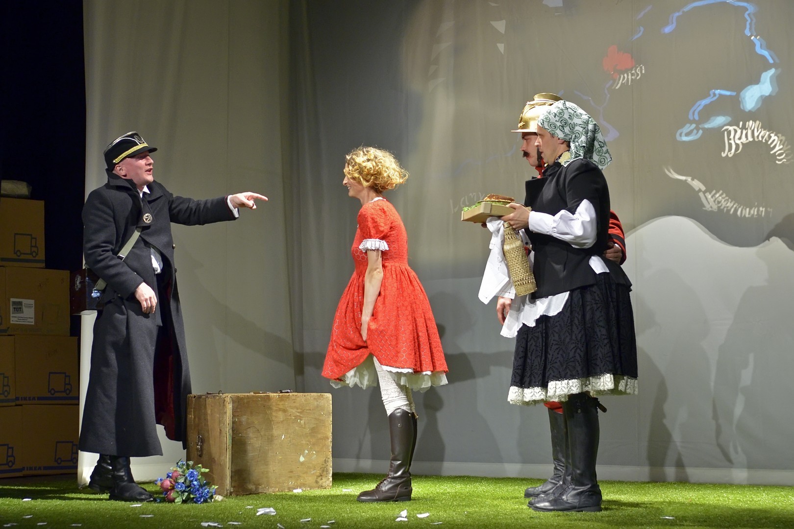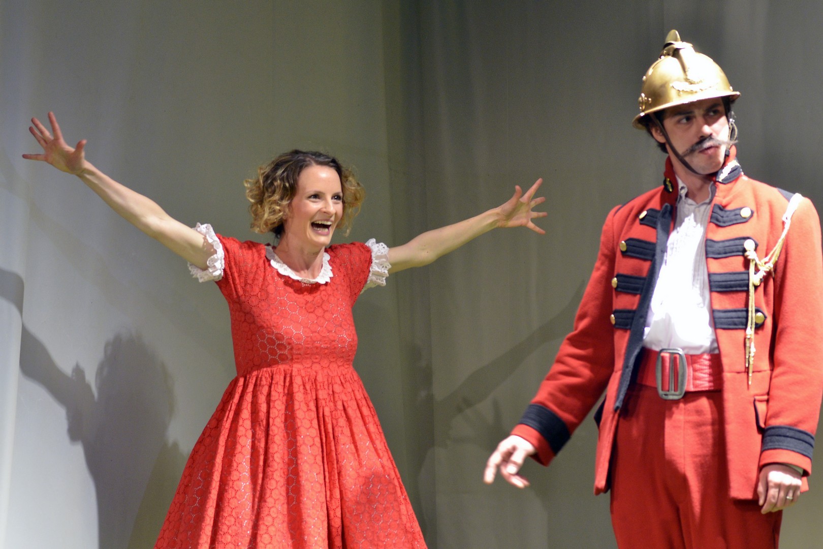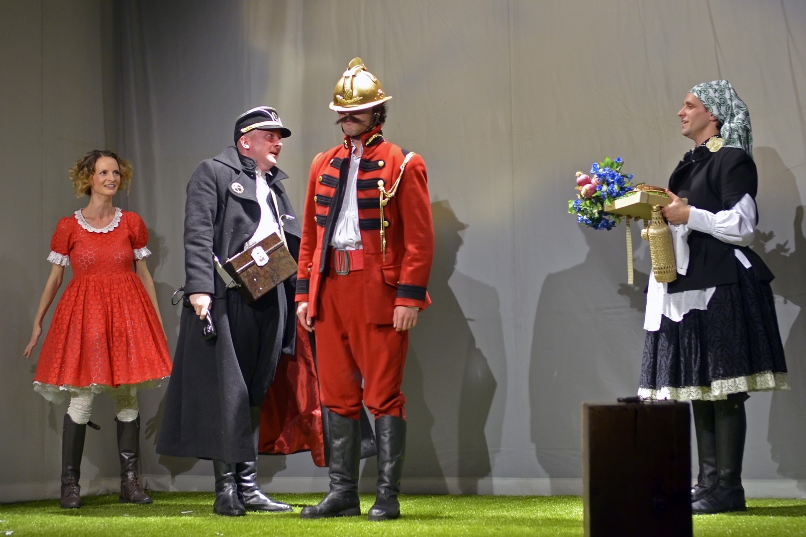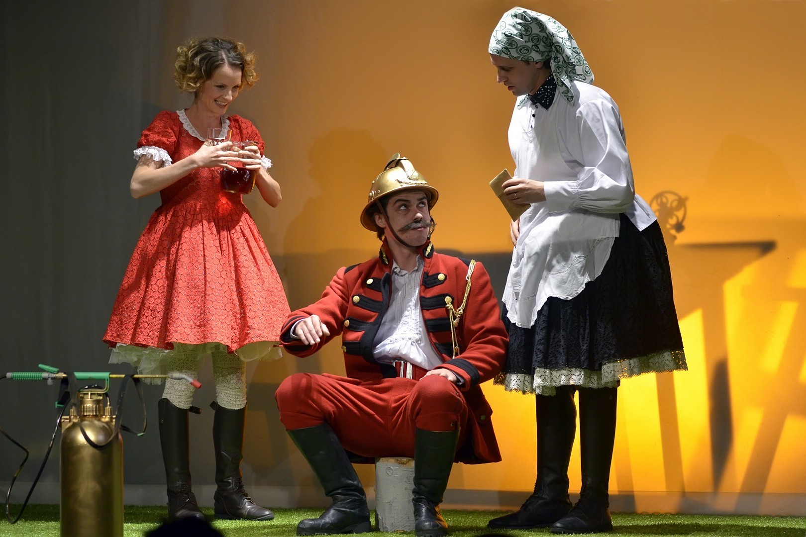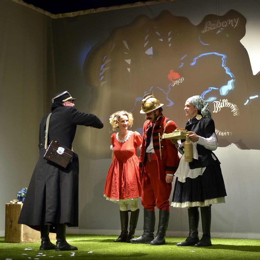 A románul elhangzó mű megértéséhez szinkrontolmács készüléket is kapott a közönség magyar fele, úgyhogy a dél-keleti szomszédjaink anyanyelvét nem értő nézők is jól szórakozhattak. A darabban öt színész, George Costin, Adrian Nicolae, Sorin Miron, Nicoleta Hancu és Alexandru Ion színművészek játékát láthattuk. Különlegesség tette a szereposztást, hogy a kislányt, Ágikát és a könnyűvérű nőt ugyanazon színész játszotta (Nicoleta Hancu), a Gyuluskájáért aggódó anyát, Mariskát pedig egy férfi (Sorin Miron) alakította, ami a komédia felé vitte az alaphangulatot.