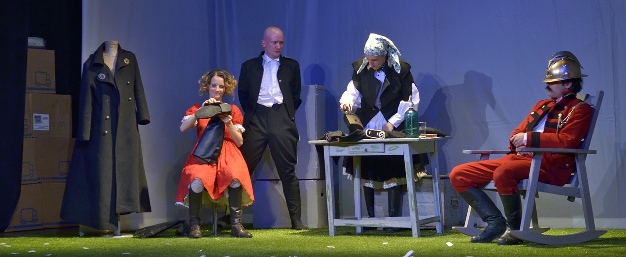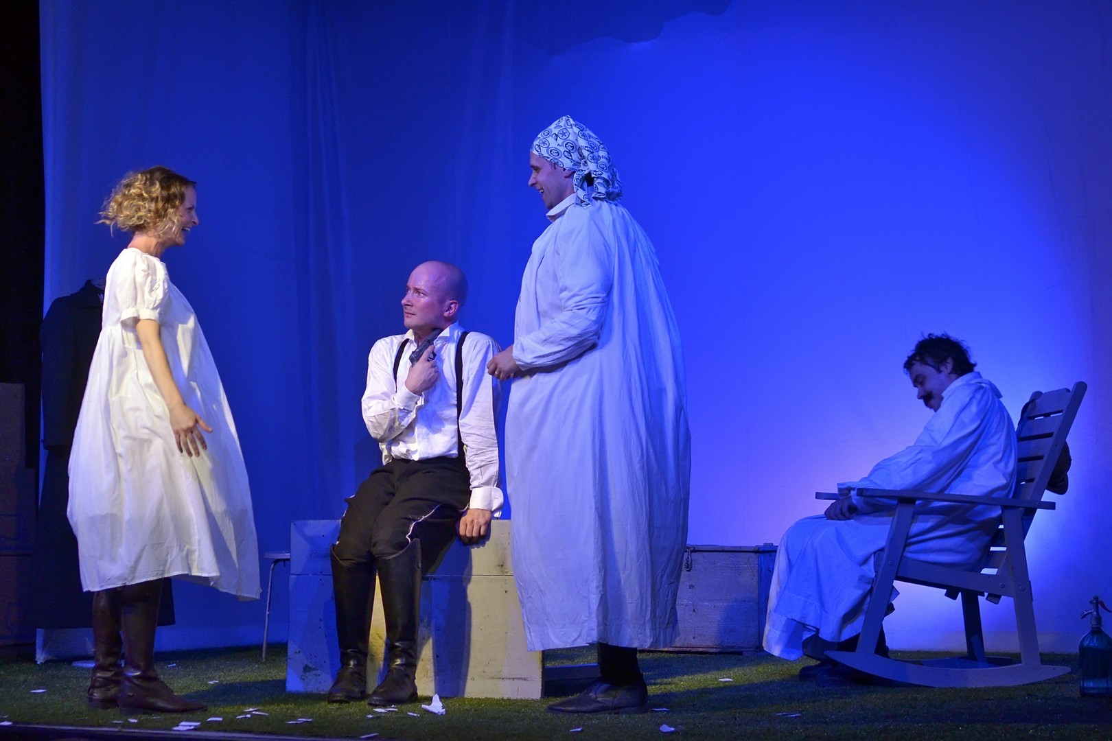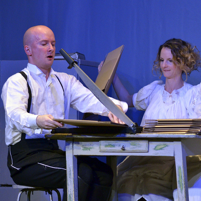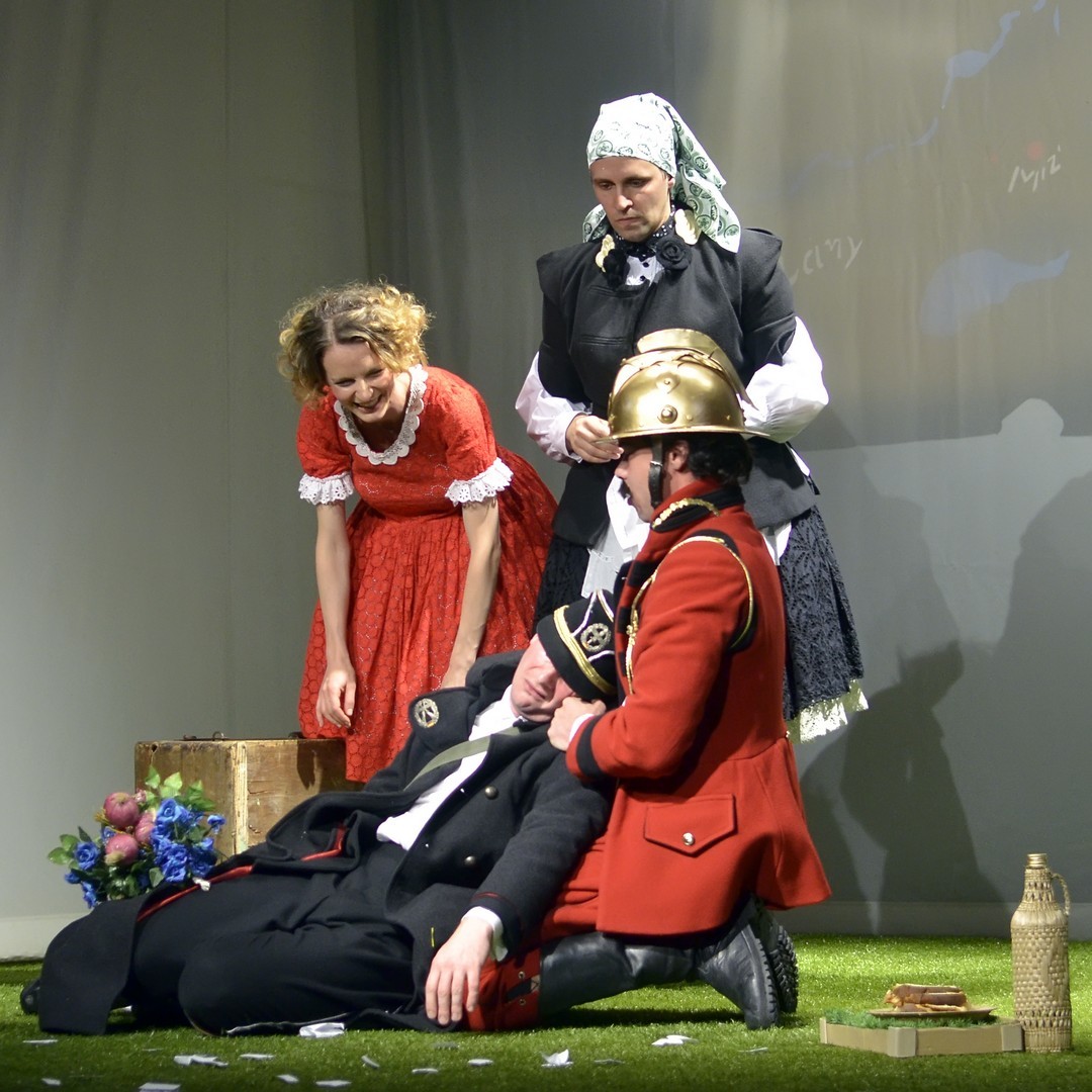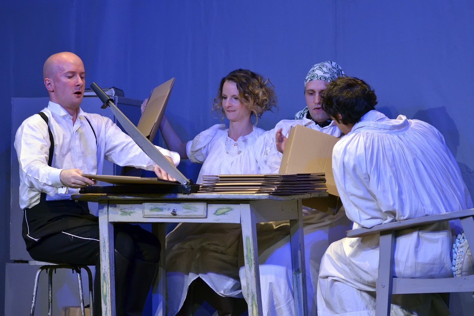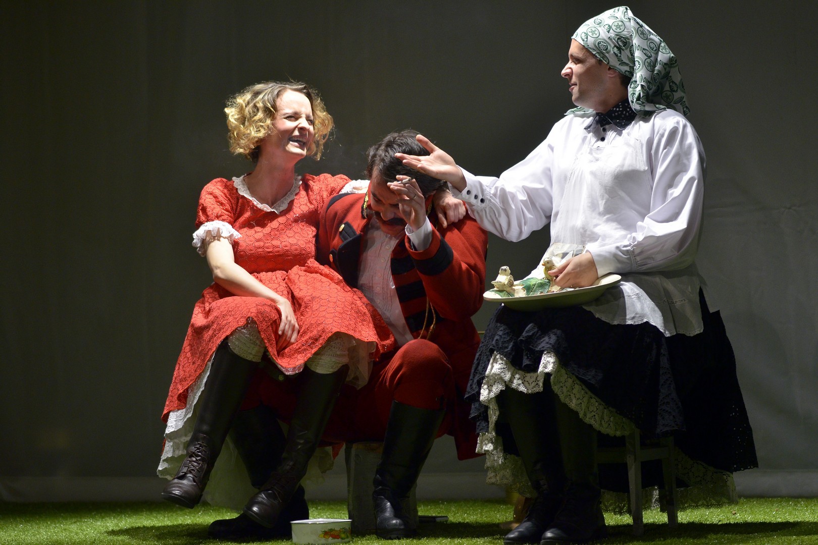 A románul elhangzó mű megértéséhez szinkrontolmács készüléket is kapott a közönség magyar fele, úgyhogy a dél-keleti szomszédjaink anyanyelvét nem értő nézők is jól szórakozhattak. A darabban öt színész, George Costin, Adrian Nicolae, Sorin Miron, Nicoleta Hancu és Alexandru Ion színművészek játékát láthattuk. Különlegesség tette a szereposztást, hogy a kislányt, Ágikát és a könnyűvérű nőt ugyanazon színész játszotta (Nicoleta Hancu), a Gyuluskájáért aggódó anyát, Mariskát pedig egy férfi (Sorin Miron) alakította, ami a komédia felé vitte az alaphangulatot.