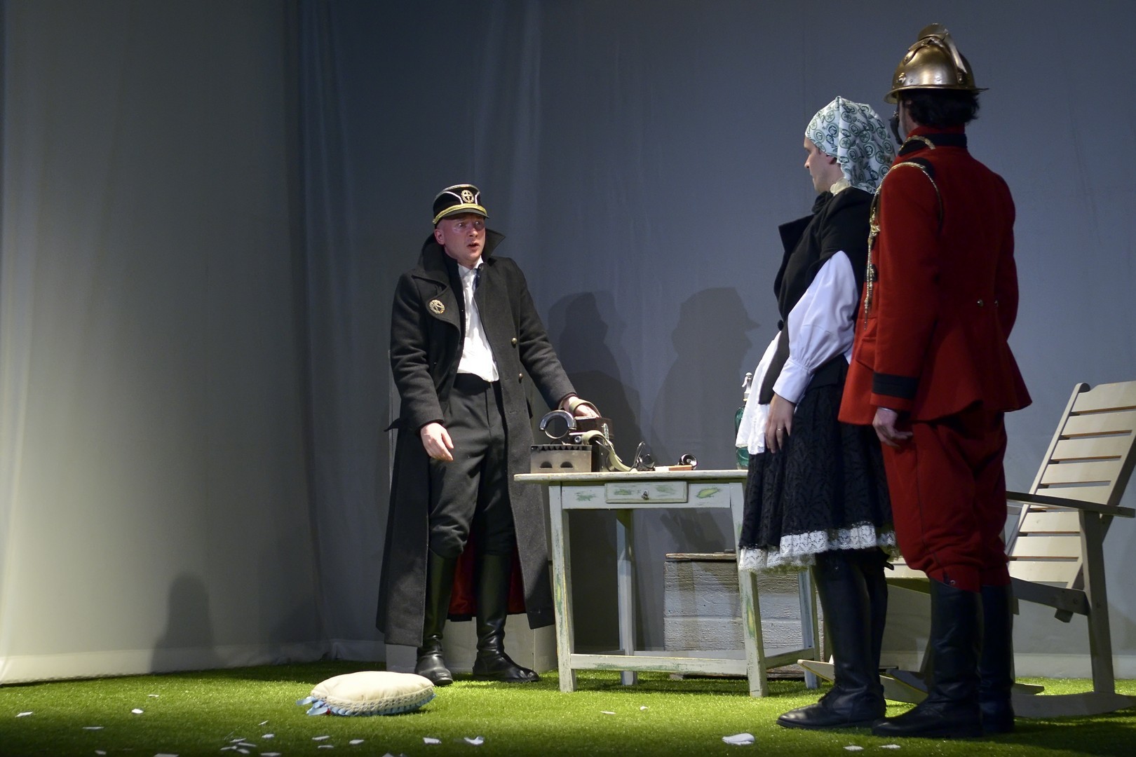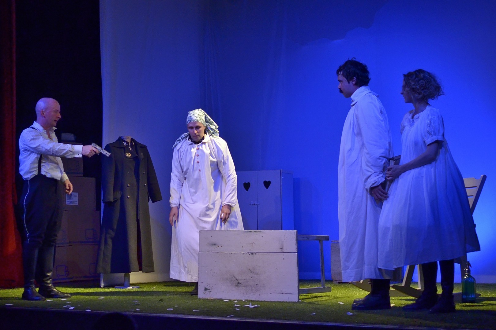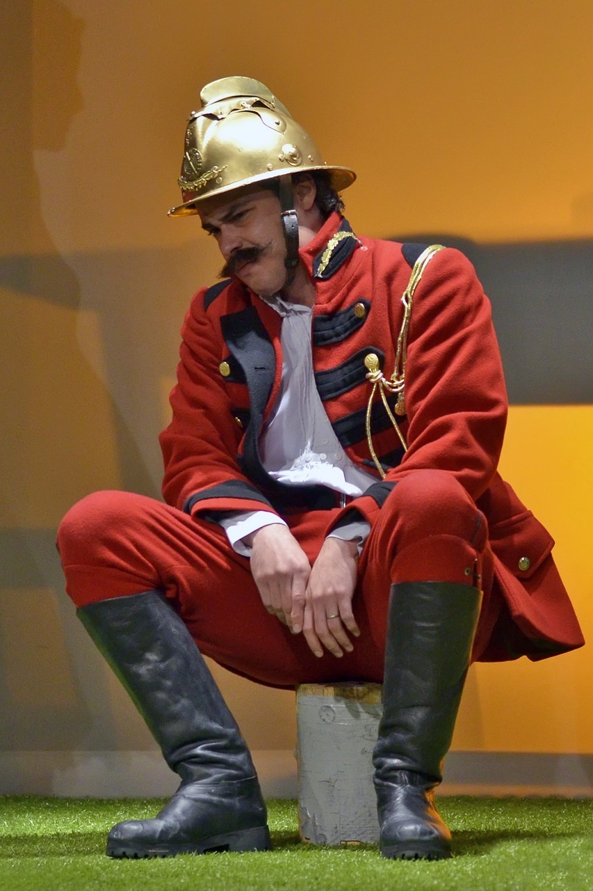 A színházi ajánlóban kiemelték az idegbeteg őrnagyot játszó George Costint, aki alakításáért magkapta a Román Színházi Szövetség Uniter-díját, úgyhogy kíváncsian vártuk az említett művész megjelenését. Addig a pillanatig egy szinte hagyományos komédiát láthattuk jó színészekkel, ám Örkény tollvonásával, illetve George Costin megjelenésével lépett a mű az elismertségükhöz méltó szintre. A színész hátborzongató, s az empatikus közönségre nézve szinte életveszélyes játéka egy szempillantás erejéig sem hagyta a hiteltelenség látszatát kelteni. A hatás nem maradt el, a szánnivaló beteg elme őrült tekintete, pszichotikus görcsei és artikulátlan reakciói vérfagyasztó csendszünetekkel tarkították a hahotákat.
