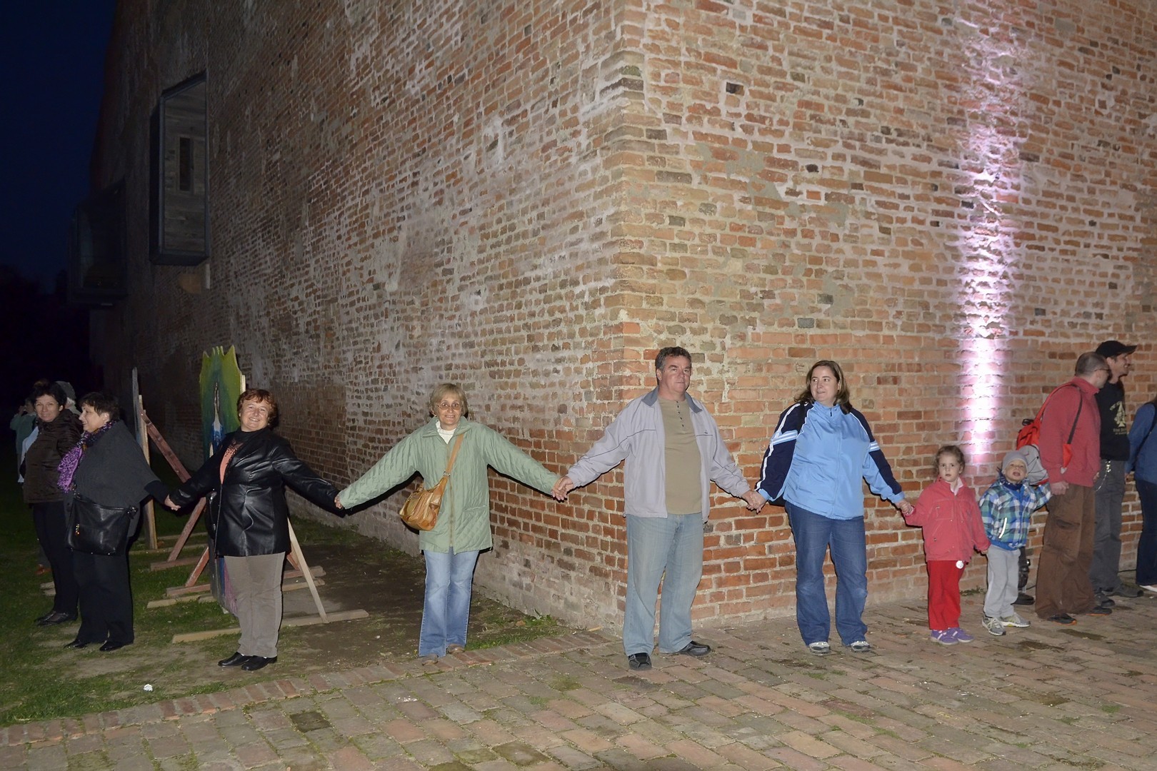 Őszről lévén szó, alkonyatkor már kissé hűvösebb idő kerekedett, amikor a jelenlévők megpróbálták átölelni a gyulai várat. A vállalkozó kedvűeknek mintegy félig sikerült körbevonni az óriási téglaerődítményt, ám a próba kétségkívül nem a lelkesedésen múlott.