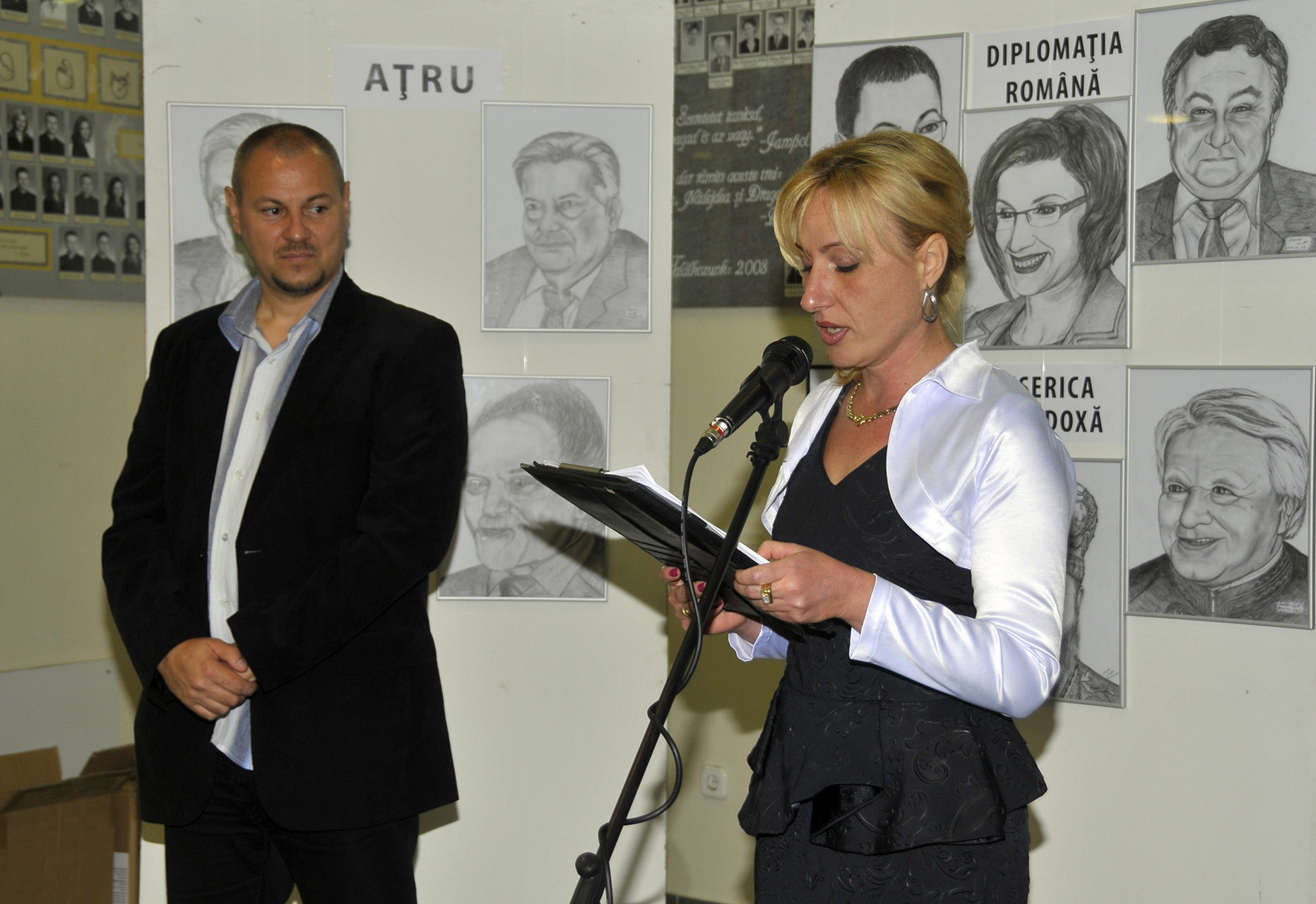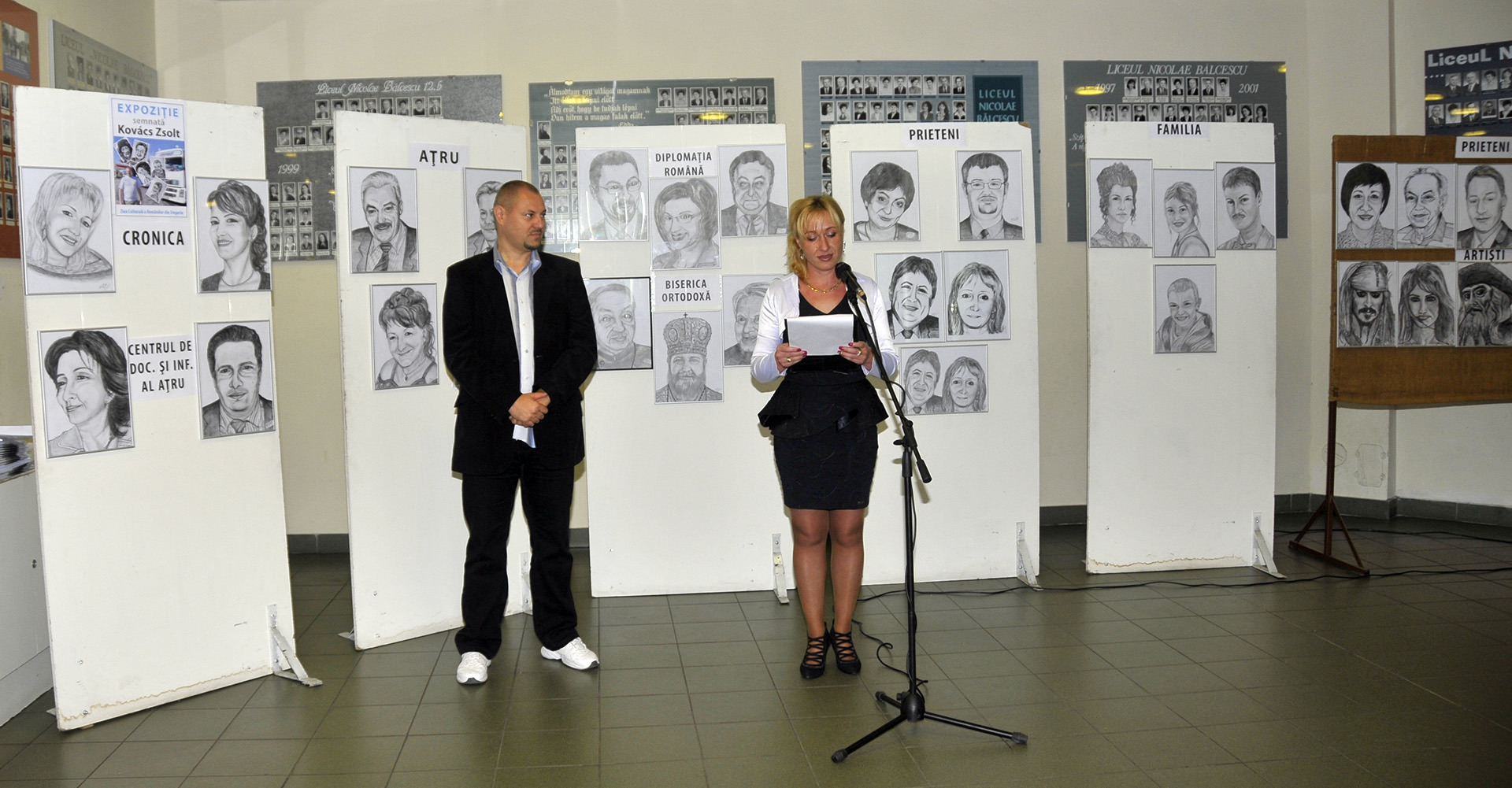 A tárlat megnyitóján Sebestyén Corina, a rendezvény koordinátora elmondta, Kovács Zsolt első kiállításán a grafikus által kedvelt, szeretett és tisztelt személyek portréjának összeállítását láthatjuk.