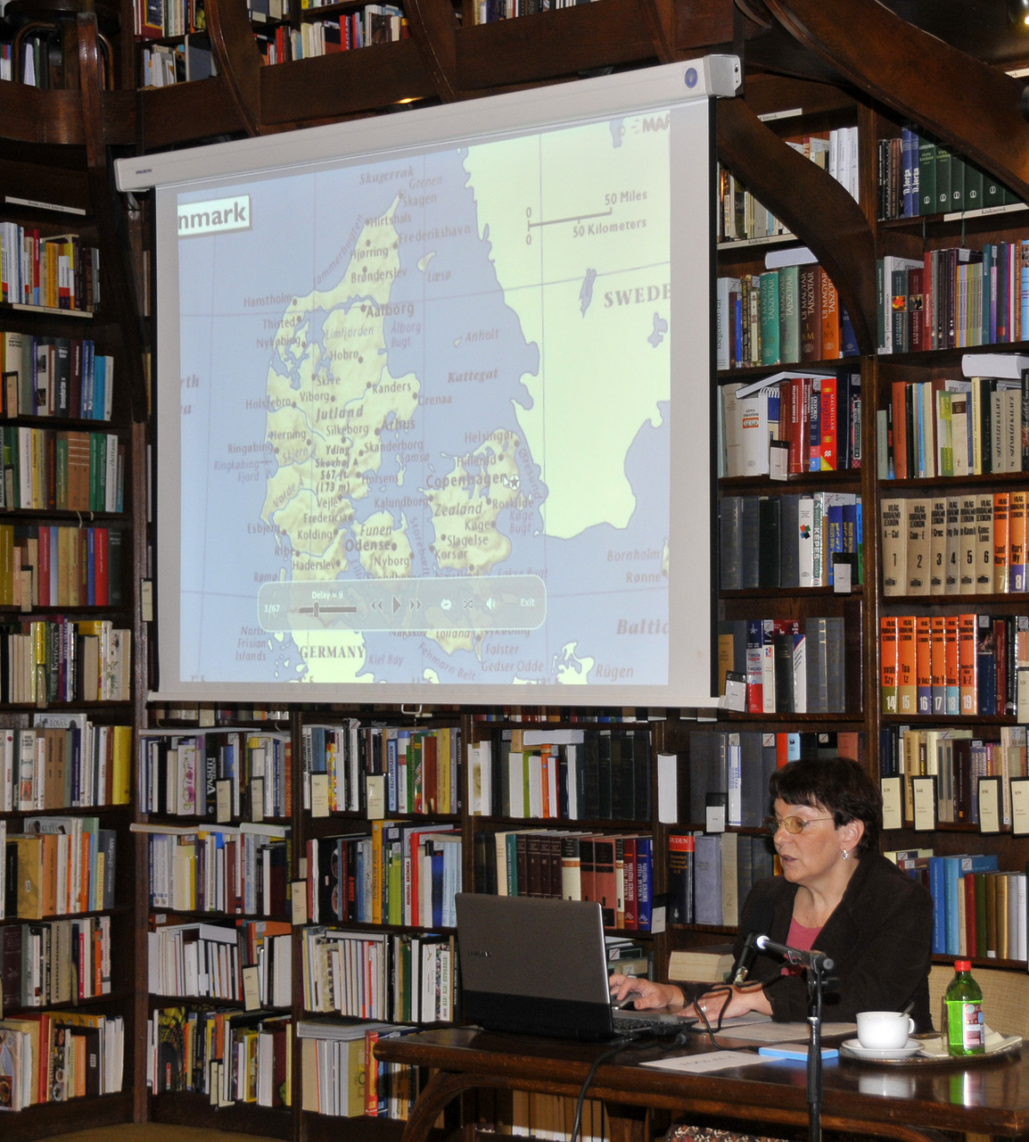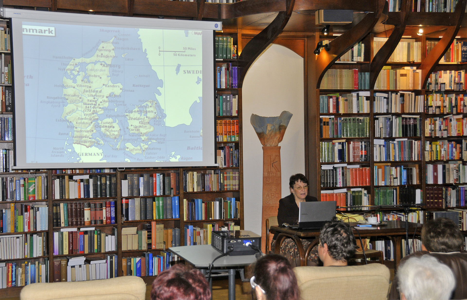 Oltyán Ilona beszámolójából sok érdekességet tudhattunk meg a skandináv országról, ahol az időjárás változékonysága miatt előfordulhat, hogy augusztusban vastag nagykabátra, míg októberben pólóra van szüksége az embernek. Az országról, ahol a helyiek függönyök helyett régiséget tesznek az ablakba, s ahol természetes szobornak meghagyják a többszáz éves elszáradt fákat. Előadásából kiderült az is, hogy a füge csupán úgy terem meg az enyhe telek és hűvös nyarak jellemezte klímában, hogy ablakok elé ültetik a Mediterráneumban domináns gyümölcsfákat. Valamint az is, hogy hogyan lehet egy dán pubban három kört inni egy áráért…