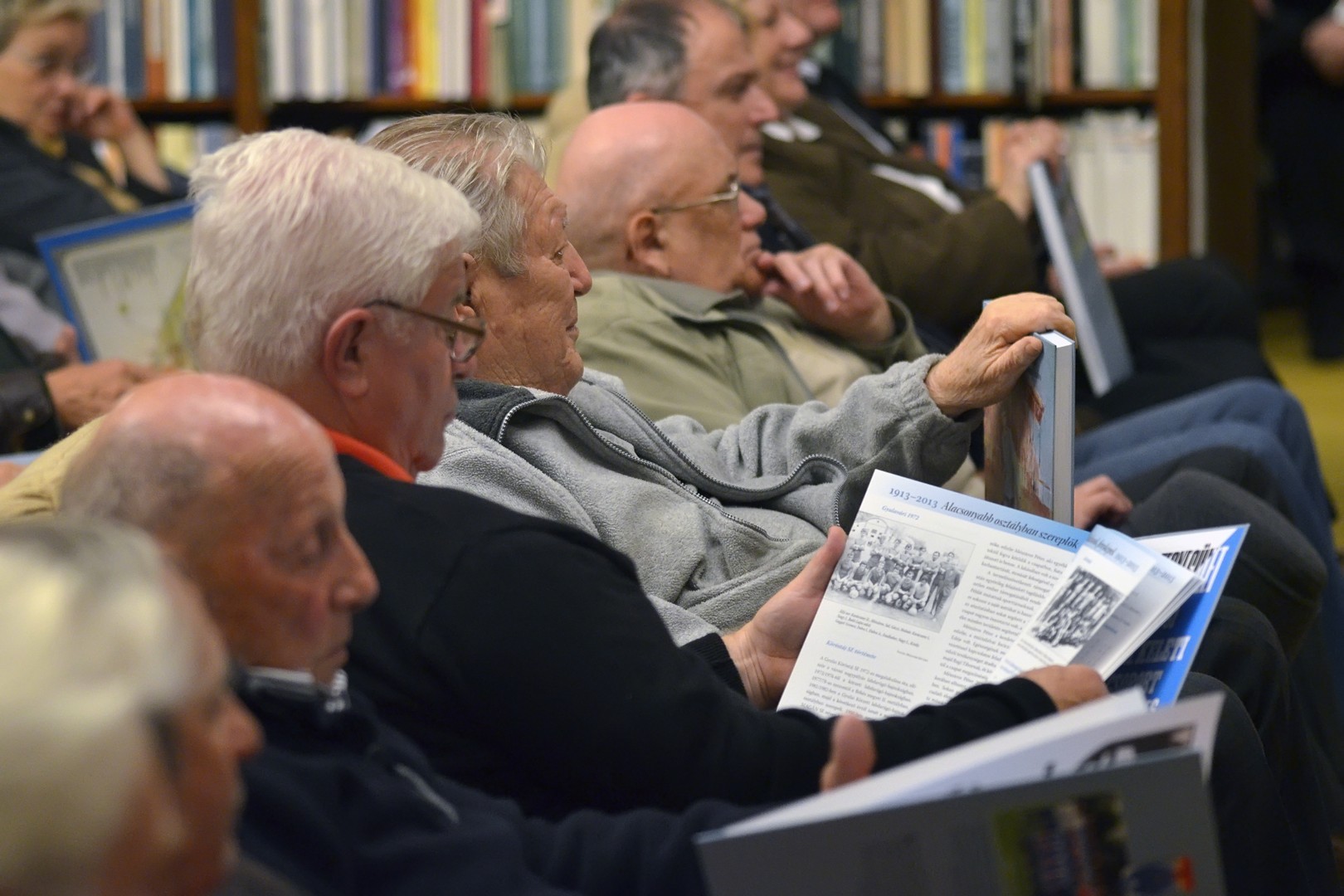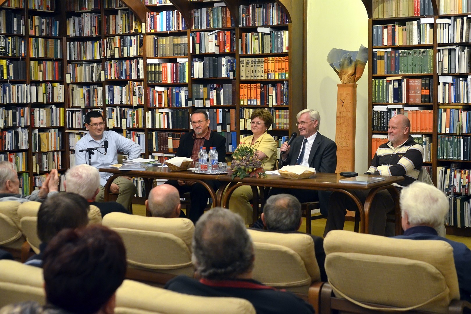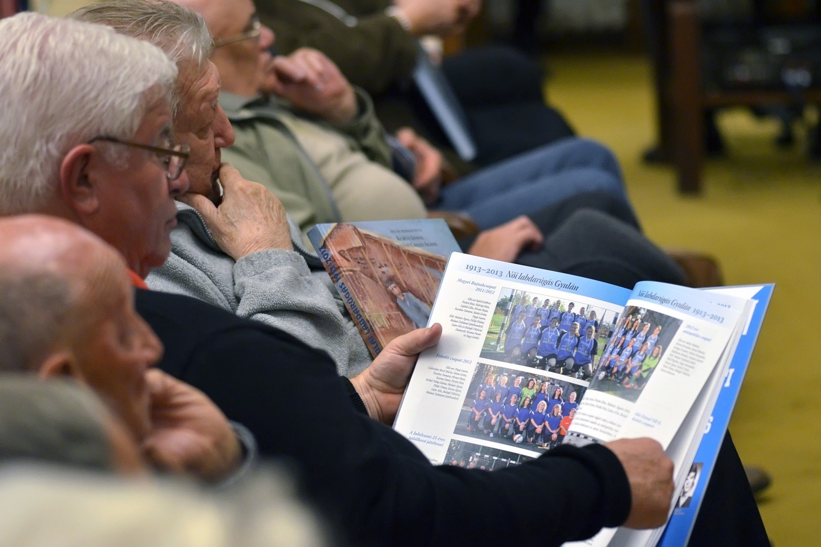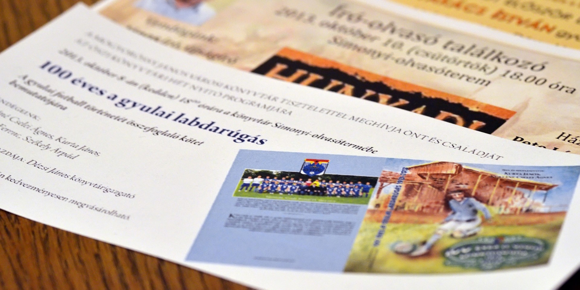 Sokan gyűltek össze az Őszi Könyvtári Hét első estéjén, a 100 éves gyulai labdarúgás történetét összefoglaló kötet bemutatóján a Mogyoróssy János Városi Könyvtár Simonyi-olvasótermében. Az előadás vendége volt a könyv két szerzője – Kurtáné Cselei Ágnes és Kurta János – segítőjük, Székely Árpád, valamint Barabás Ferenc tipográfus, akiket Dézsi János könyvtárigazgató faggatott a helyi futballtörténelem első évszázadát leíró kiadványról. A könyvtár vezetője a jelenlévőknek elmondta, a szerzők néhány évvel ezelőtt már elkészítettek egy kisebb terjedelmű, monokróm könyvet a témáról, ám a most megjelent színes könyv kétségkívül a gyulai labdarúgás eddigi legátfogóbb történetét mutatja be a futballkedvelőknek.