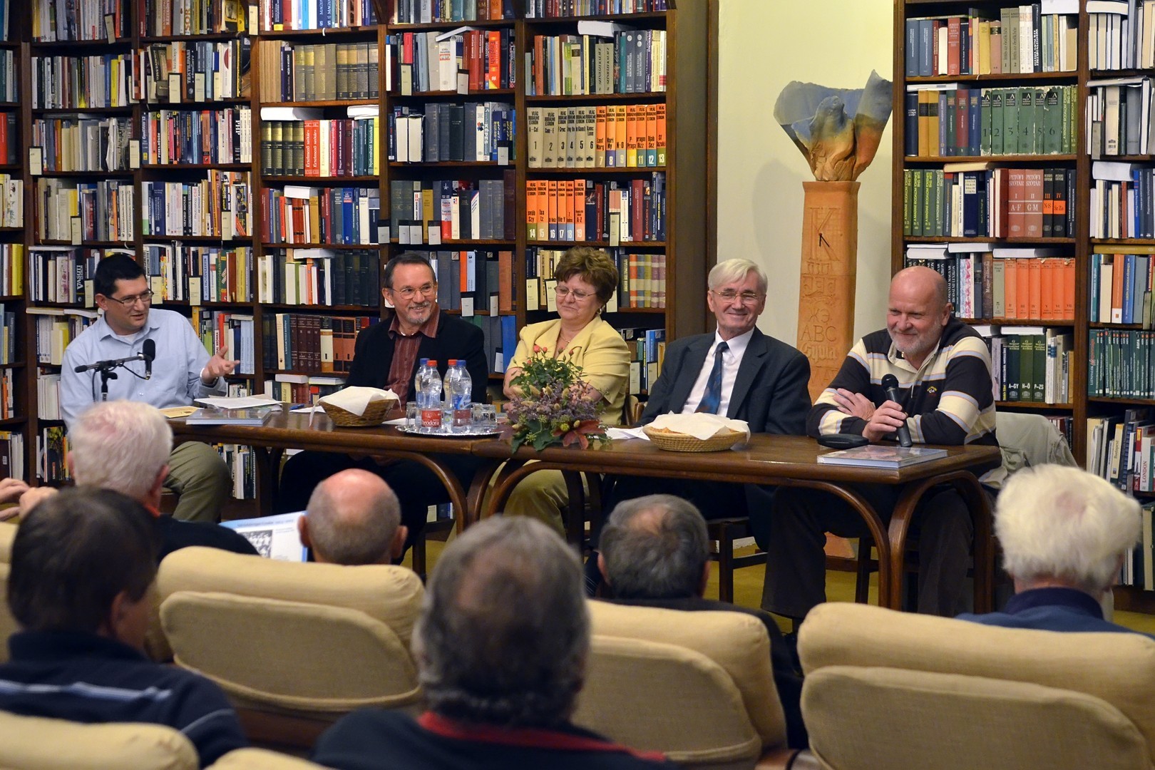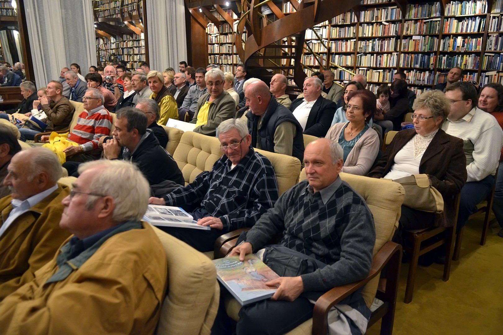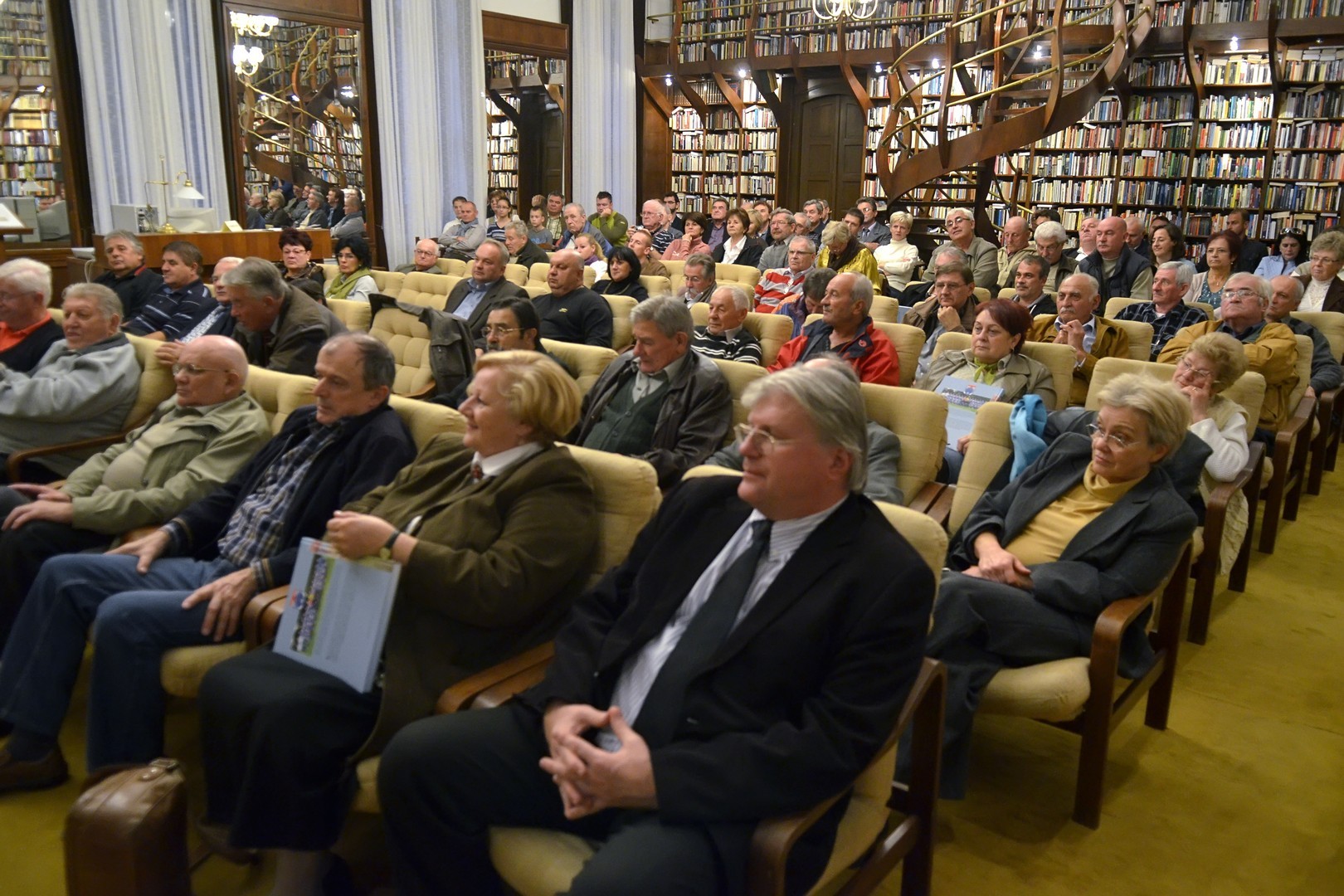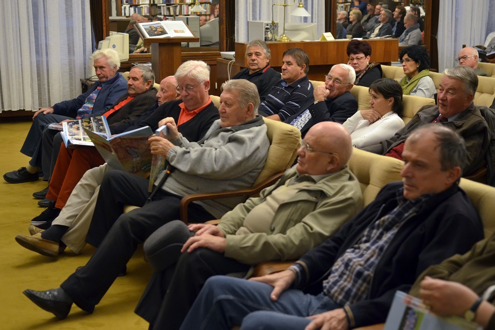 Sokan gyűltek össze az Őszi Könyvtári Hét első estéjén, a 100 éves gyulai labdarúgás történetét összefoglaló kötet bemutatóján a Mogyoróssy János Városi Könyvtár Simonyi-olvasótermében. Az előadás vendége volt a könyv két szerzője – Kurtáné Cselei Ágnes és Kurta János – segítőjük, Székely Árpád, valamint Barabás Ferenc tipográfus, akiket Dézsi János könyvtárigazgató faggatott a helyi futballtörténelem első évszázadát leíró kiadványról. A könyvtár vezetője a jelenlévőknek elmondta, a szerzők néhány évvel ezelőtt már elkészítettek egy kisebb terjedelmű, monokróm könyvet a témáról, ám a most megjelent színes könyv kétségkívül a gyulai labdarúgás eddigi legátfogóbb történetét mutatja be a futballkedvelőknek.