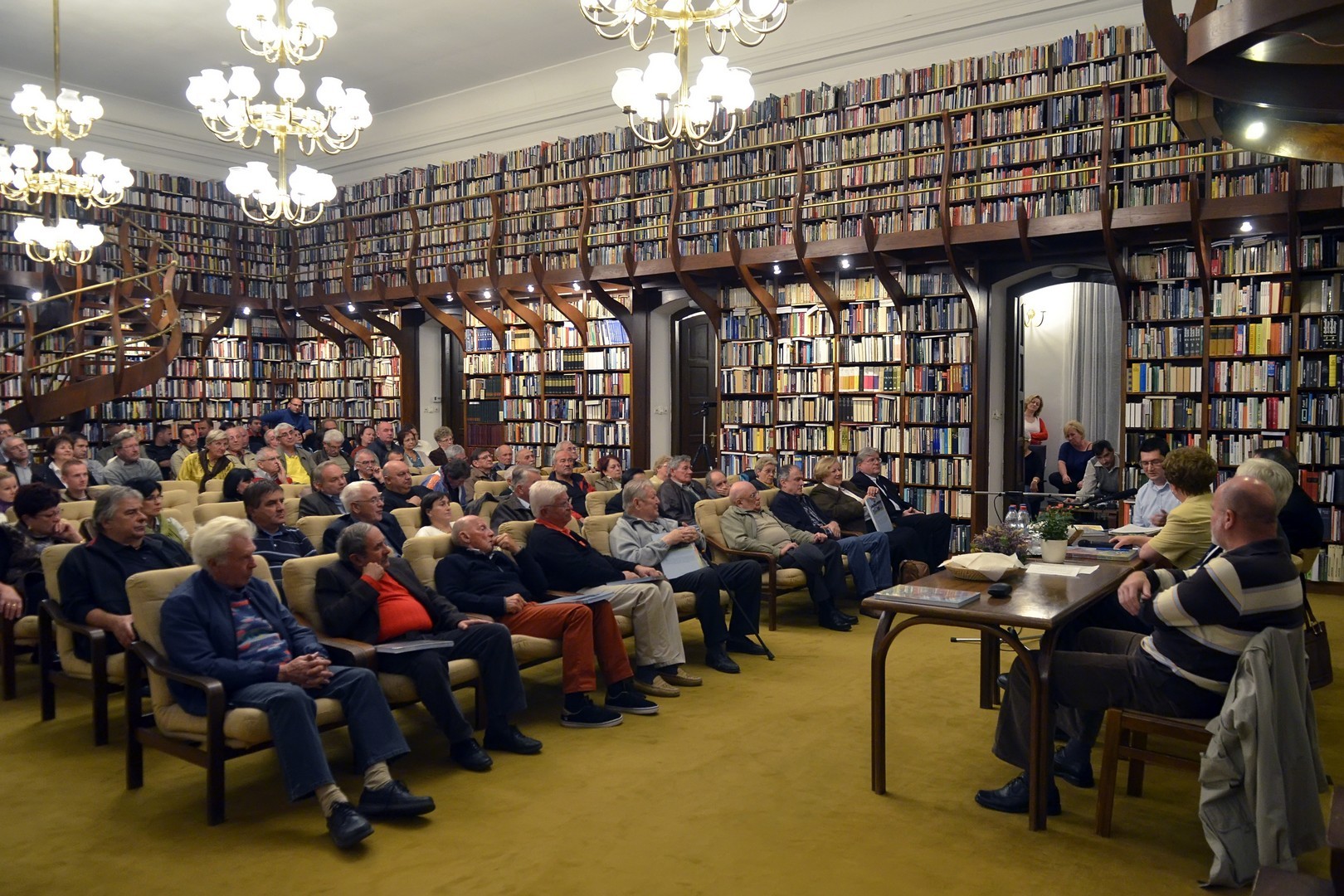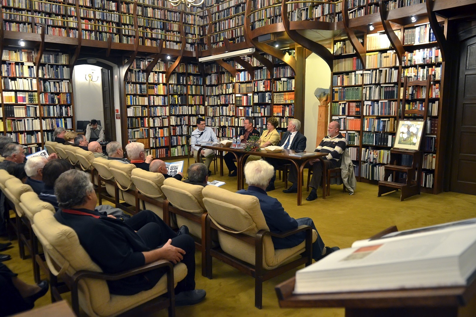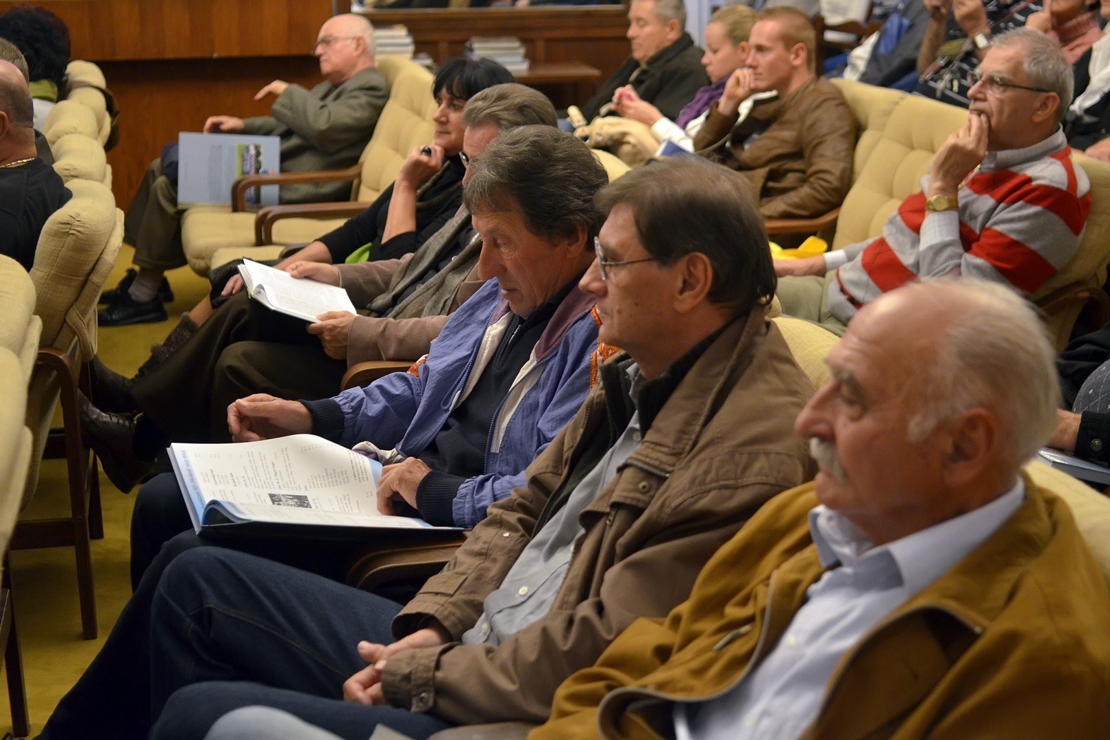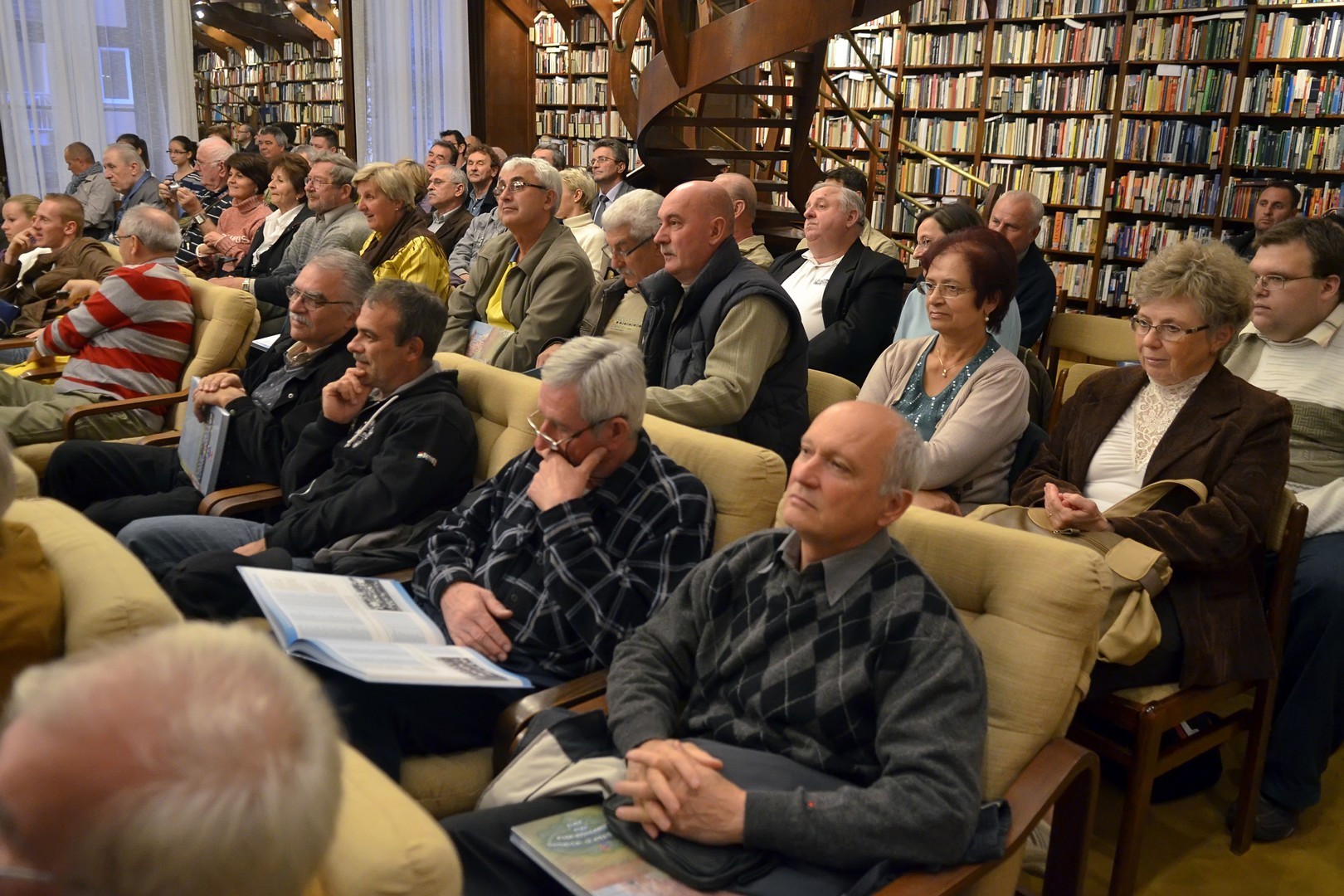 Sokan gyűltek össze az Őszi Könyvtári Hét első estéjén, a 100 éves gyulai labdarúgás történetét összefoglaló kötet bemutatóján a Mogyoróssy János Városi Könyvtár Simonyi-olvasótermében. Az előadás vendége volt a könyv két szerzője – Kurtáné Cselei Ágnes és Kurta János – segítőjük, Székely Árpád, valamint Barabás Ferenc tipográfus, akiket Dézsi János könyvtárigazgató faggatott a helyi futballtörténelem első évszázadát leíró kiadványról. A könyvtár vezetője a jelenlévőknek elmondta, a szerzők néhány évvel ezelőtt már elkészítettek egy kisebb terjedelmű, monokróm könyvet a témáról, ám a most megjelent színes könyv kétségkívül a gyulai labdarúgás eddigi legátfogóbb történetét mutatja be a futballkedvelőknek.