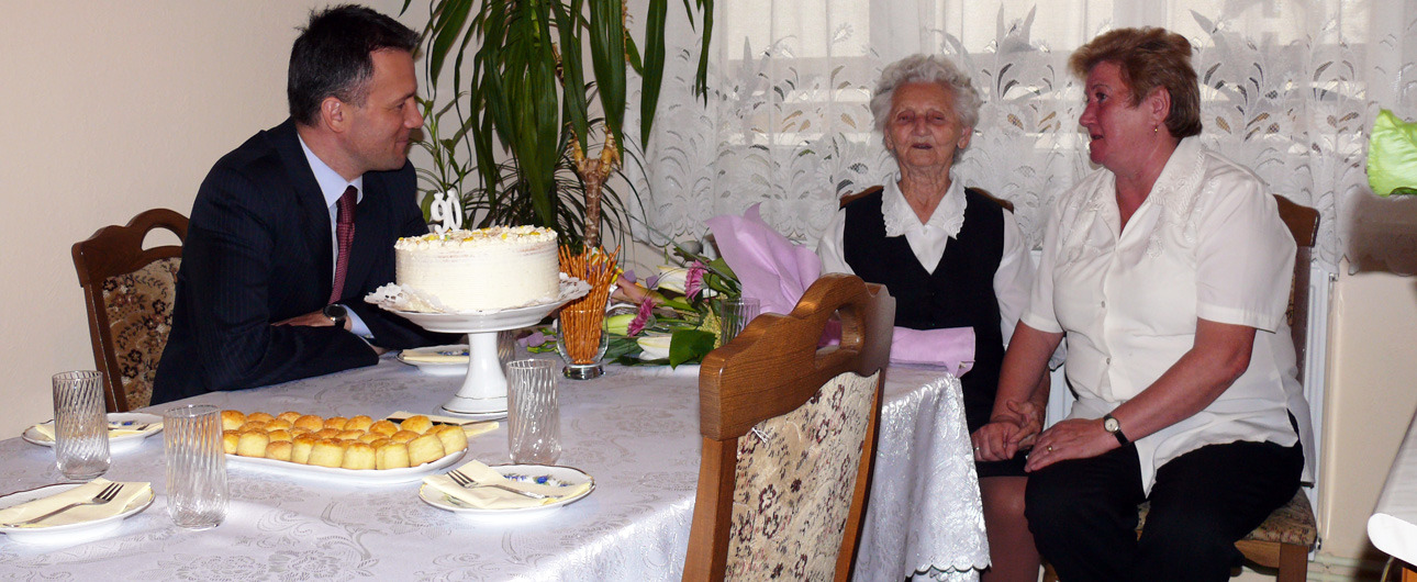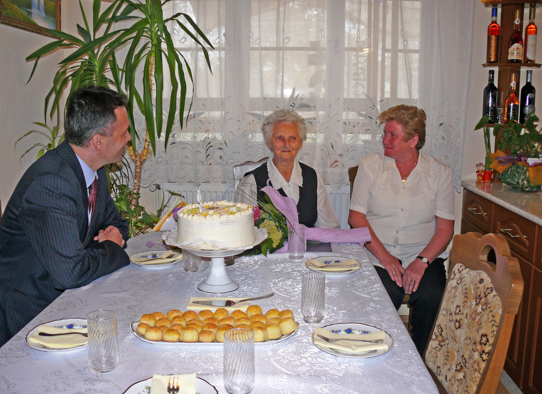 Földi Jánosnét citromtortával, virágcsokorral és emléklappal köszöntötte 90. születésnapja alkalmából Becsyné dr. Szabó Márta címzetes főjegyző, dr. Görgényi Ernő polgármester és Galbács Mihály a választókerület önkormányzati képviselője. A hölgyet lánya Honvéd lakótelepi otthonában, családi körben ajándékozták meg a városvezetők.