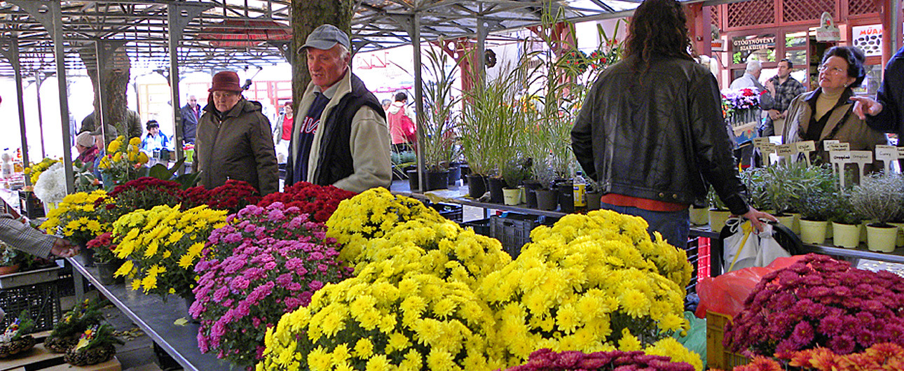 Másfél héttel a halottak napja előtt valósággal elözönlötték a gyulai piacot a koszorúárusok és a virágtermelők. Ottjártunkkor mintegy húsz standnál árultak sírcsokrot, sírdíszt, selyemvirágot, koszorút, szálas virágot vagy cserepes krizantémot.