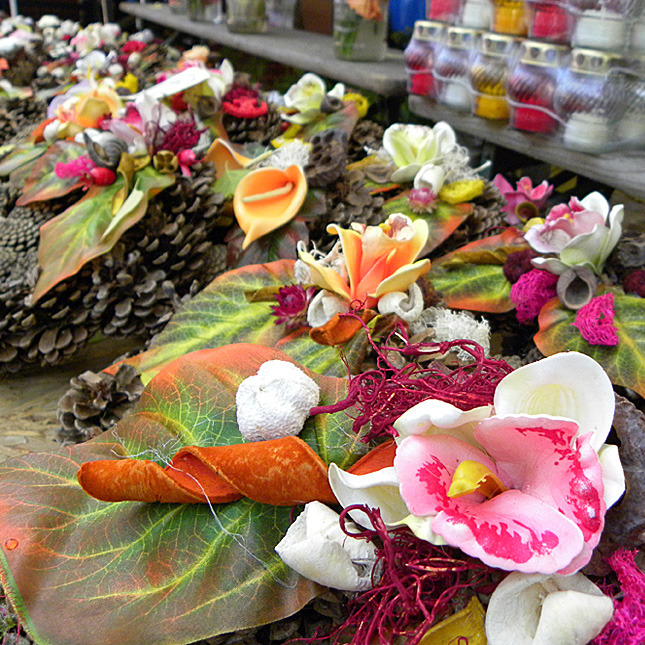 A sok árusnak köszönhetően a kínálat igen változatos, így bárki megtalálhatja a piacon a kedvére való portékát. Koszorúból toboz-, cirok-, fenyő-, moha- és szalmaalapút is beszerezhetünk, és idén sem hiányozhat a kínálatból a selyemdísz. A krizantémból szintén nagy a választék, a virágot többféle méretű cserépben és színben vásárolhatjuk meg.