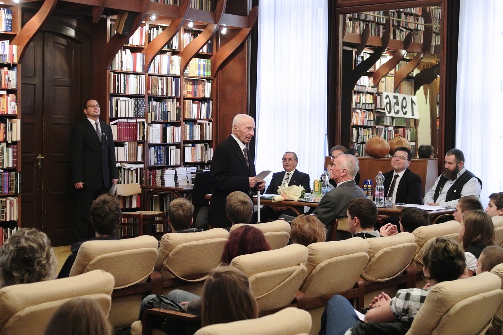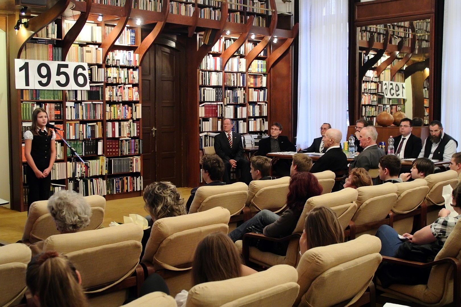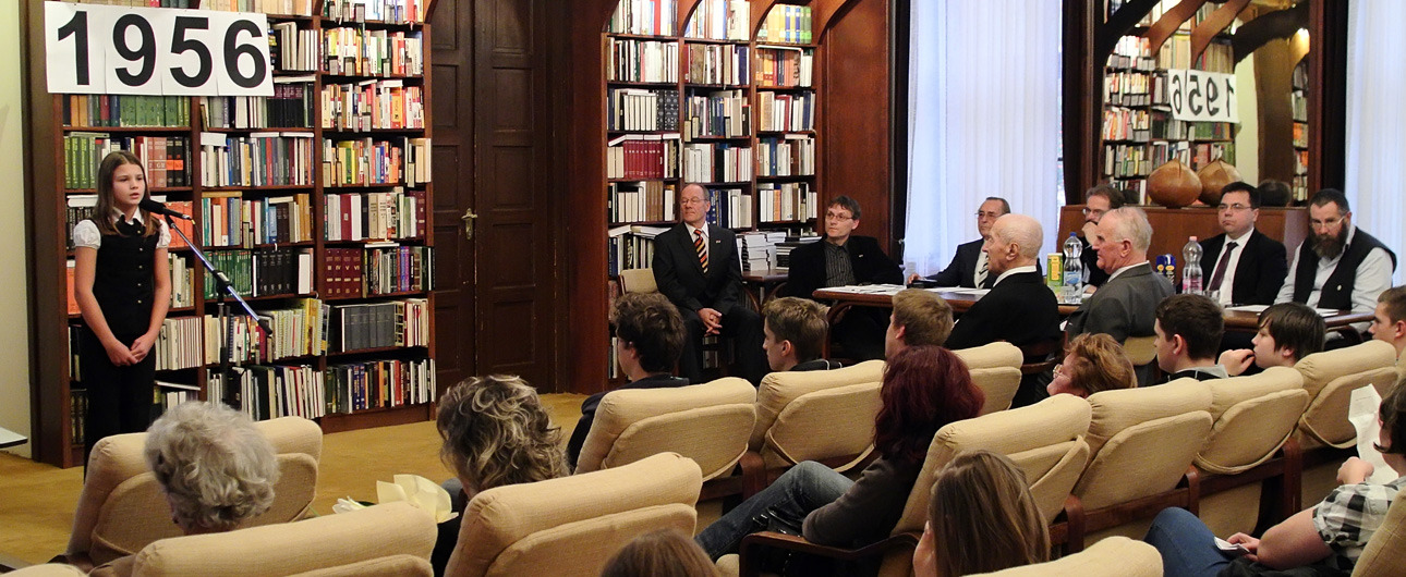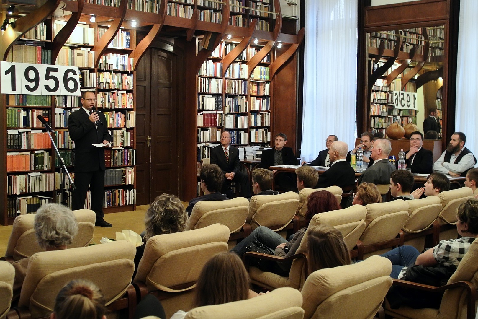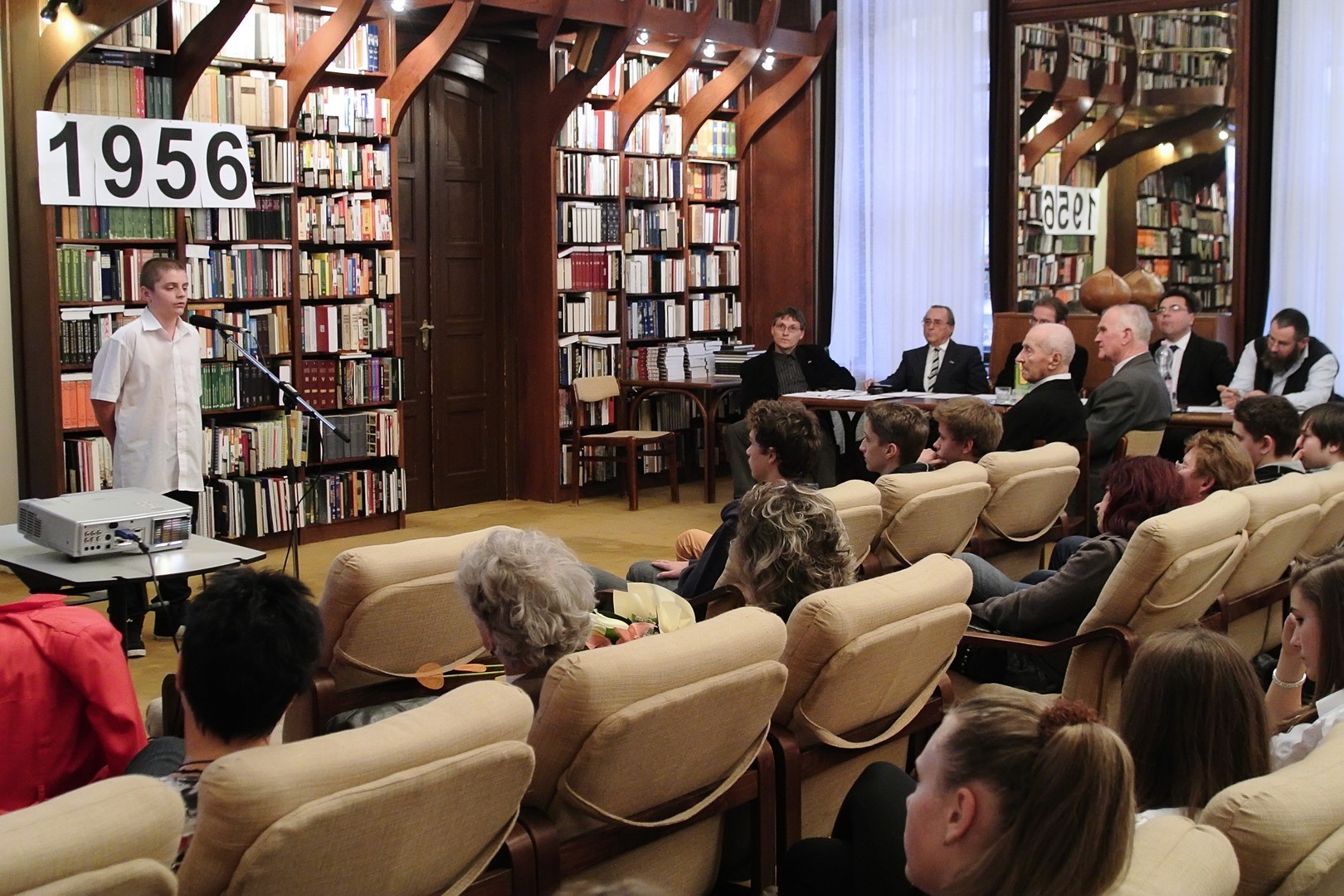 A jelenlévőket a bibliotéka nevében Dézsi János köszöntötte. A könyvtárigazgató diákéveit felidézve arról az időszakról beszélt, amikor a történelemkönyvekben még hamis színben tüntették fel az 1956-os eseményeket. Hozzátette: intézményük néhány éve élénken foglalkozik azzal a gondolattal, hogy rendhagyó történelemórák keretében biztosít lehetőséget a diákoknak ismereteik bővítésére.