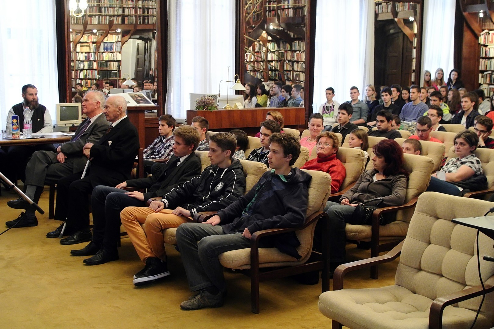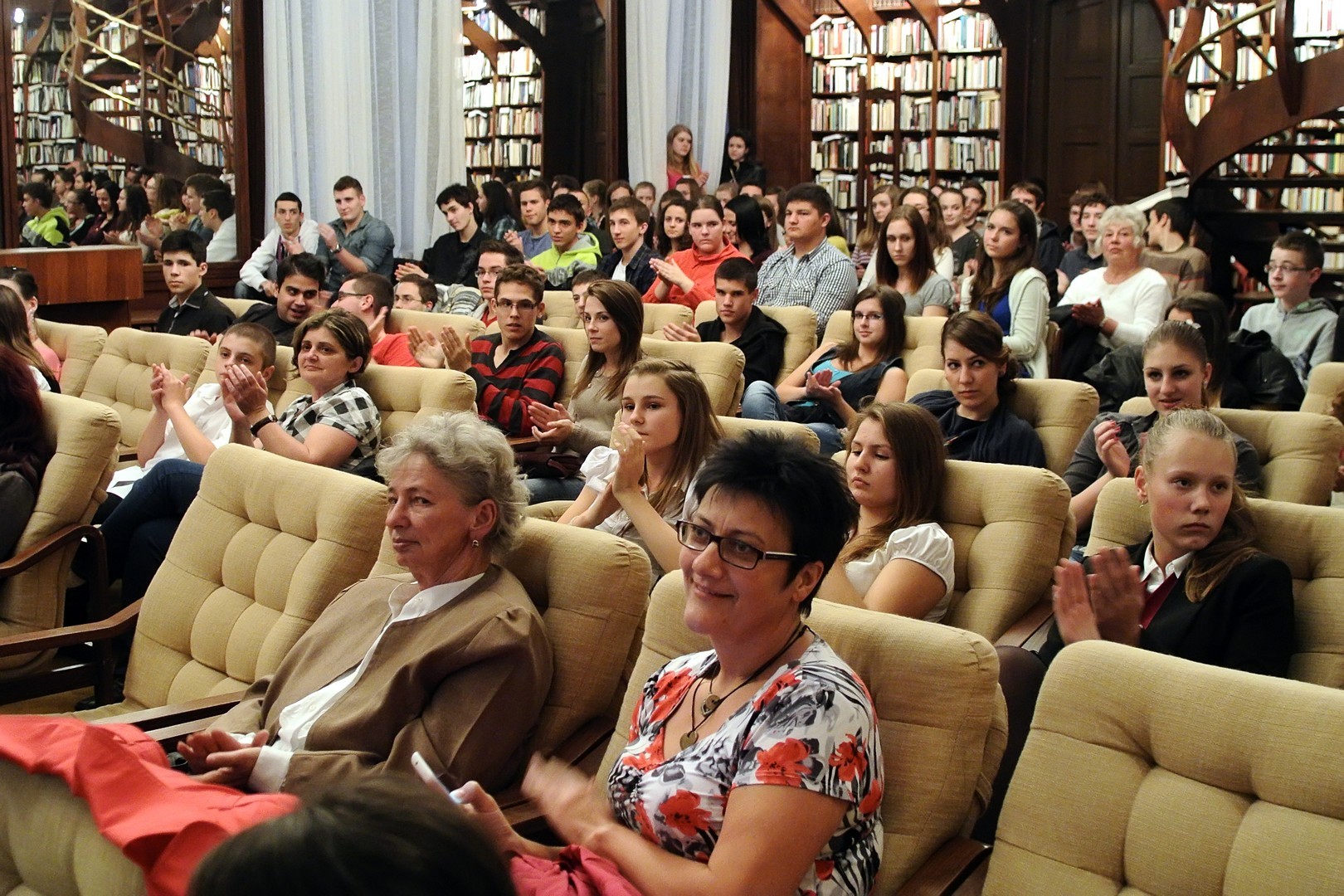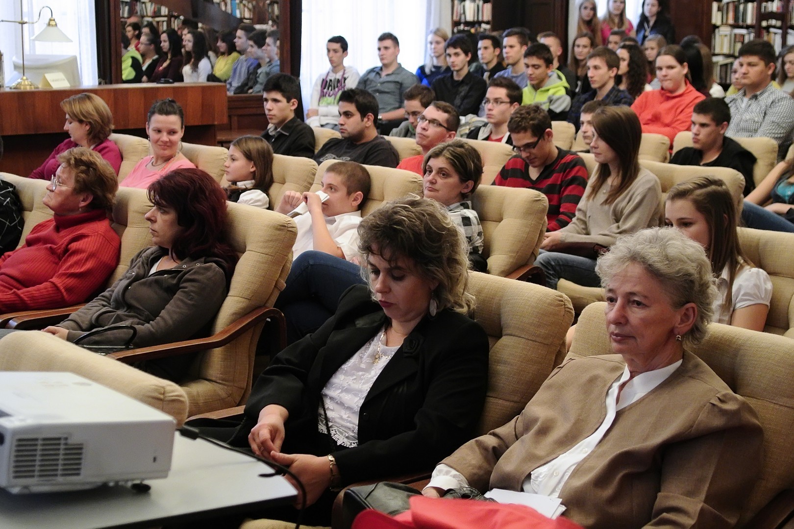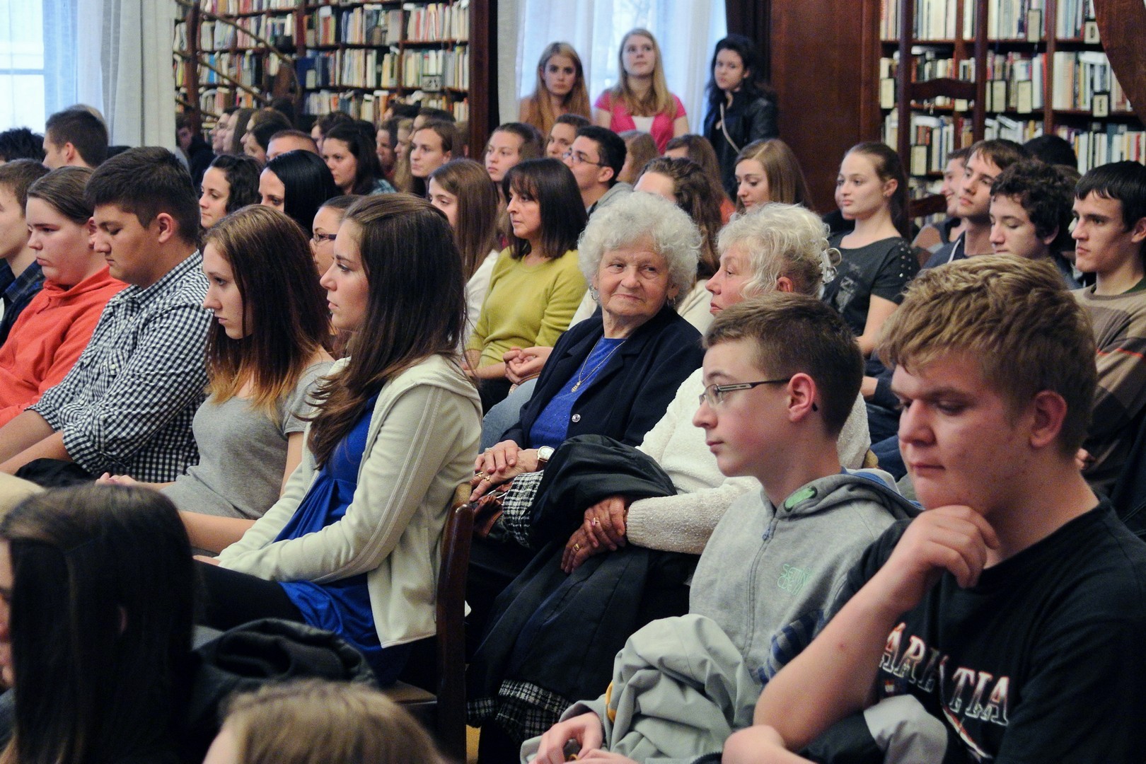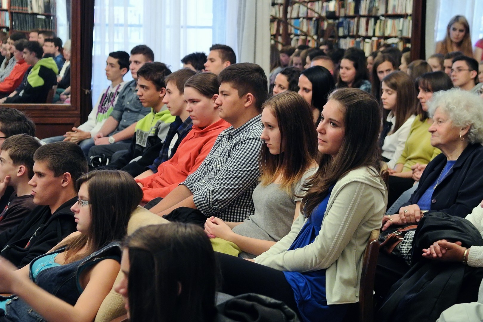 A jelenlévőket a bibliotéka nevében Dézsi János köszöntötte. A könyvtárigazgató diákéveit felidézve arról az időszakról beszélt, amikor a történelemkönyvekben még hamis színben tüntették fel az 1956-os eseményeket. Hozzátette: intézményük néhány éve élénken foglalkozik azzal a gondolattal, hogy rendhagyó történelemórák keretében biztosít lehetőséget a diákoknak ismereteik bővítésére.