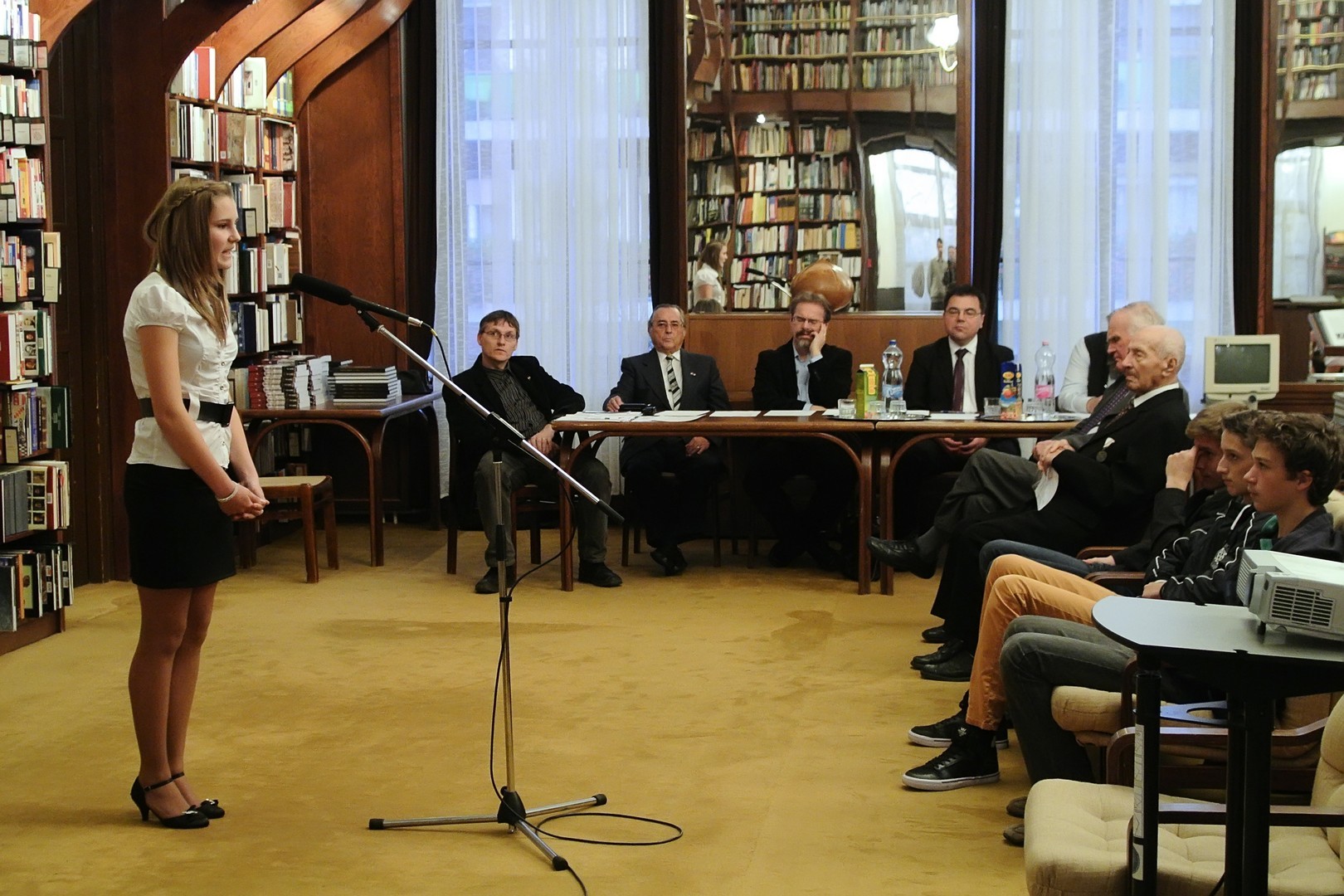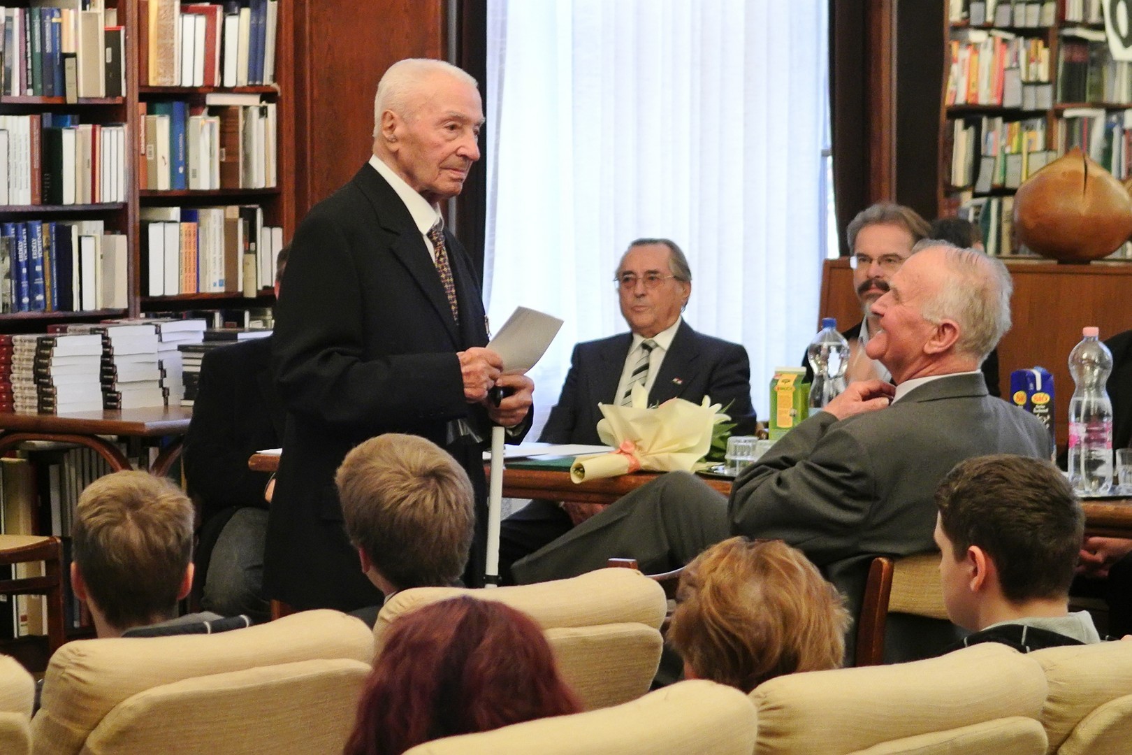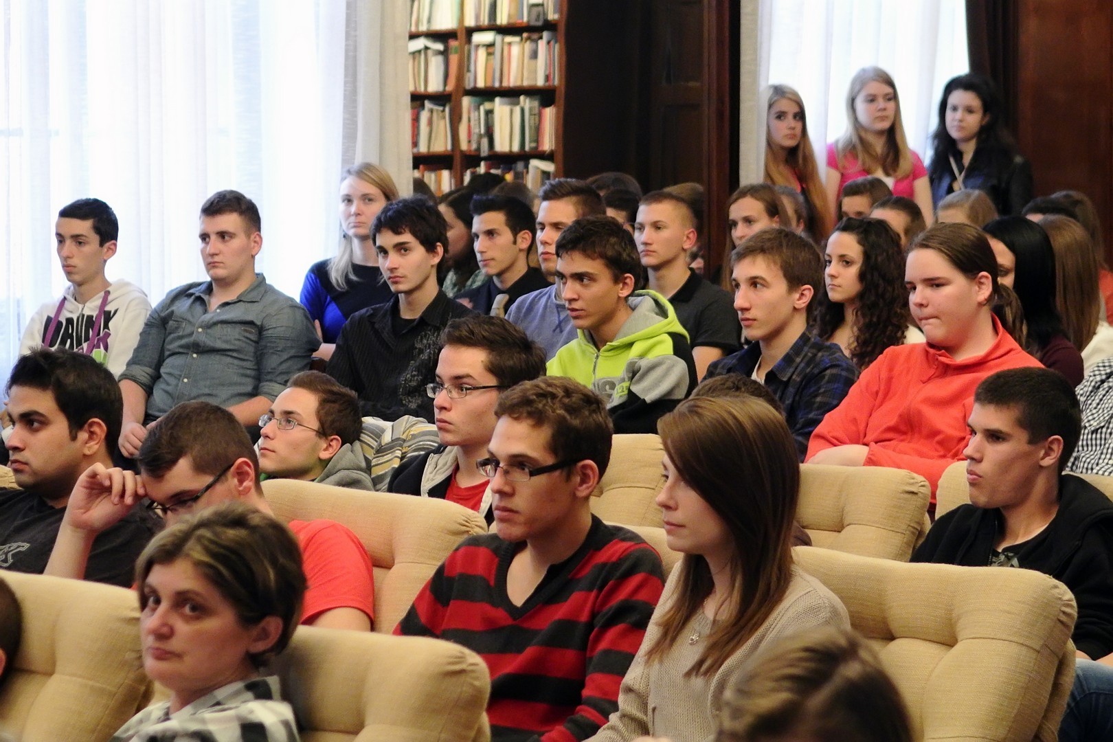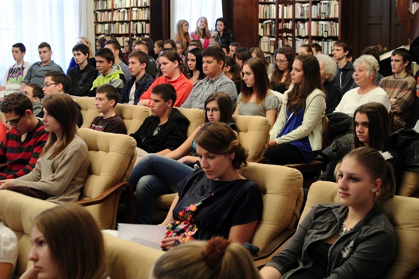 A jelenlévőket a bibliotéka nevében Dézsi János köszöntötte. A könyvtárigazgató diákéveit felidézve arról az időszakról beszélt, amikor a történelemkönyvekben még hamis színben tüntették fel az 1956-os eseményeket. Hozzátette: intézményük néhány éve élénken foglalkozik azzal a gondolattal, hogy rendhagyó történelemórák keretében biztosít lehetőséget a diákoknak ismereteik bővítésére.