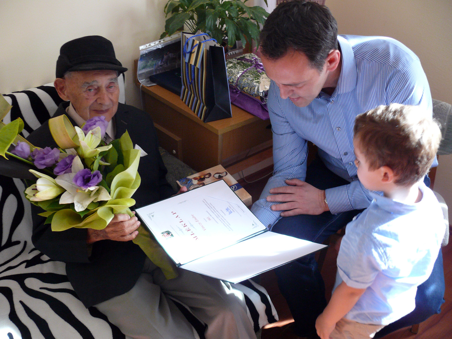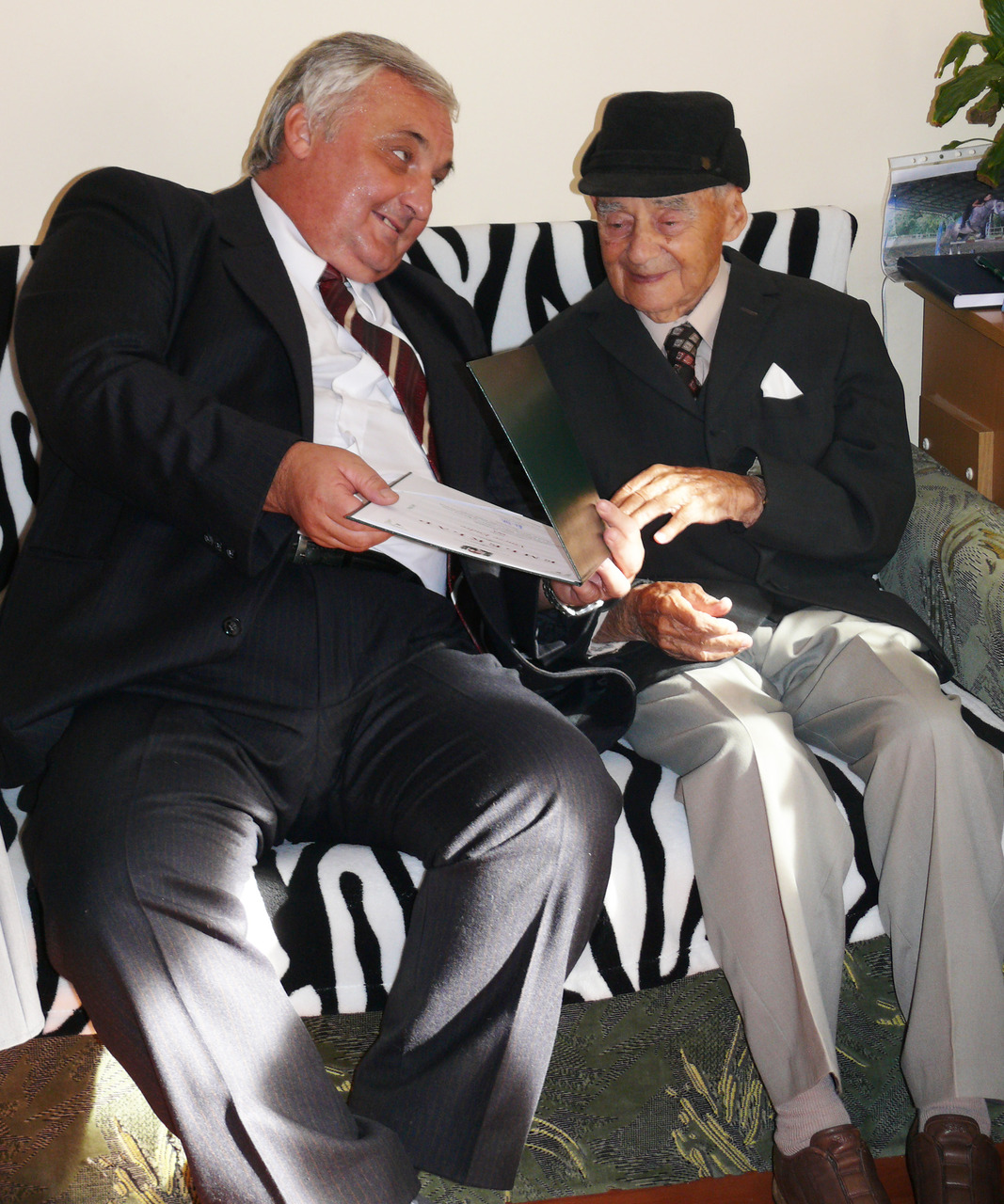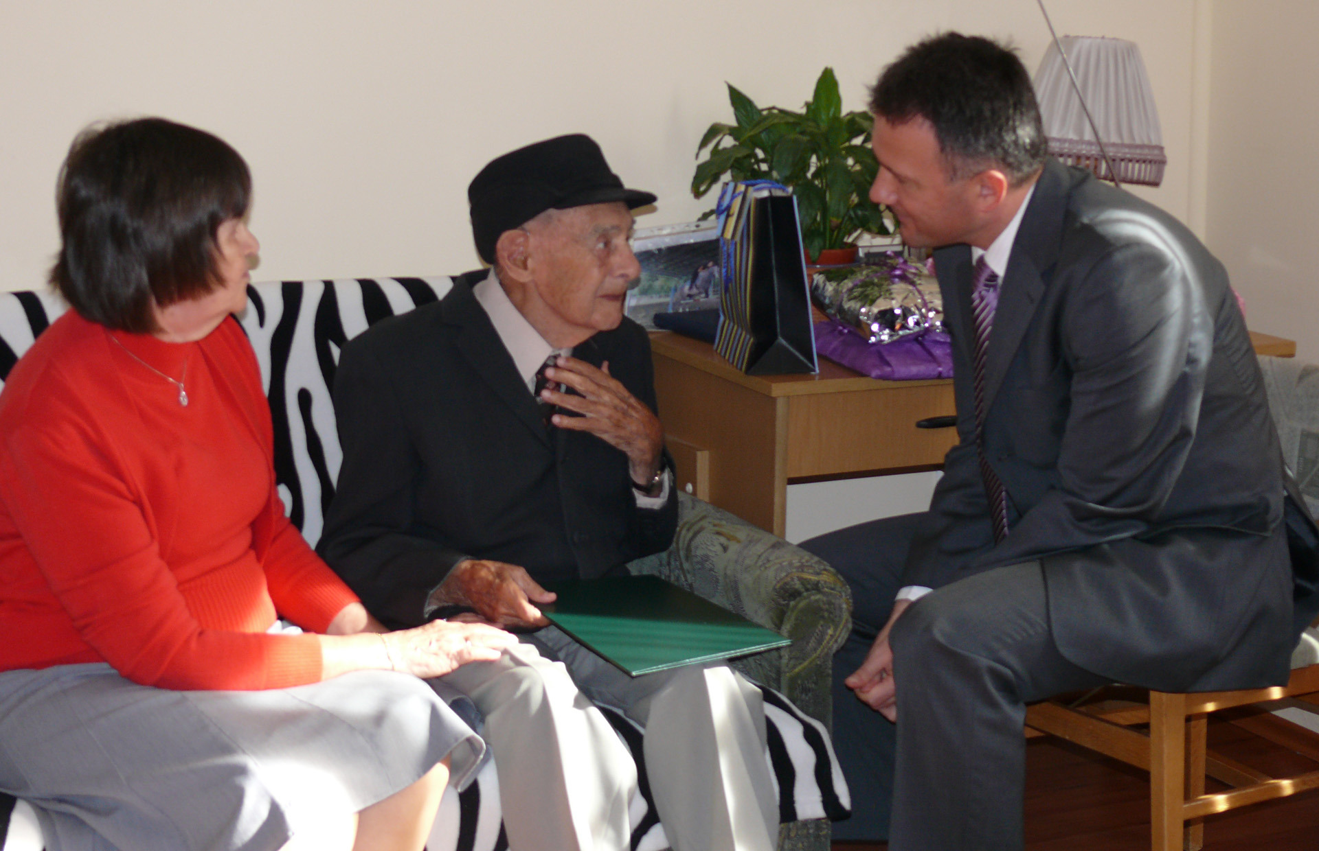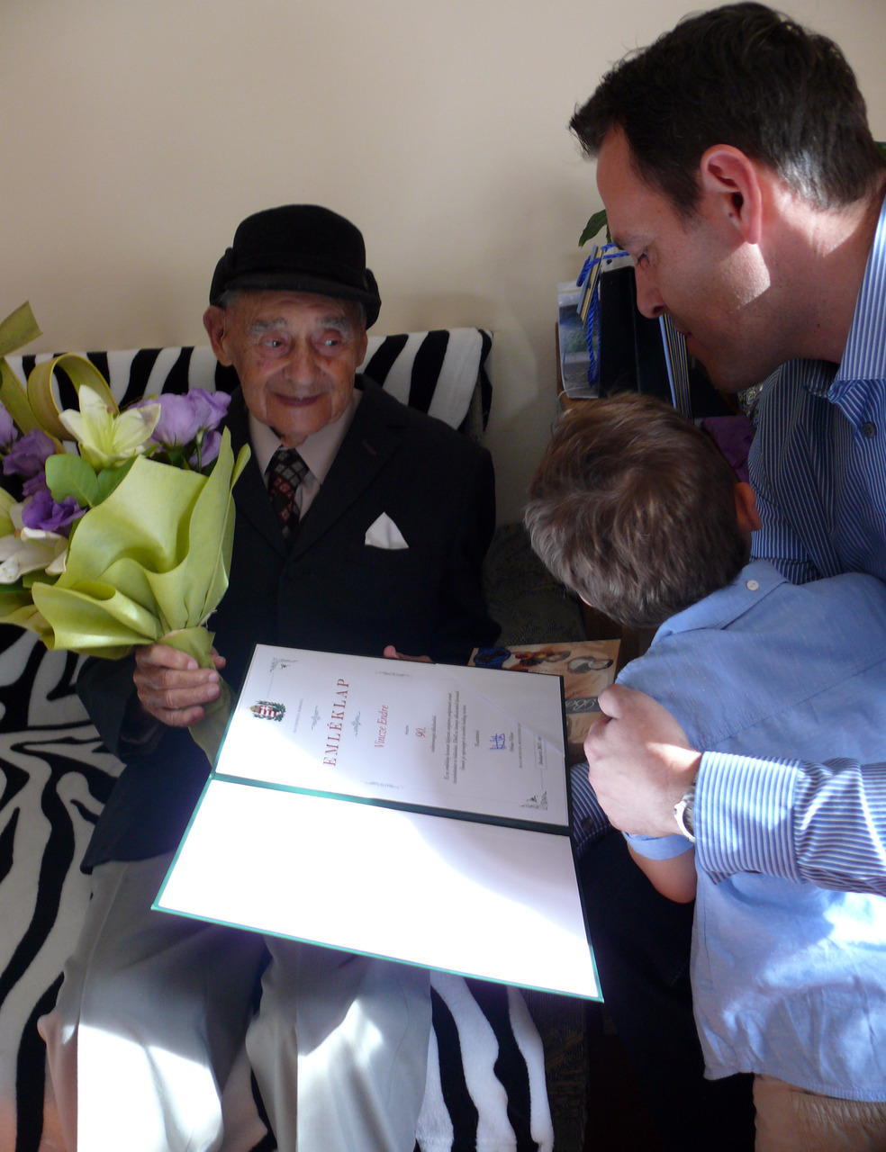 A sok sport és a még több szavalás, a versek szeretete a hosszú élet titka - vallja Vincze Endre, aki október 25-én ünnepelte 90. születésnapját. A szép kort megért bácsit ma délelőtt Gyula Város Önkormányzata nevében dr. Görgényi Ernő polgármester és dr. Varga Erzsébet aljegyző köszöntötte. A családi körben ünneplő Endre bácsi élete szép kilátásokkal indult. Édesapja nagy szegénységbe született, de jó esze és jó szervezőképessége hozzásegítette, hogy megalapozza két fia jövőjét. Bár 1950-ben Endre bácsi motorbalesetben súlyos lábsérülést szenvedett és az akkori politikai rendszer gyakorlatilag leírta sérülése miatt. A természetében rejlő életkedvet azonban nem tudták elvenni tőle. Akkor már megszületett két gyermeke, akiket – a lehetőségekhez képest – jó körülmények között sikerült felnevelni.