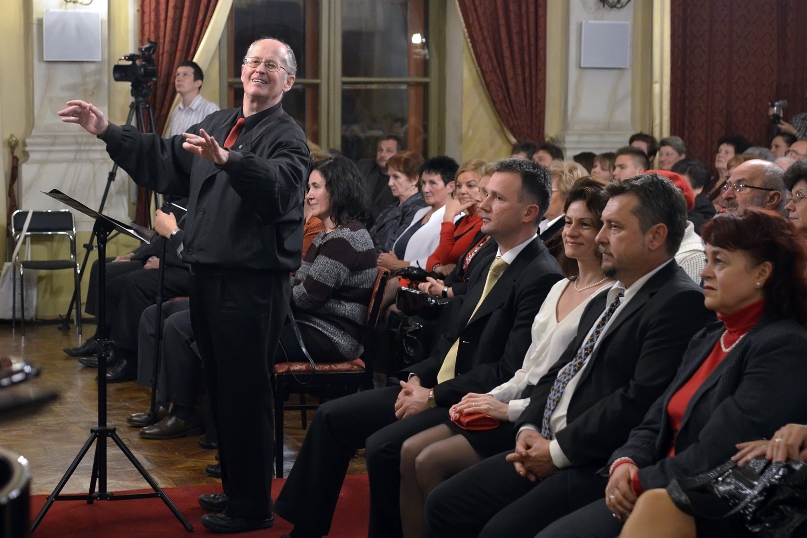 Házigazdaként dr. Petróczky István, a kórus egyesületének elnöke köszöntötte a hallgatóságot. Beszédében az elmúlt esztendőket, a külföldi és hazai koncerteket idézte fel, a kedves menyegzői énekeket, a svájci tájakat, hegyeket, az erdélyi szívszorító élményeket, a neves személyiségeket, illetve a velük való közös fellépéseket, valamint a vidám hangulatú utazásokat, a szakmai és baráti kapcsolatokat, találkozásokat és a közönség megtisztelő érdeklődését emlegette.