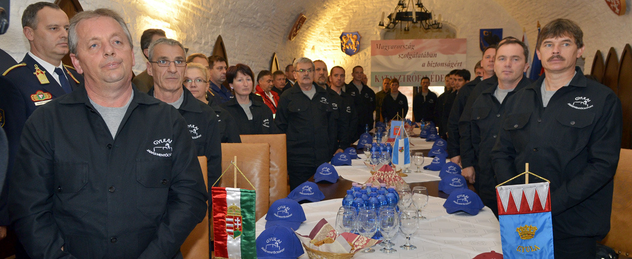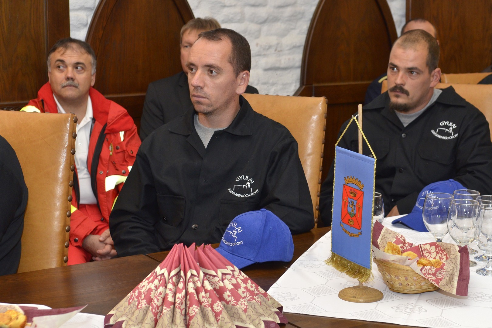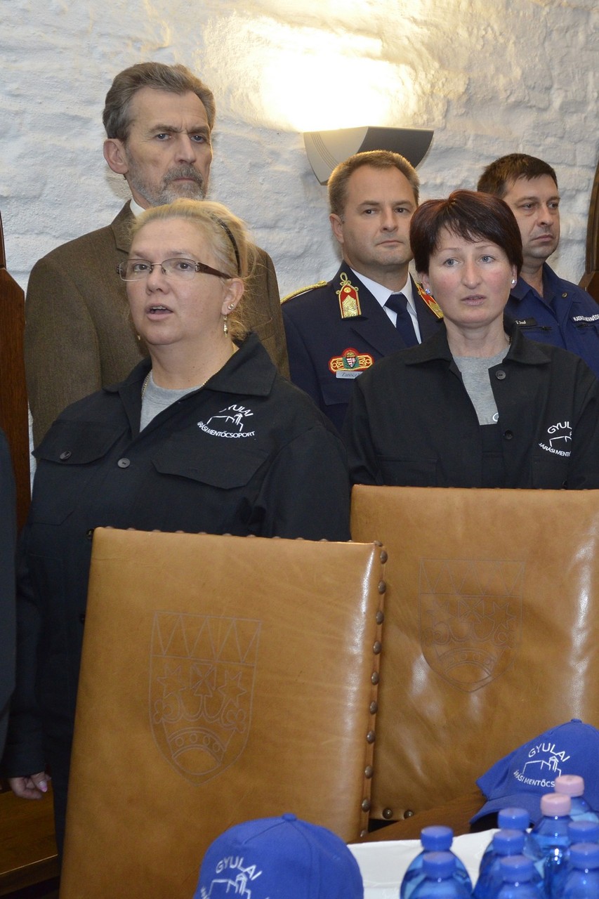 Dr. Lukácsi Krisztina, a Gyulai Járási Hivatal vezetője ismertette a 30 tagú csoport névsorát, majd Felföldi Sándor, a Gyulai Járási Mentőcsoport parancsnokának vezetésével a tagok hivatalosan letették az esküt. A procedúrát Kovács Péter katolikus esperes plébános és Baráth János református lelkész áldása zárta.