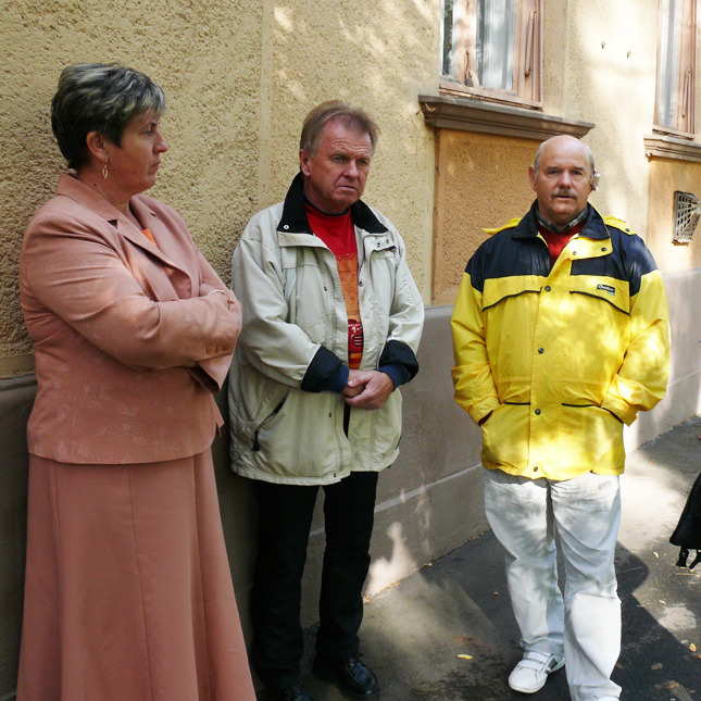 Galuska Józsefné, az ipartestület elnöke, Csőke Péter alelnök és Werner György, az elnökség és a szervező bizottság tagja a Dobay utcai székház előtt közös sajtótájékoztató keretében ismertette a tervezett programot.