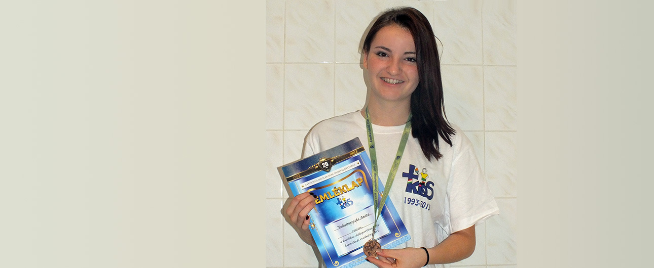 Iskolánk is büszkélkedhet ilyen tanulóval. Ő Volosinovszki Anita úszó, aki immár 12. éve iskolánk tanulója, és általános iskolás kora óta aktív résztvevője a KIDS úszóversenyeinek. Számos értékes helyezéssel tért haza ezekről a versenyekről. A 2011/2012-es tanévben tagja volt a Máltán megrendezett FISEC-en (Katolikus Iskolák Világjátéka) szereplő magyar csapatnak. Két 1., egy 2., és egy 5. helyezéssel a magyar csapat legeredményesebb versenyzője lett. Eredményeit a KIDS elnöksége emlékéremmel és oklevéllel díjazta. Iskolánk büszke tanítványára! Gratulálunk Anita!
