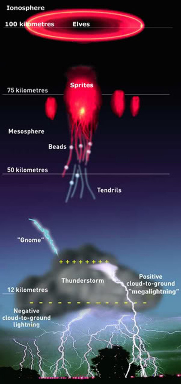 A viharjelenségek másik kísérői a vörös lidércek lehetnek. Ezek nem a felhő alatt alakulnak ki, hanem éppen ellenkezőleg, mintegy 30-40 km-es magasságokban. Nevükben a vörös jelző arra utal, hogy ha szabad szemmel látnánk őket, akkor főleg vöröses színben tündökölnének, de valójában erre nagyon kicsi az esély, hiszen ezek a lidércek kevesebb mint egy másodpecig léteznek, ráadásul közvetlenül egy-egy átlagon felüli villámkisülést követően jönnek létre. Méreteiket tekintve tekintélyt parancsolóak, szélességük meghaladhatja az 50 km-t is, míg magasságuk esetenként 60 km-es tartományt is átfoghat. Hivatalosan 1989 óta ismerjük őket és az egyre kifinomultabb megfigyelőeszközök és a megfigyelések növekvő száma rámutatott arra, hogy szembetűnően változatos jelenségcsoportot alkotnak: oszlop, répa, gondolócsont, medúza, fa, stb. 2007 óta az MTA soproni Geodéziai és Geofizikai Kutatóintézet is folyamatosan vizsgálja és felvételeket készítenek a vörös lidércekről. Az első magyarországi lidérceket 2007. augusztus 10-én éjszaka rögzítették, majd 2011. június 23-án a Balatonnál mintegy 100 km távolságból több lidércet is meg lehetett figyelni és megörökíteni. Azon a napon egy hidegfront vonult át hazánk felett, melynek előterében helyenként heves zivatarok alakultak ki.