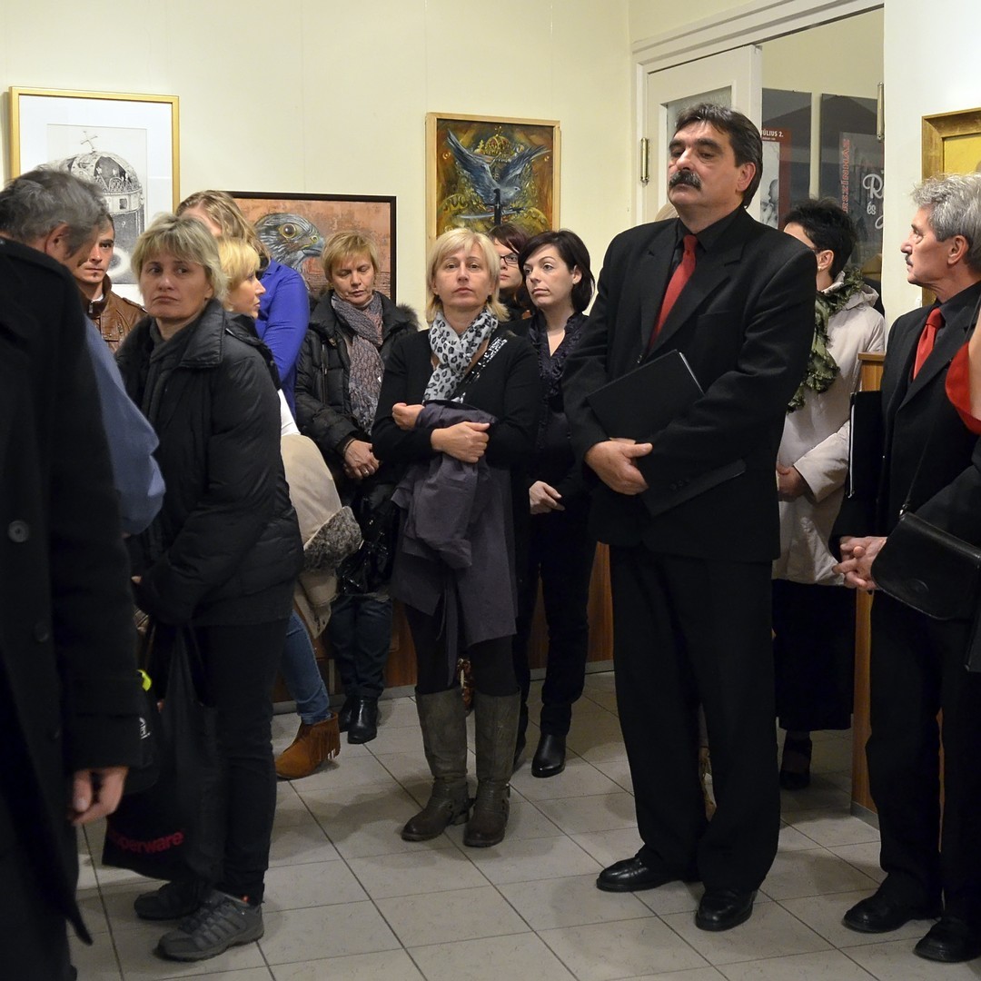 - Állam- és vallásalapító királyunk halálának 975. évfordulóját írjuk. István király halálát követően Szent László ajánlásával, 930 évvel ezelőtt, 1083-ban avatták szentté. Nem akármilyen csoportos kiállítás ez, a 20 kortárs képzőművész művei az egyetemességre való törekvés jegyében fogantak. A Szent István király ihlette vizuális képélményeket látni, és nem csak nézni kell. Képzeljük el magunkat az örök emberi élet előcsarnokában, ahol a magyar lelkek érzelmei a kortárs művészek révén valójában egy keleti nép nyugati kultúráját tükrözik. Vagyunk, megvagyunk. István, vagy László király késői leszármazottjaként, Béla apánk fiaként, magyarnak születve, és az ősi magyar szokás szerint megkeresztelve. Vagyunk István továbbvitele, az élet kötése magunkhoz és másokhoz, a jelenhez, a múlthoz és a jövőhöz. Vajk, azaz István király adta nekünk a keresztény hitet, a Szent Koronát, az eszmét, az egységet és a nemzeti tudatot. István király későbbi leszármazottai vagyunk. Lehetünk bárhol, Erdélyben, a Fel- vagy a Délvidéken, mi hozzá tartozunk. Mondom én, akibe ezt az érzést belenevelték még gyerekként. Serdülő gyerekek voltunk a testvéremmel, amikor a hideg éjszakában, hogy lábaink ne fagyjanak meg, újságpapírba tekertük azokat. Így tudtunk csak elmenni az éjféli misére, azokban a cipőkben, amelyek az egyik évben még nagyok, a másik évben már kicsik voltak. Dacoltunk a faggyal, az elnéző tiltással, és elmentünk a templomba. Hideg, nagyon hideg volt. Az Ige és az áldás apáról fiúra szállt. Tudtuk, amit István király hagyott ránk: magyarok vagyunk, és van egy istenünk! Ami akkor, az életünkben megjelent, az itt, a képekben is kifejezésre jut – mondta megnyitó beszédében dr. Párducz László.
