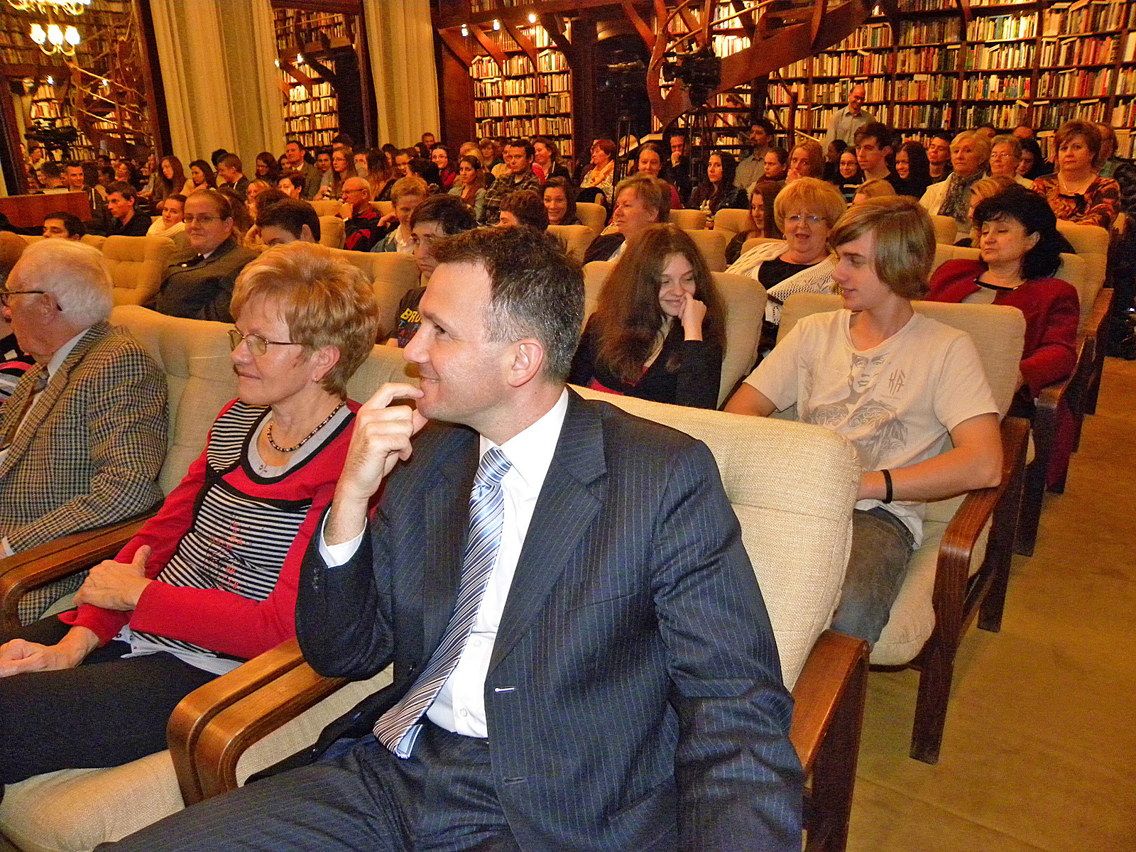 A kétnapos rendezvény megnyitójának régi-új helyszín adott otthont, hiszen a Mogyoróssy János Városi Könyvtár olvasóterme tavaly december óta a költő nevét viseli. Míg a hallgatóság elfoglalta helyét, a teremben Vitray Tamás Simonyi Imrével készített riportfilmjének kockái peregtek egy kivetítőn.