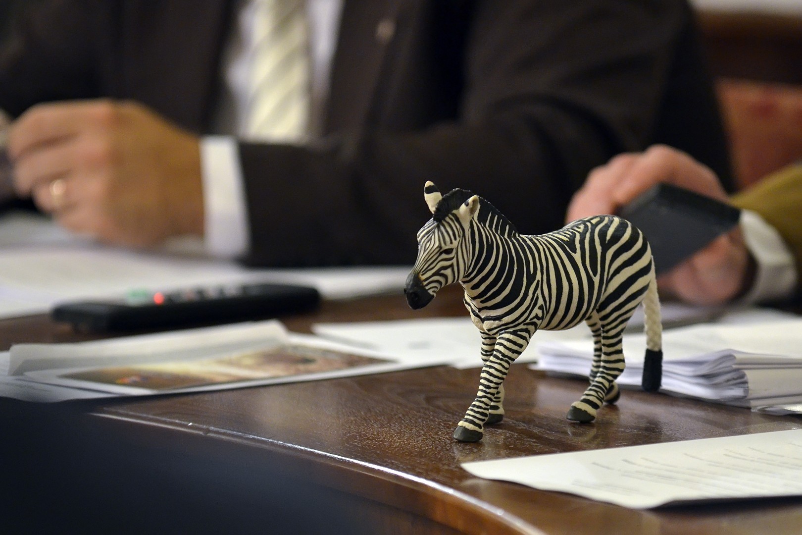 Balogh Lajos (Kisgazda Polgári Egyesület) a „Miért végez fércmunkát a Magyar Közút Nonprofit Zrt. Gyulán?” címet adta első interpellációjának. A képviselő idén augusztusban a médián keresztül szólította fel a céget a Dobozi–Csókos–Kerecsényi–Madách út kereszteződésében elkopott gyalogos-átkelőhely felfestésére. Akkor egy plüsszebrával demonstrált a képviselő, ezúttal pedig egy gumizebrával jelezte, hogy „bizonyos dolgok hiányoznak az utakról”. Balogh Lajos hosszasan sorolta, hogy mely forgalmas utakon tapasztalhatók még hiányosságok, majd arra is felhívta a figyelmet, hogy a Gyulai Közüzemi Kft. kezelésében lévő utakról nem hiányoznak a szükséges jelek. A képviselő arra a kérdésre várt választ, hogy az állami cég miért nem hangolja össze munkavégzését a városi a céggel, valamint azt is tudni szerette volna, hogy a zrt. miért nem végzi el a munkát rendesen. A Magyar Közút Nonprofit Zrt.-től ugyan nem érkezett válasz, azonban a kérdésfelvetés – és persze a gumizebra – arra mindenképpen jó volt, hogy jó kedvre derítse a teremben ülőket.