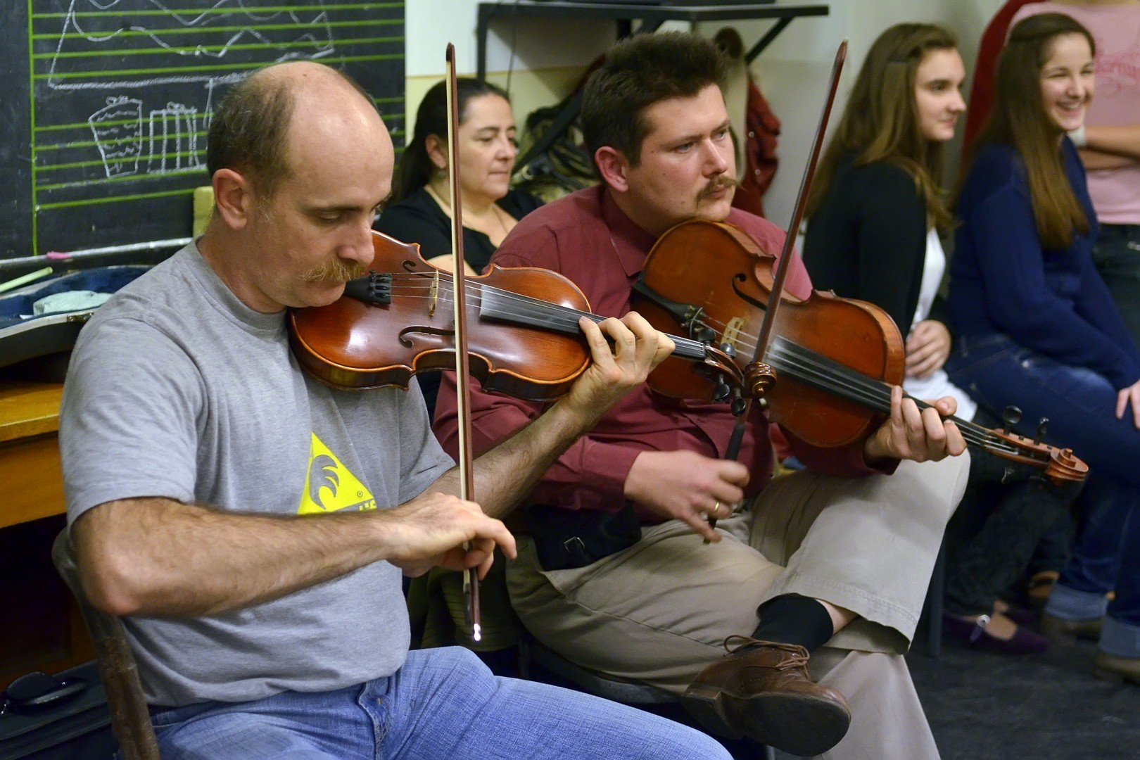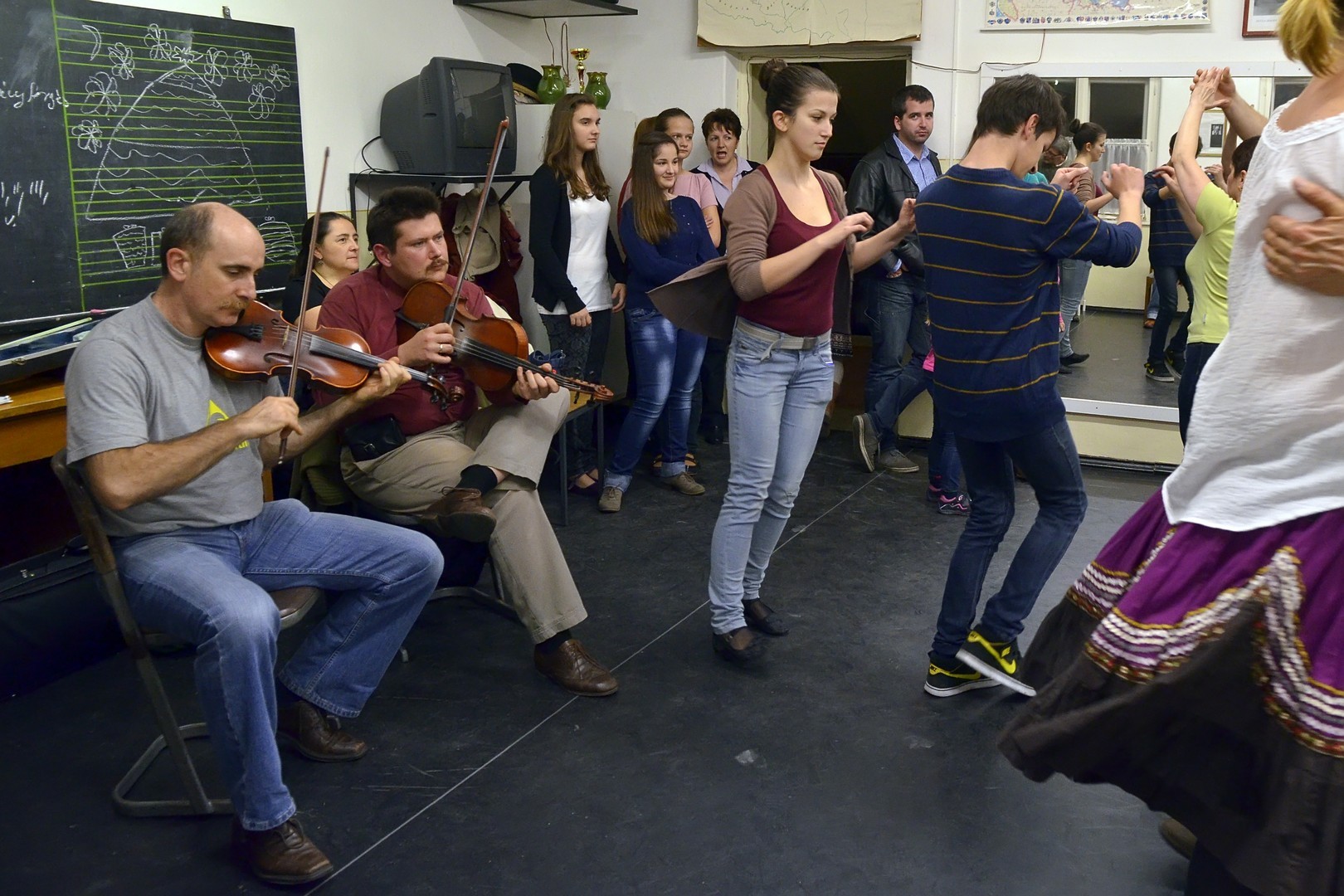 Ezúttal kalotaszegi páros táncokat, széki és mezőségi táncokat sajátíthattak el a magyar népkultúra iránt érdeklődők a Gyulai Alapfokú Közoktatási Intézmény művészeti iskolájában. A táncokat Kardos György néptáncpedagógus mutatta be a kicsiknek-nagyoknak a Vásárhelyi-teremben, a talpalávalót a Patyi Zoltán prímásból, valamint Nagy Gábor brácsásból és Csepregi András bőgősből álló – Körös Táncegyüttes bandája húzta.