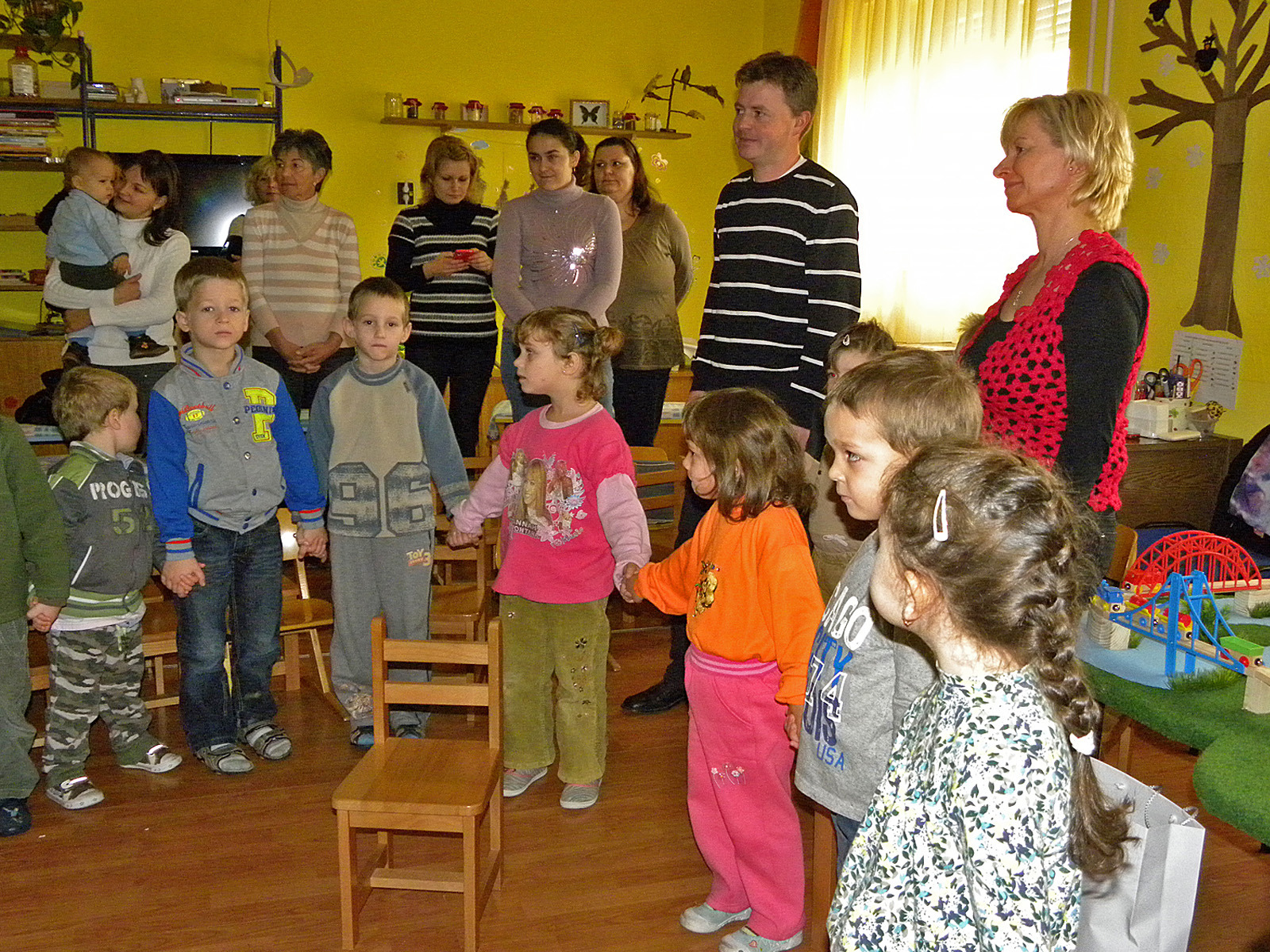 A barkácsolásra a kicsik bábelőadással hangolódtak rá. Az óvoda adventi koszorúján a tavalyi évhez hasonlóan Alt Norbert gyújtotta meg az első gyertyát. Az alpolgármester nem érkezett üres kézzel az eseményre: szaloncukorral ajándékozta meg a csemetéket.