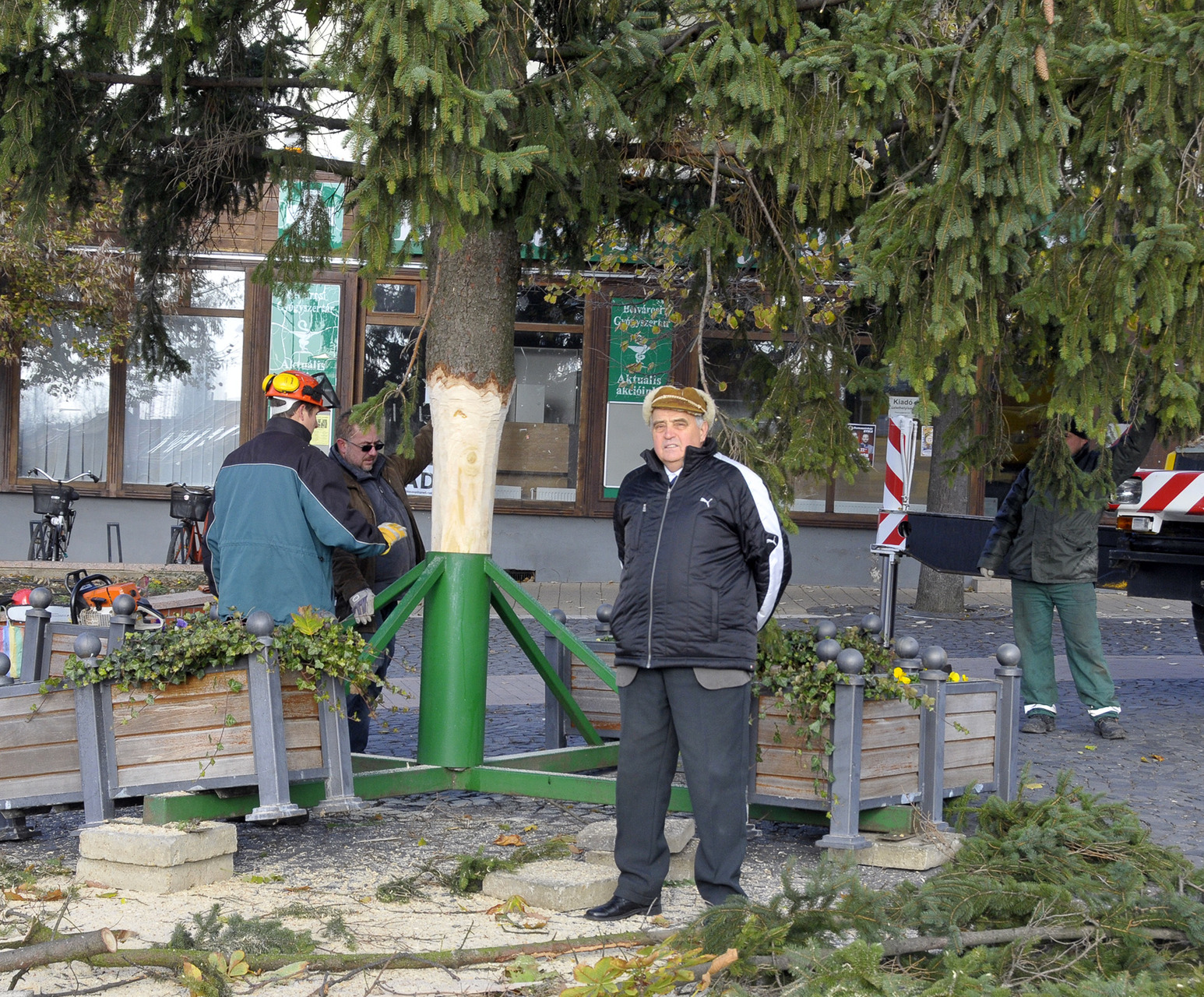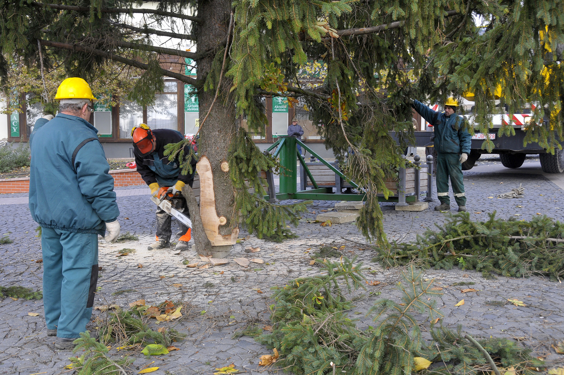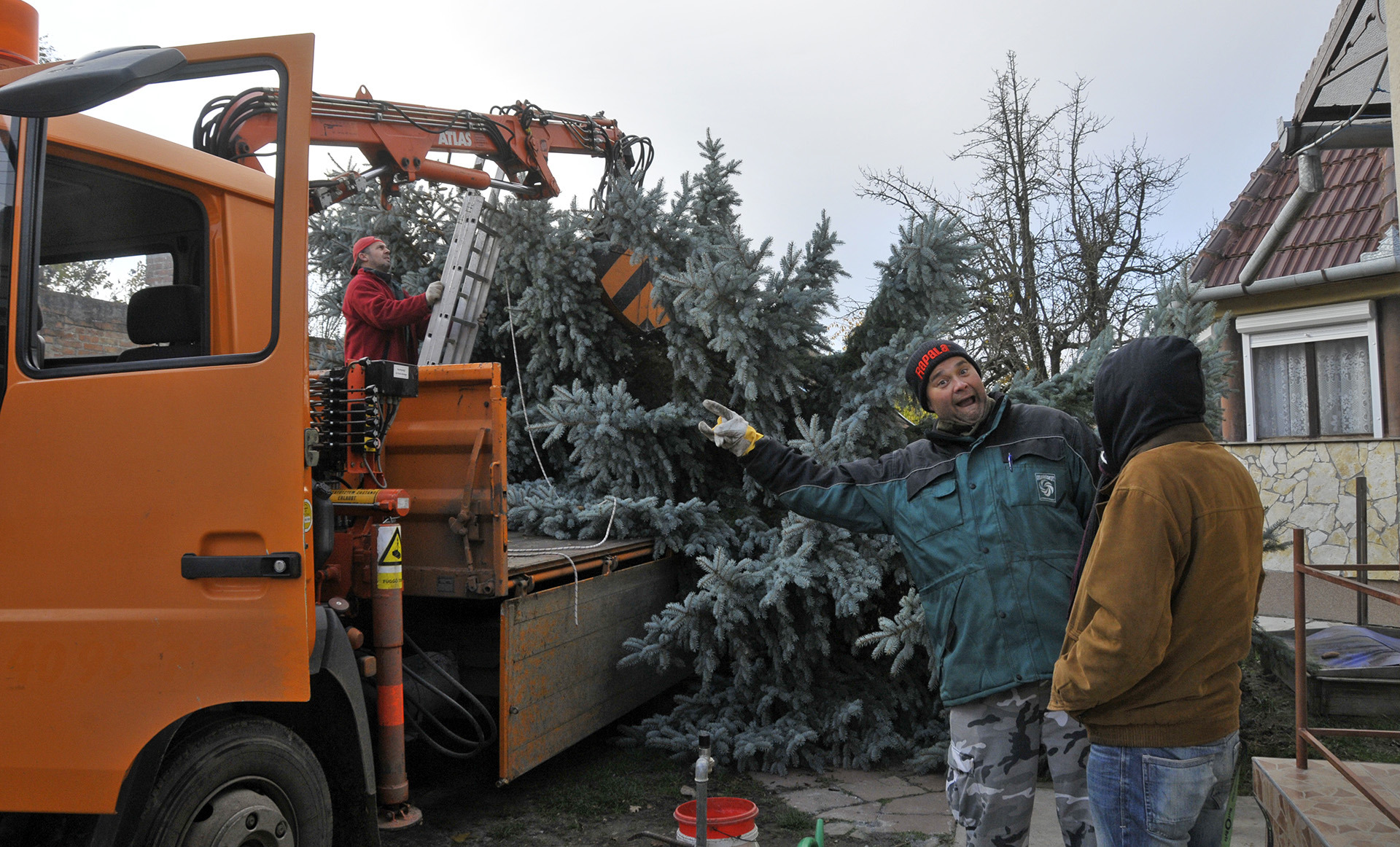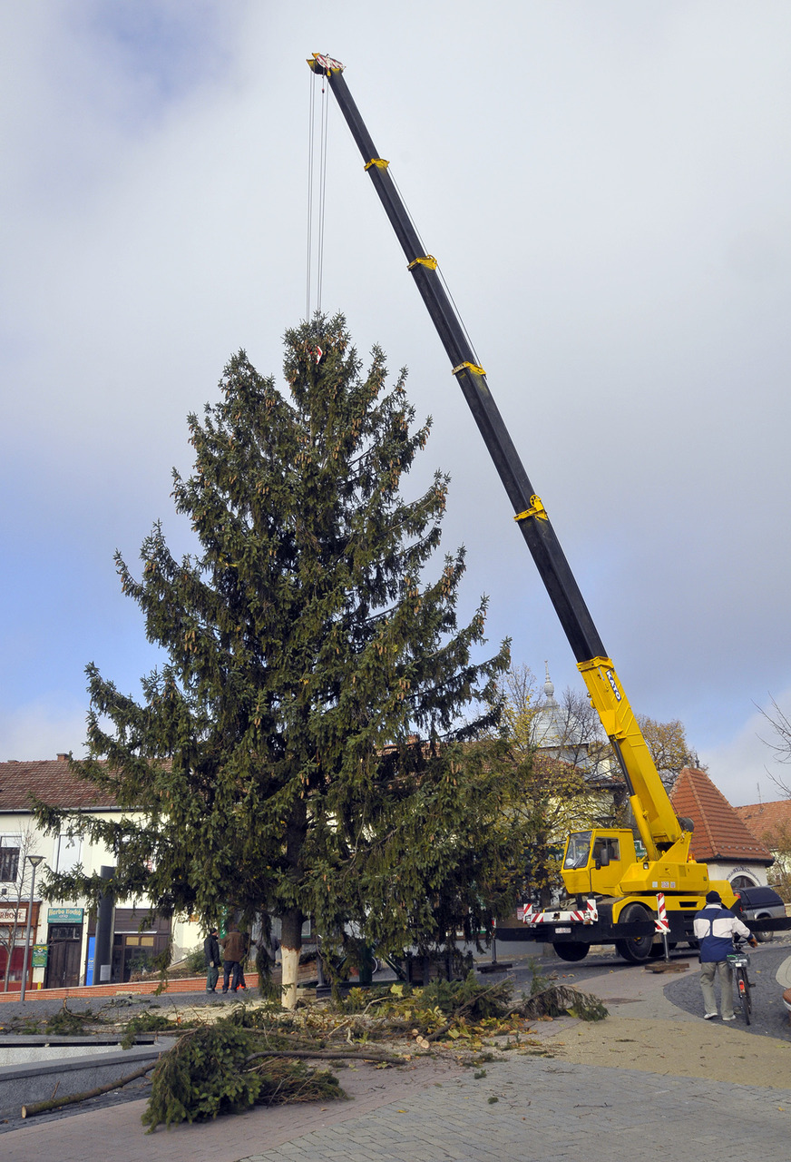 - A fenyők lakossági felajánlásból érkeztek Gyula köztereire. A Kárpát utcából származik a Harruckern téri fa, amelyet Török János jó szívvel ajánlott fel a városnak. A Kossuth térre a Pósteleki utcából hoztuk a fenyőt, amelyet a Gyulai Tanya és Kerttulajdonosok Egyesületének nevében Nyíri Mihály adományozott. A Gyep utcából Hoffman Józsefné ajándékozta meg a várost egy fával, amely az Apor térre került. A városháza dísztermébe pedig Gyulaváriból, Szentesi István „Szenya” jóvoltából jutott karácsonyfa – mondta a Gyulai Hírlapnak a helyszínen Hőgyes Elek, a munkálatok koordinátora.