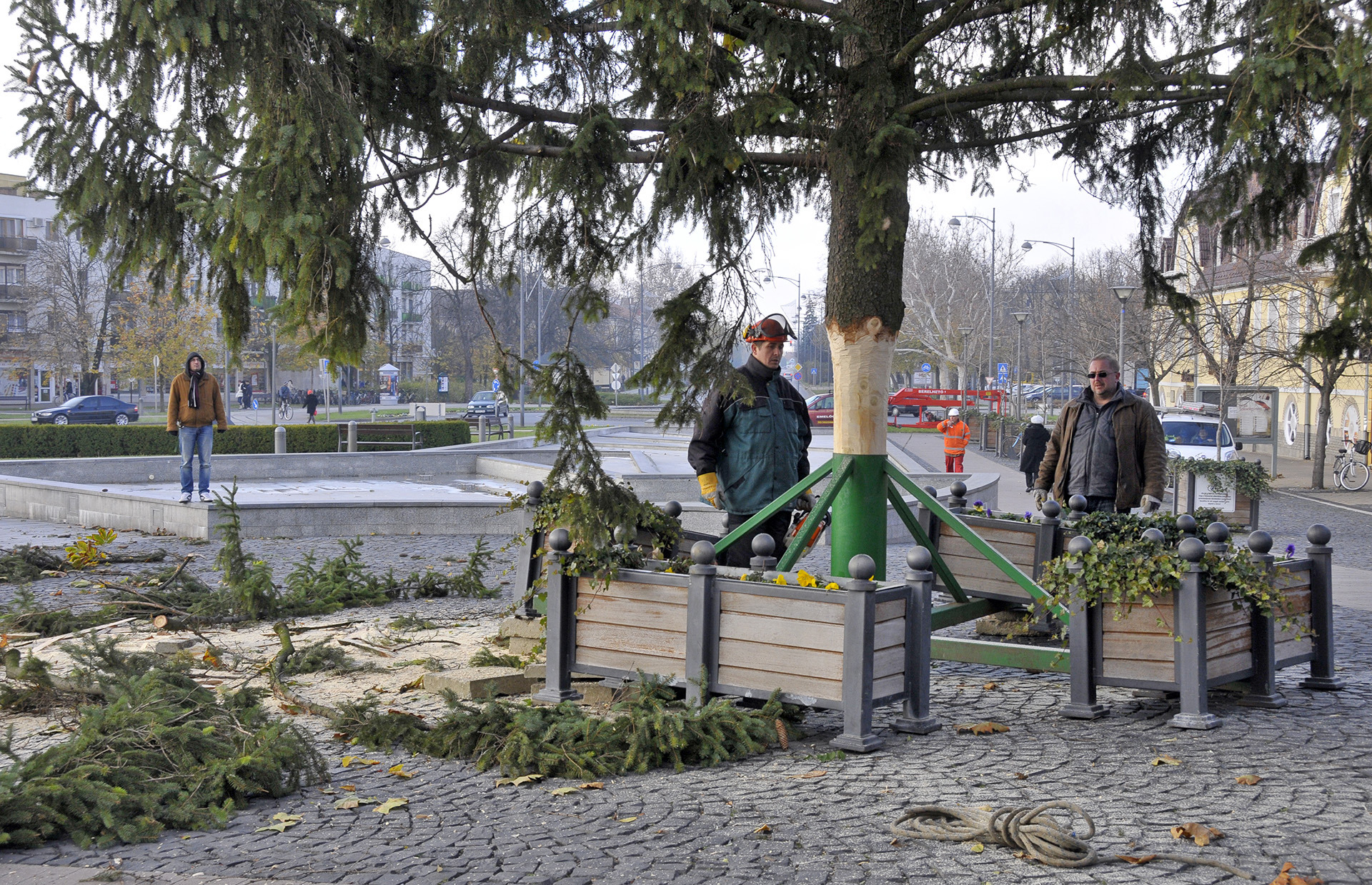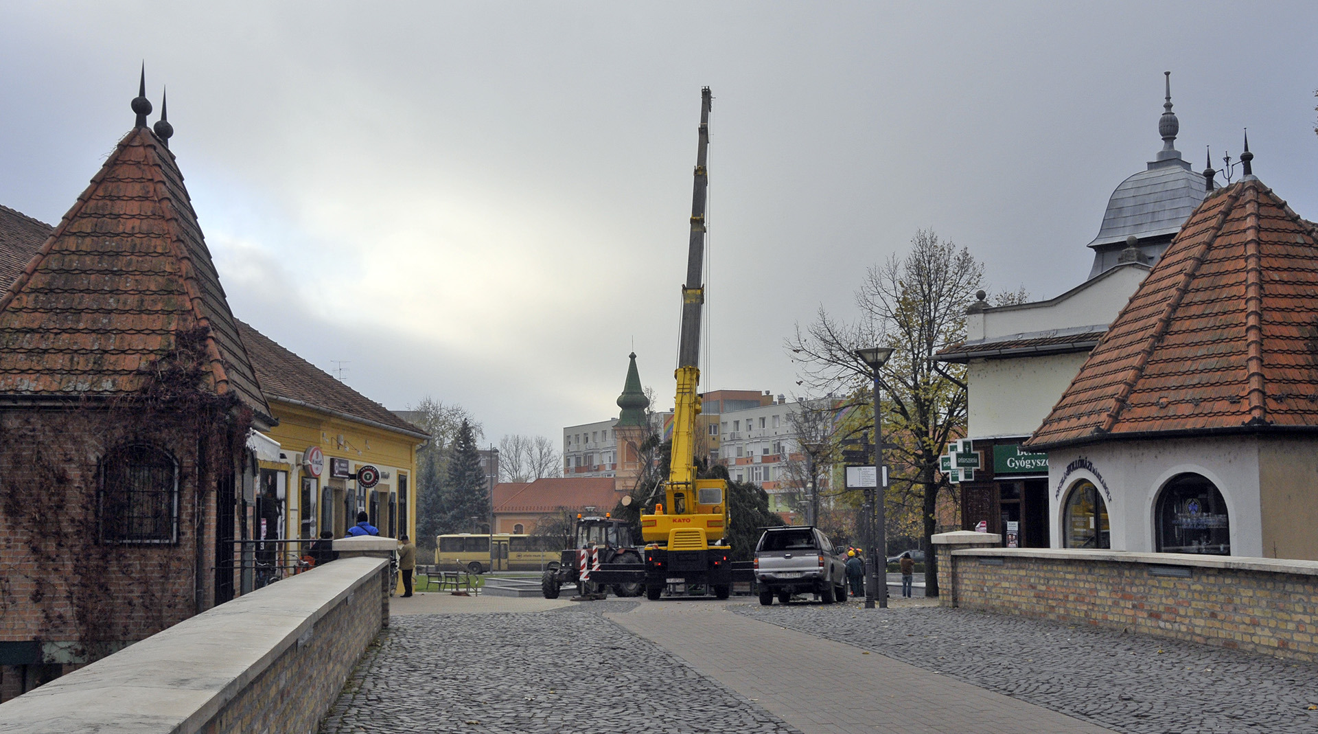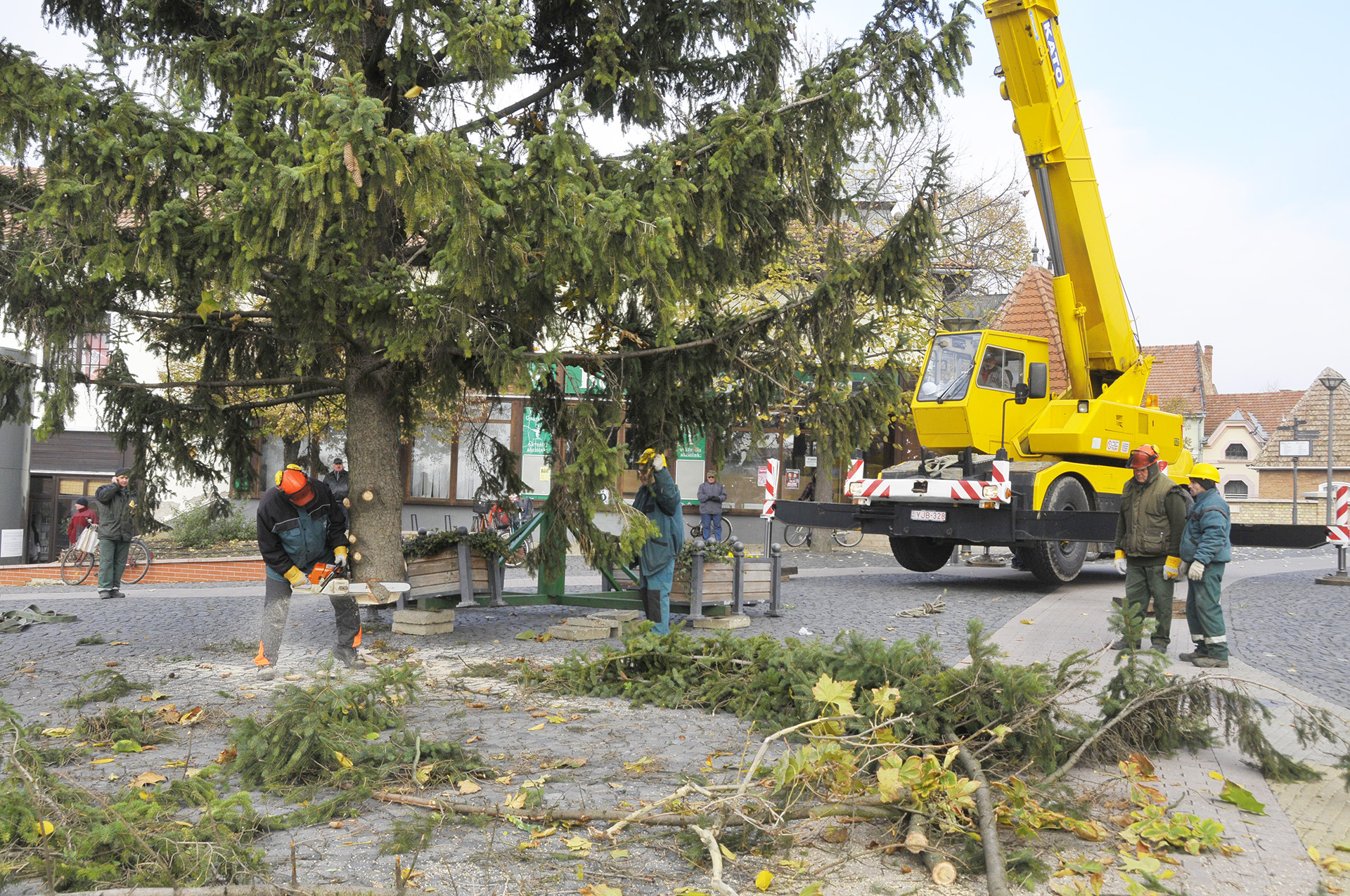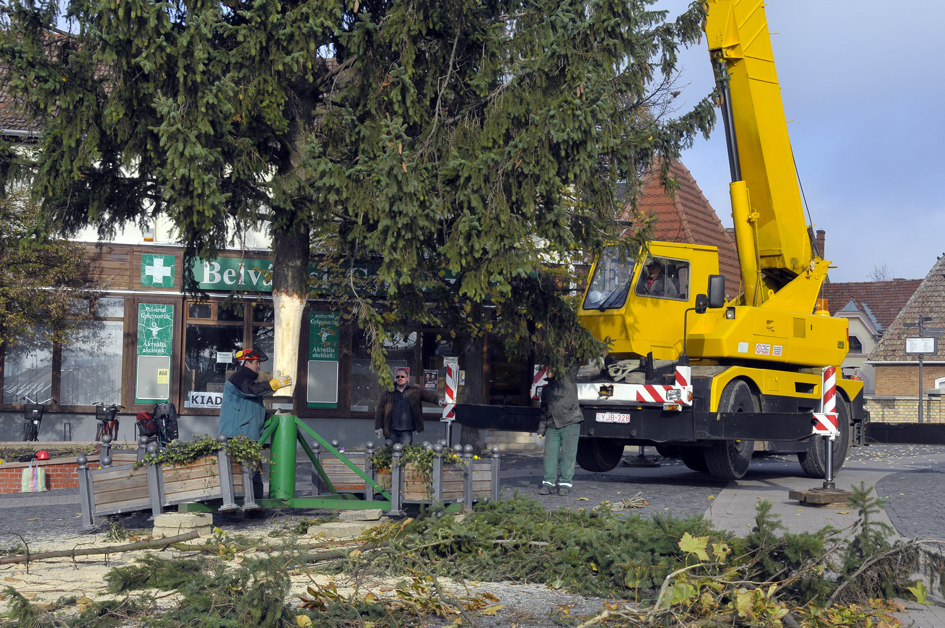 - A fenyők lakossági felajánlásból érkeztek Gyula köztereire. A Kárpát utcából származik a Harruckern téri fa, amelyet Török János jó szívvel ajánlott fel a városnak. A Kossuth térre a Pósteleki utcából hoztuk a fenyőt, amelyet a Gyulai Tanya és Kerttulajdonosok Egyesületének nevében Nyíri Mihály adományozott. A Gyep utcából Hoffman Józsefné ajándékozta meg a várost egy fával, amely az Apor térre került. A városháza dísztermébe pedig Gyulaváriból, Szentesi István „Szenya” jóvoltából jutott karácsonyfa – mondta a Gyulai Hírlapnak a helyszínen Hőgyes Elek, a munkálatok koordinátora.