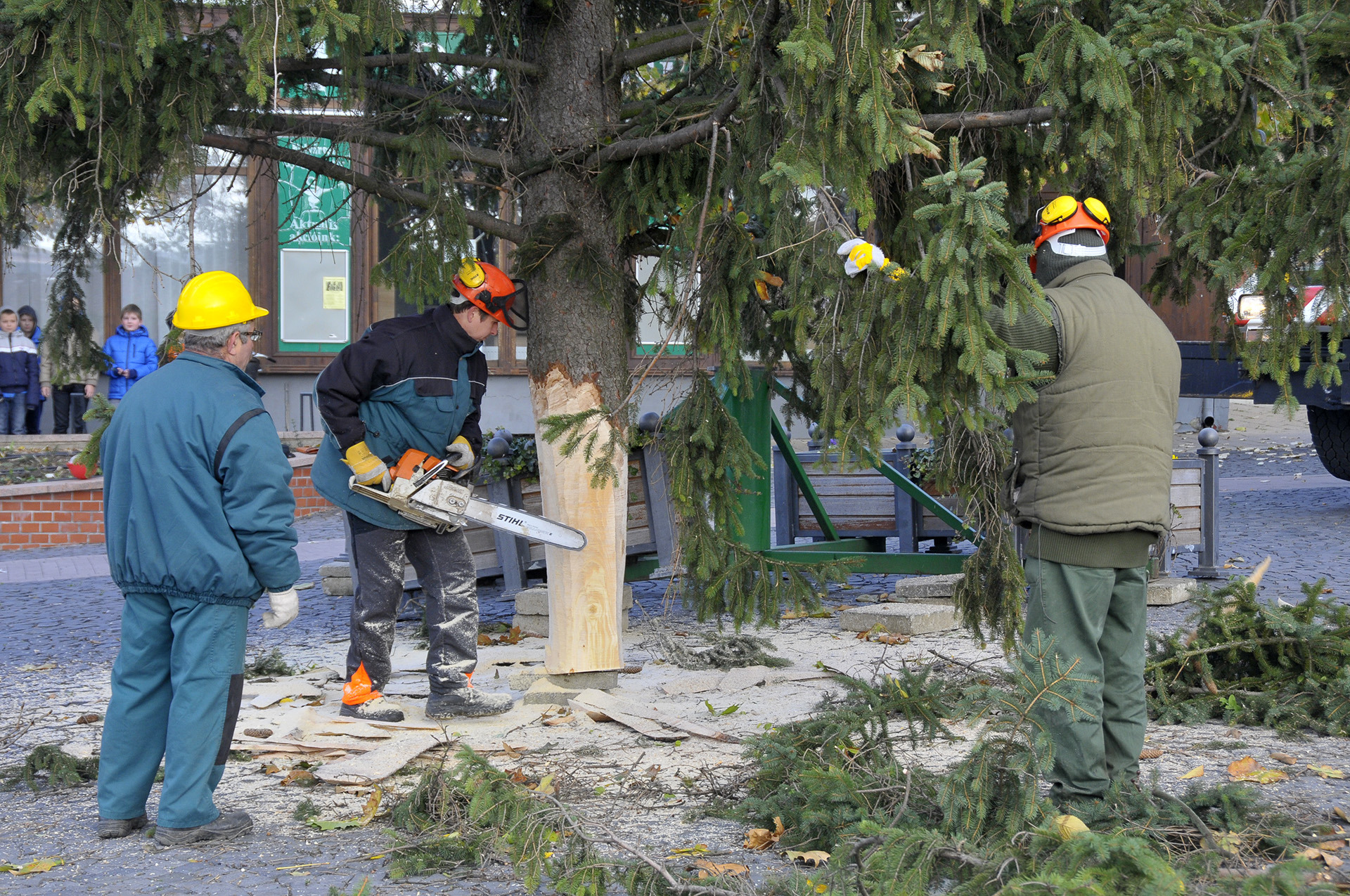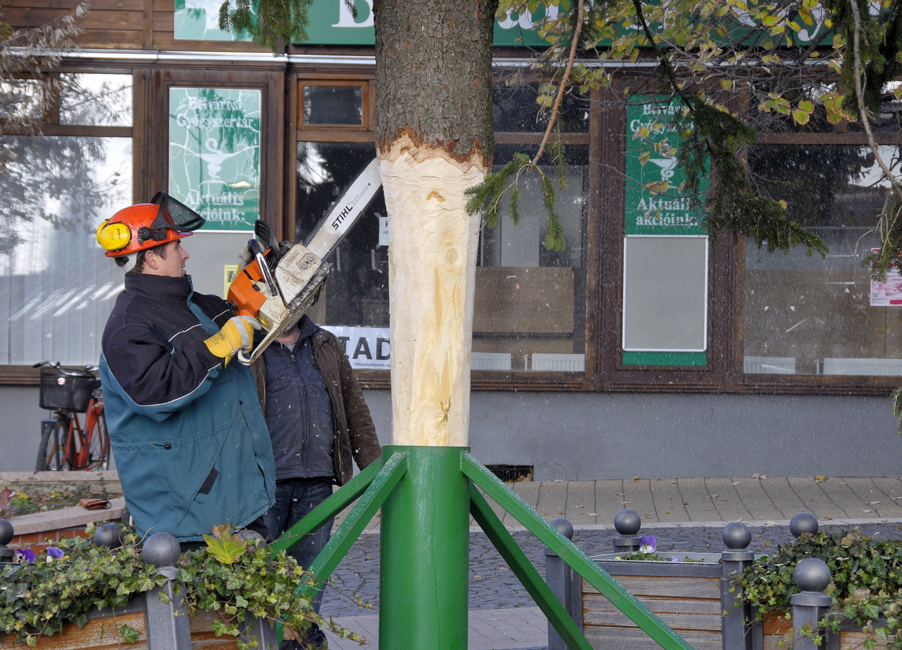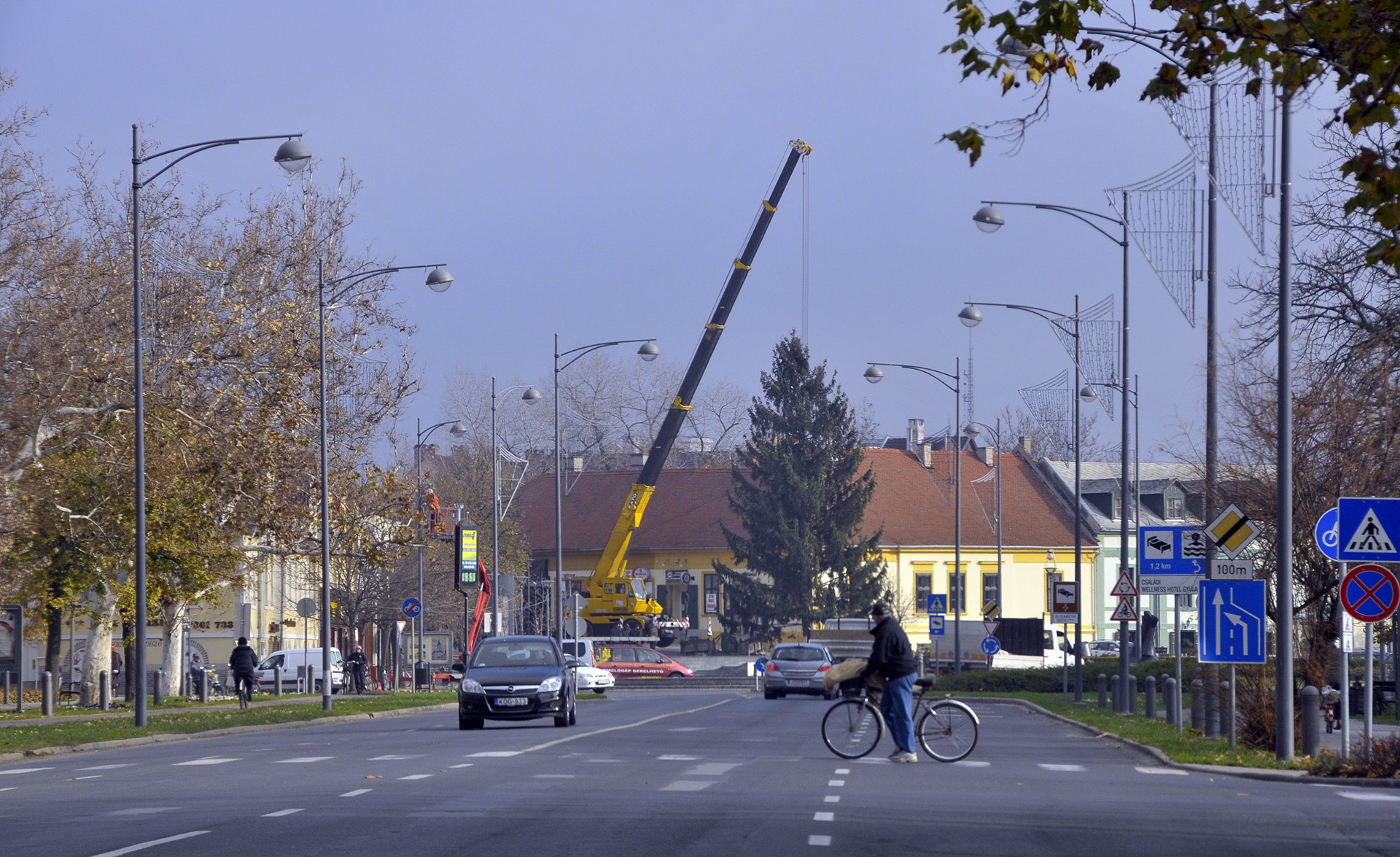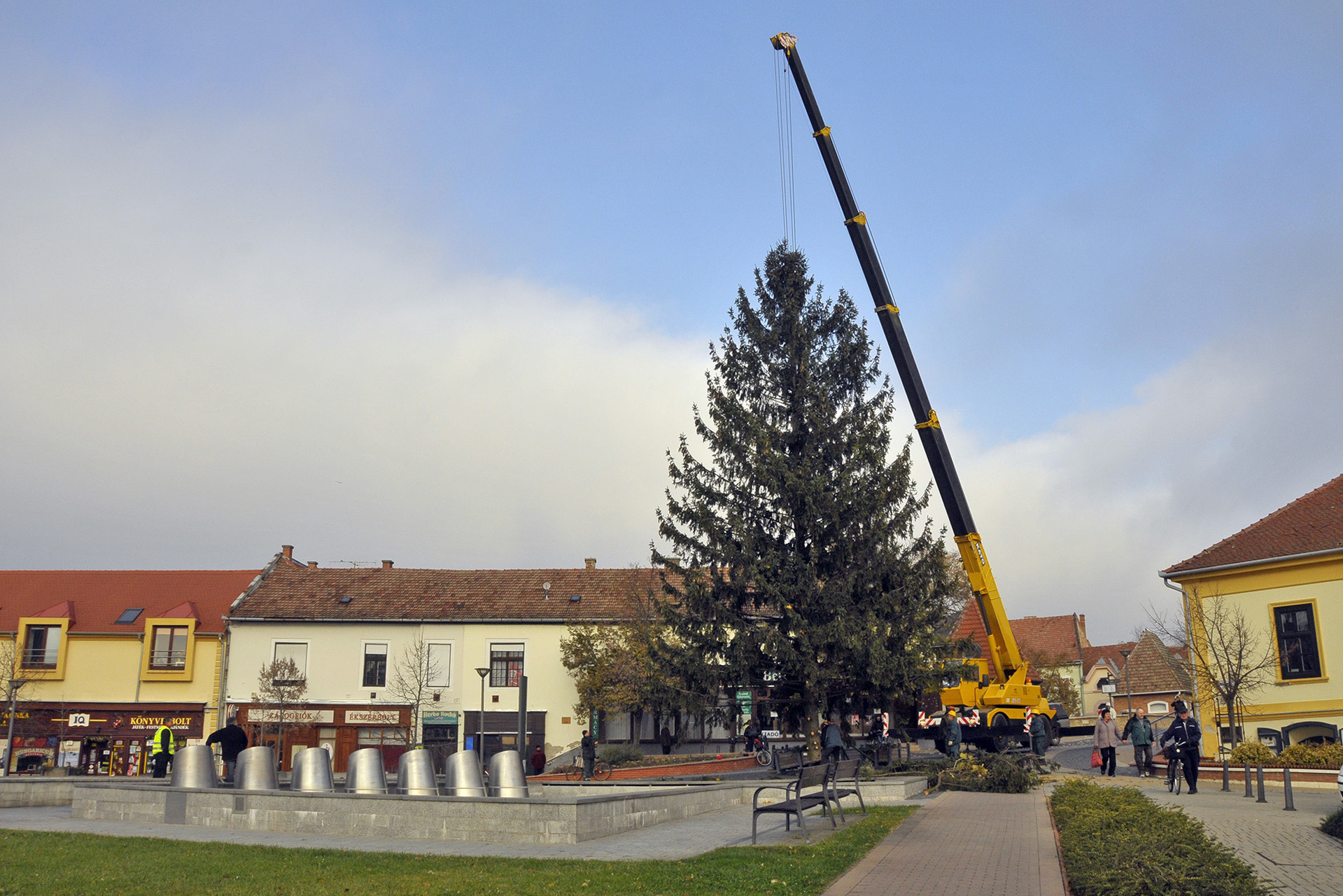 - A fenyők lakossági felajánlásból érkeztek Gyula köztereire. A Kárpát utcából származik a Harruckern téri fa, amelyet Török János jó szívvel ajánlott fel a városnak. A Kossuth térre a Pósteleki utcából hoztuk a fenyőt, amelyet a Gyulai Tanya és Kerttulajdonosok Egyesületének nevében Nyíri Mihály adományozott. A Gyep utcából Hoffman Józsefné ajándékozta meg a várost egy fával, amely az Apor térre került. A városháza dísztermébe pedig Gyulaváriból, Szentesi István „Szenya” jóvoltából jutott karácsonyfa – mondta a Gyulai Hírlapnak a helyszínen Hőgyes Elek, a munkálatok koordinátora.
