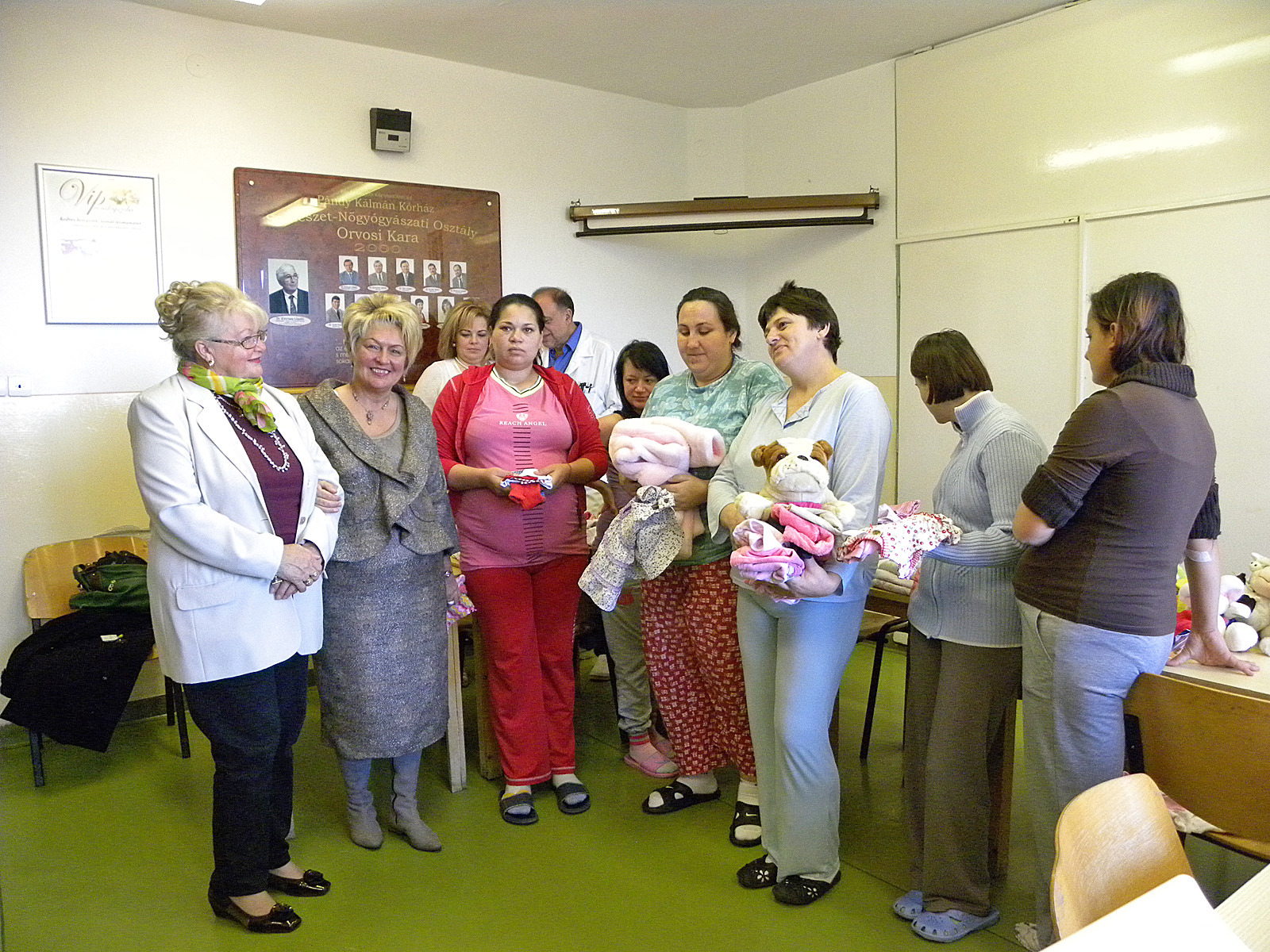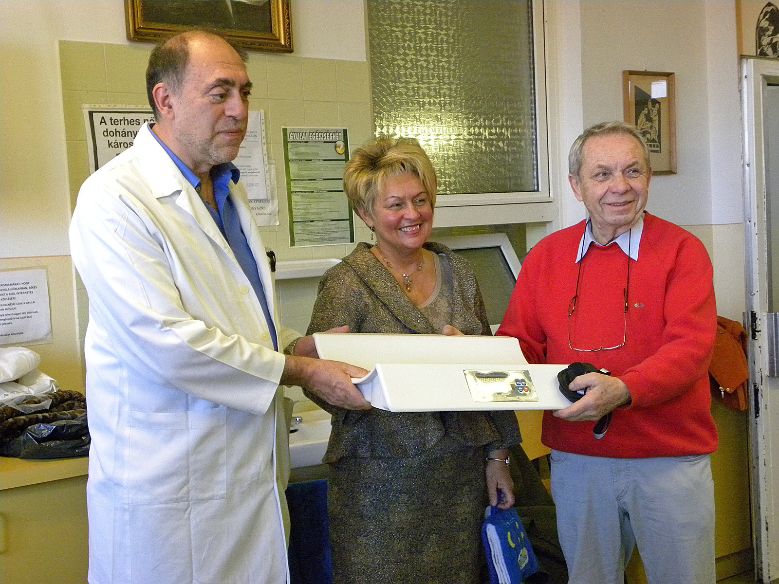 Ismét adományokkal érkezett a Békés Megyei Pándy Kálmán Kórház szülészeti és nőgyógyászati osztályára városunk kiváló polgára, Mikus Éva és díszpolgára, Gerhard Stengel. Előbbi babaruhákkal és játékokkal, utóbbi pedig édességgel lepte meg a kismamákat. A megajándékozottak sorából a kórház sem maradt ki, Gerhard Stengel ugyanis egy elektronikus babamérleget adott át dr. Párducz László osztályvezető főorvosnak.