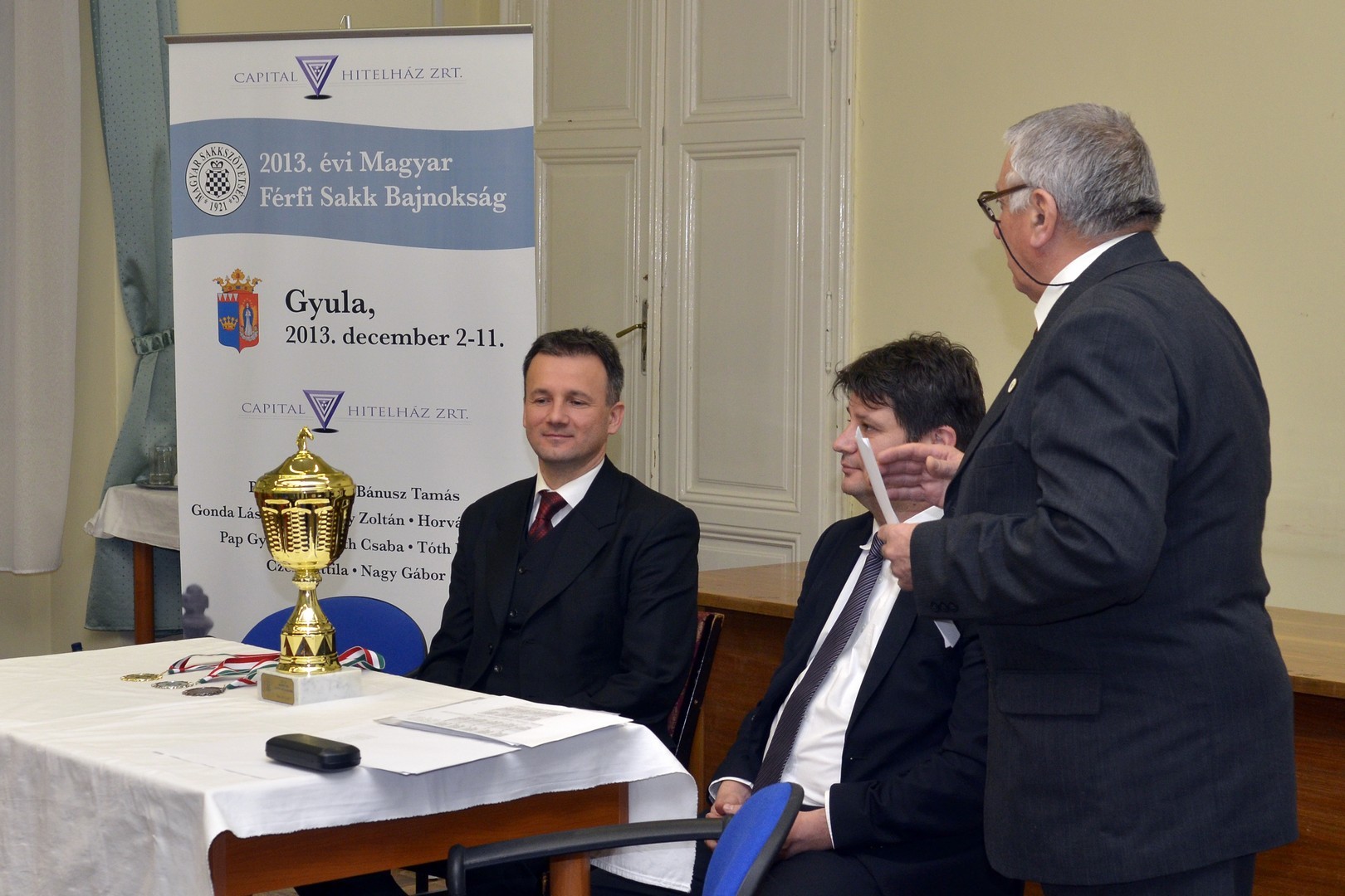 Véget ért a 63. alkalommal megrendezett férfi egyéni országos sakkbajnokság Gyulán. Az ünnepélyes eredményhirdetésen kiderült, ki nyerte idén a Magyarország legjobb sakkozója címet. A díjakat Fazekas György országos főbíró, dr. Görgényi Ernő, Gyula város polgármestere és Gajda Róbert országgyűlési képviselő adta át a bajnokság helyezettjeinek.