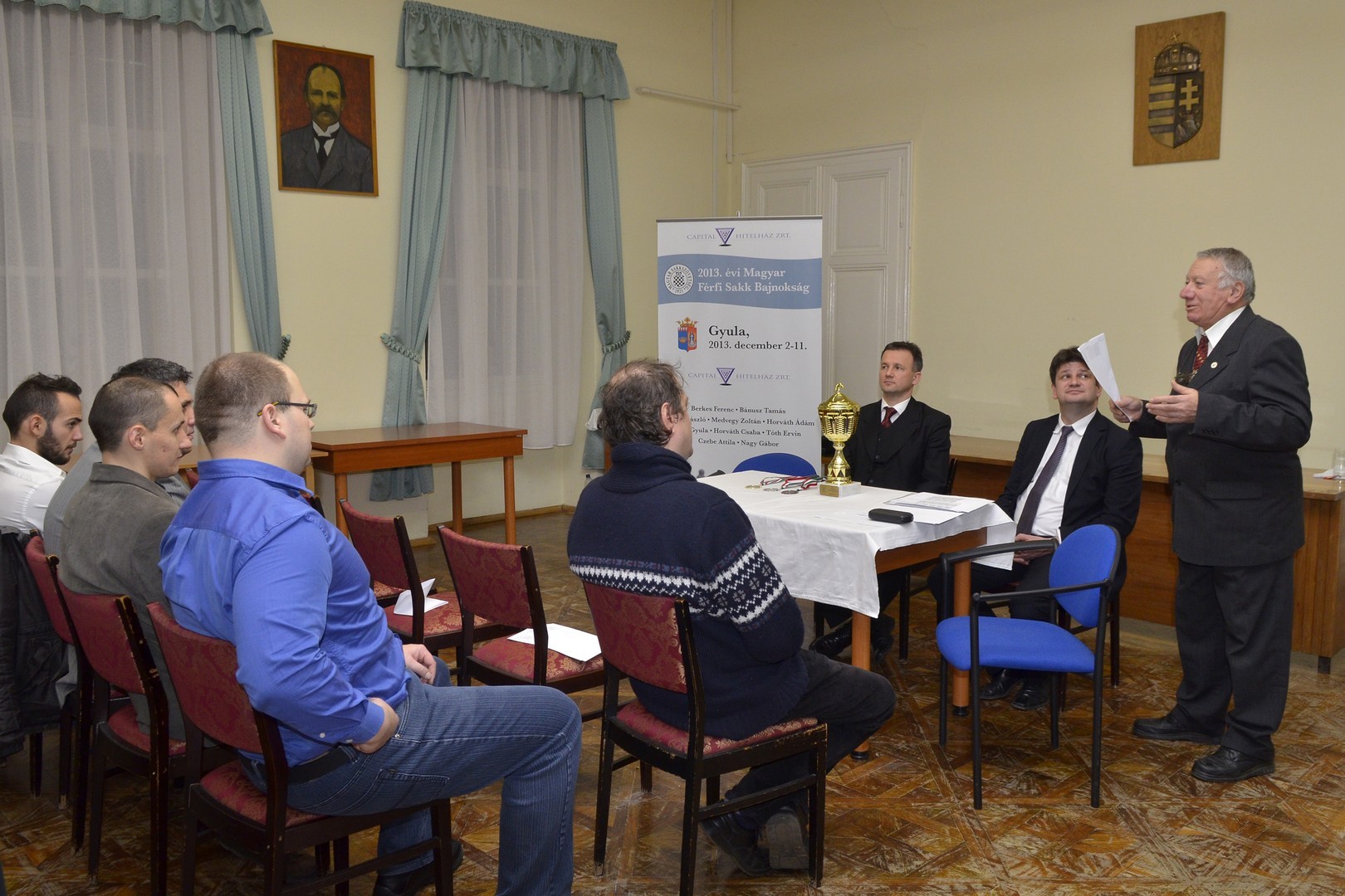 Dr. Görgényi Ernő beszédében gratulált a versenyzőknek, és megtiszteltetésnek nevezte, hogy Erkel Ferenc szülővárosa, Gyula szolgált helyszínéül a jeles sakkeseménynek.