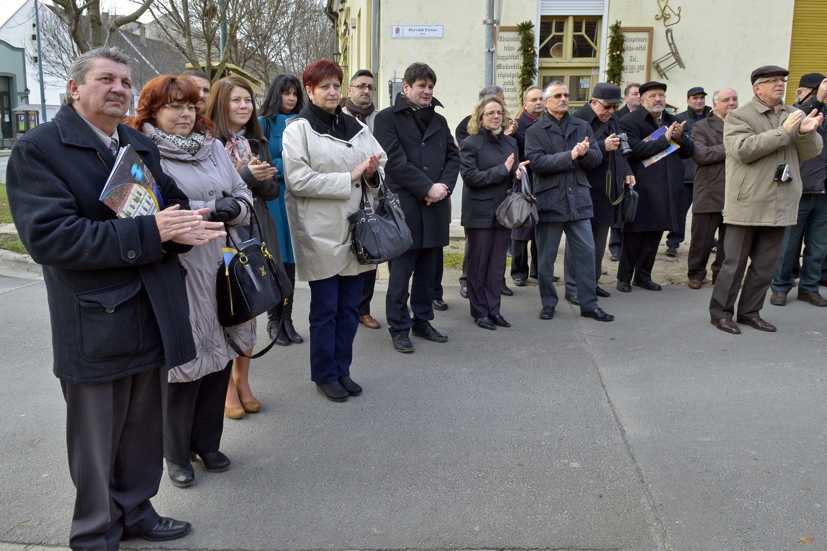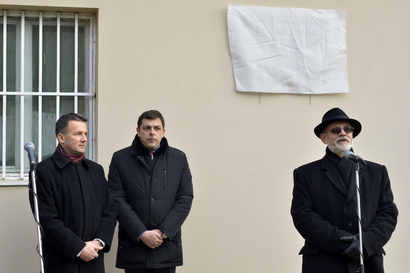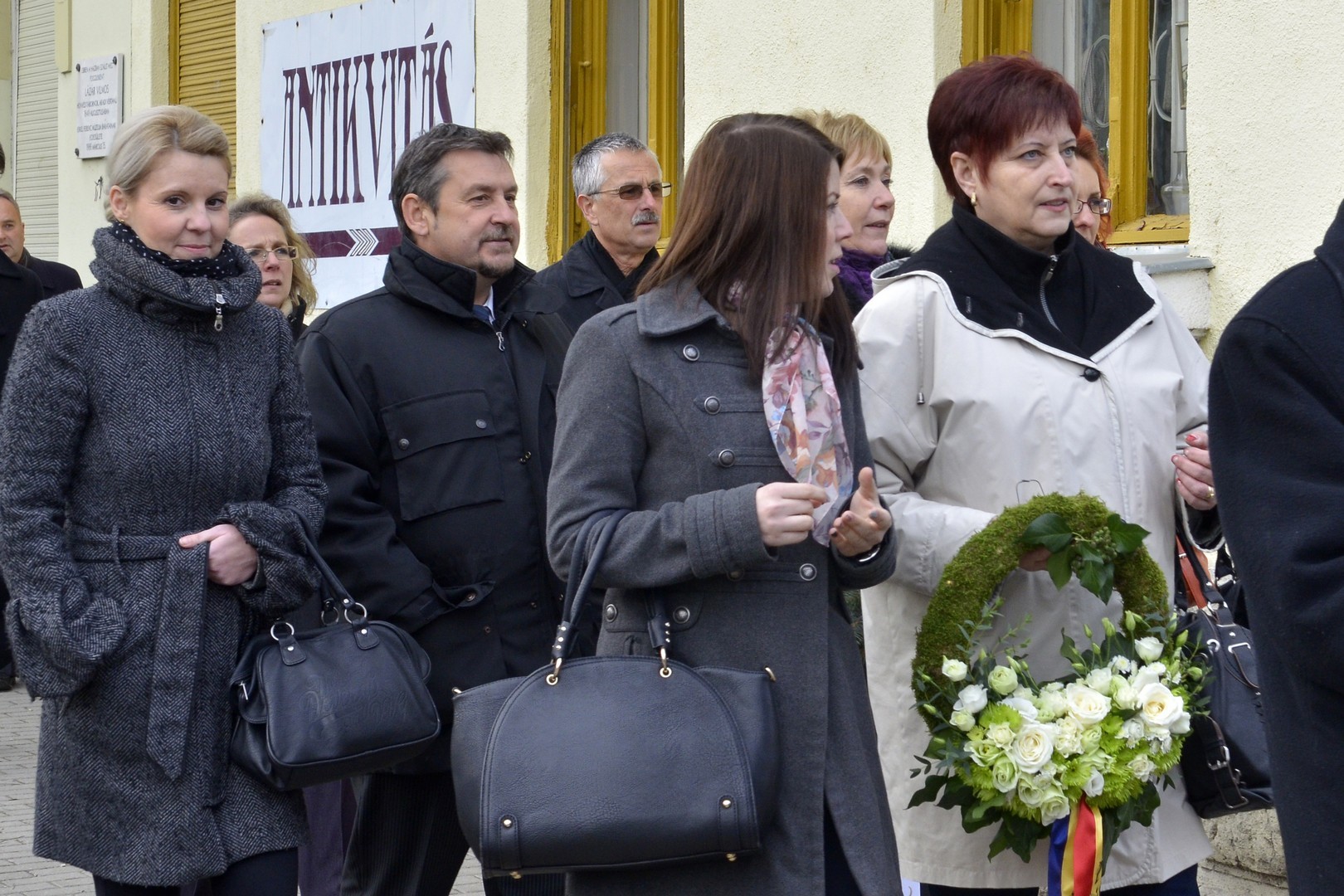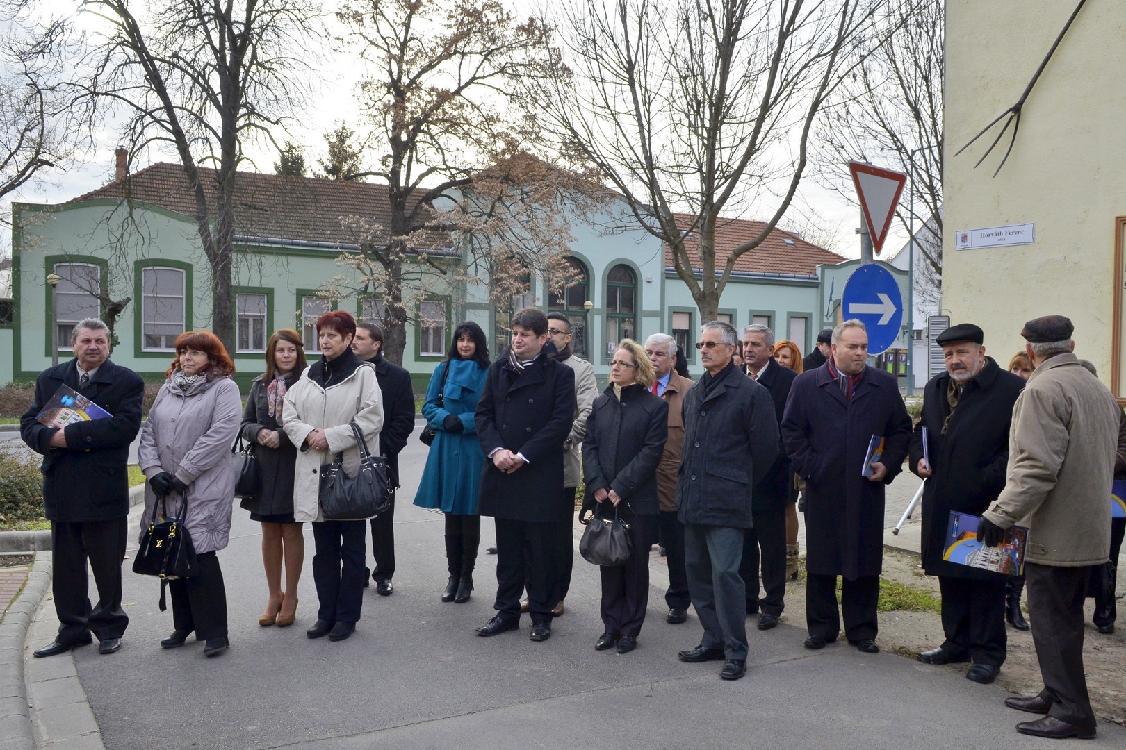 A vendégek a Gyulai Várfürdő AquaPalotájának megtekintése előtt felavatták Salacz Gyula emléktábláját a Horváth Ferenc utca sarkán.