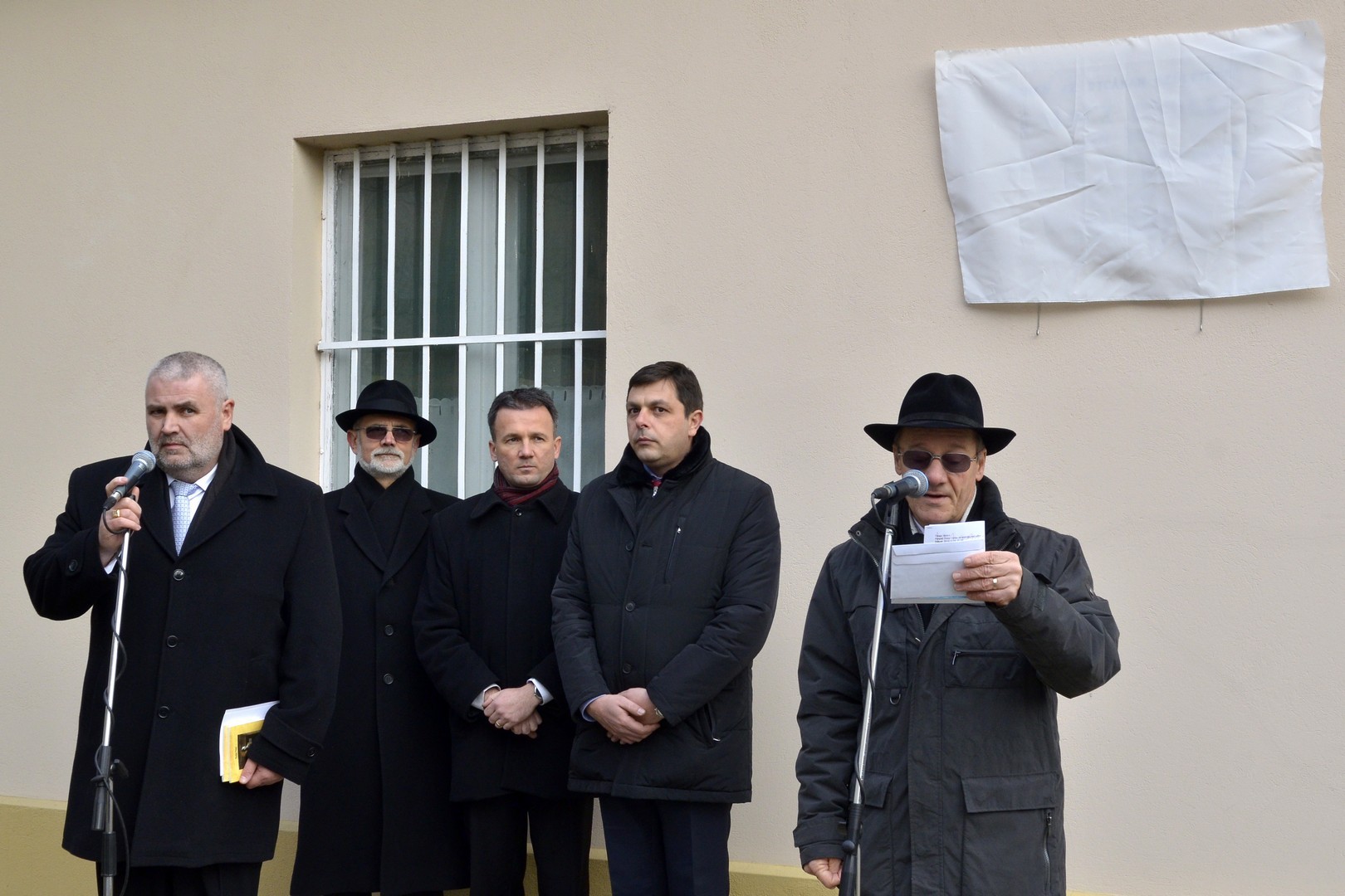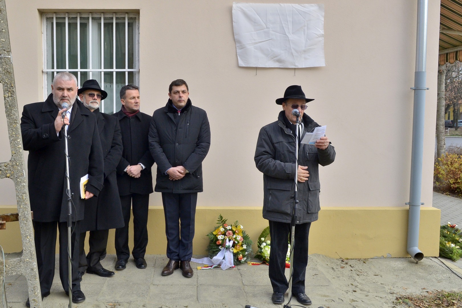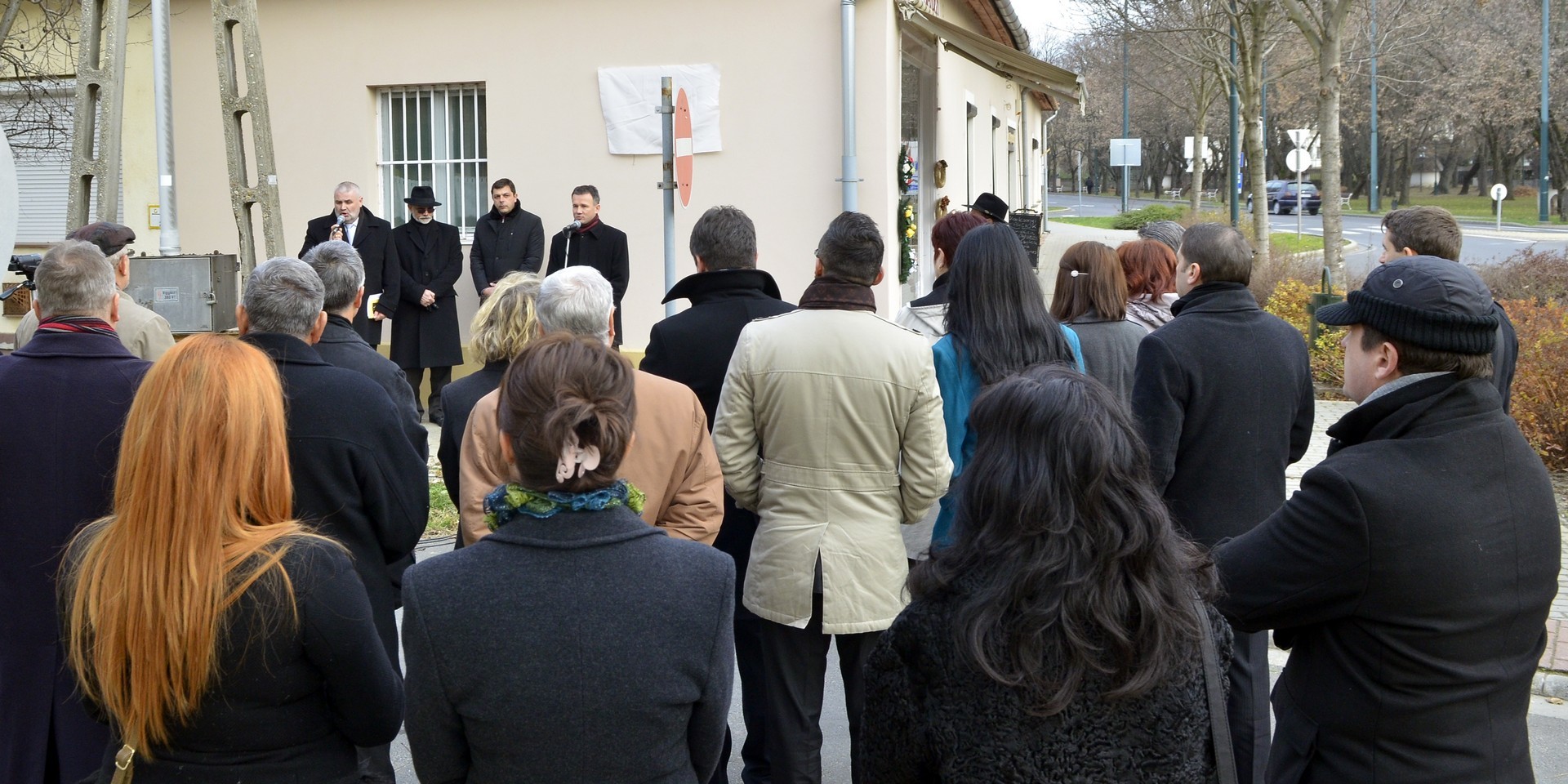 A vendégek a Gyulai Várfürdő AquaPalotájának megtekintése előtt felavatták Salacz Gyula emléktábláját a Horváth Ferenc utca sarkán.